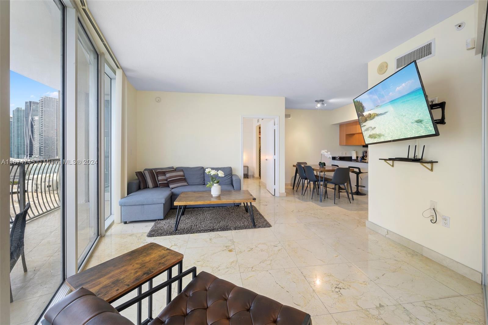 Experience luxury living with breathtaking direct bay views from this 2-bedroom, 2-bathroom condo on the coveted 02 line at Opera Tower in Miami. This fully furnished unit is perfect for investors, offering the flexibility to rent up to 12 times per year with a minimum of 30 days per lease. The spacious open layout features floor-to-ceiling windows, a modern kitchen with stainless steel appliances, and a private balcony overlooking the water. Both bedrooms have en-suite bathrooms and ample closet space. The building offers top-notch amenities including a pool, fitness center, and 24-hour concierge. Located in the heart of Edgewater, you're just minutes away from Wynwood, the Design District, and Miami Beach. The unit is vacant and easy to show.