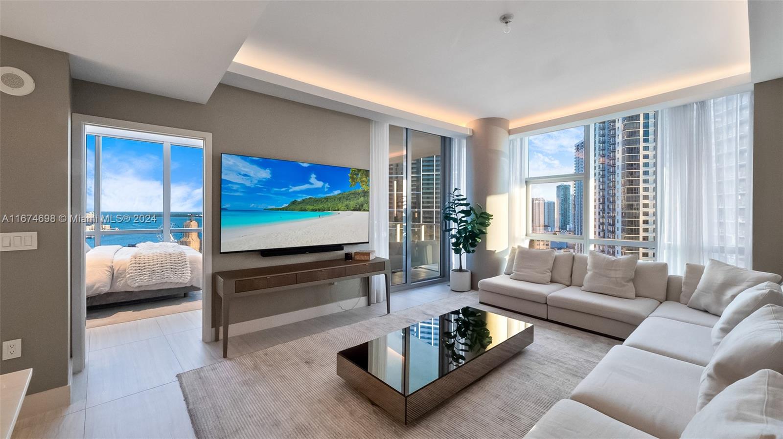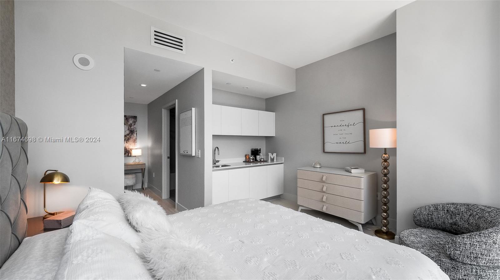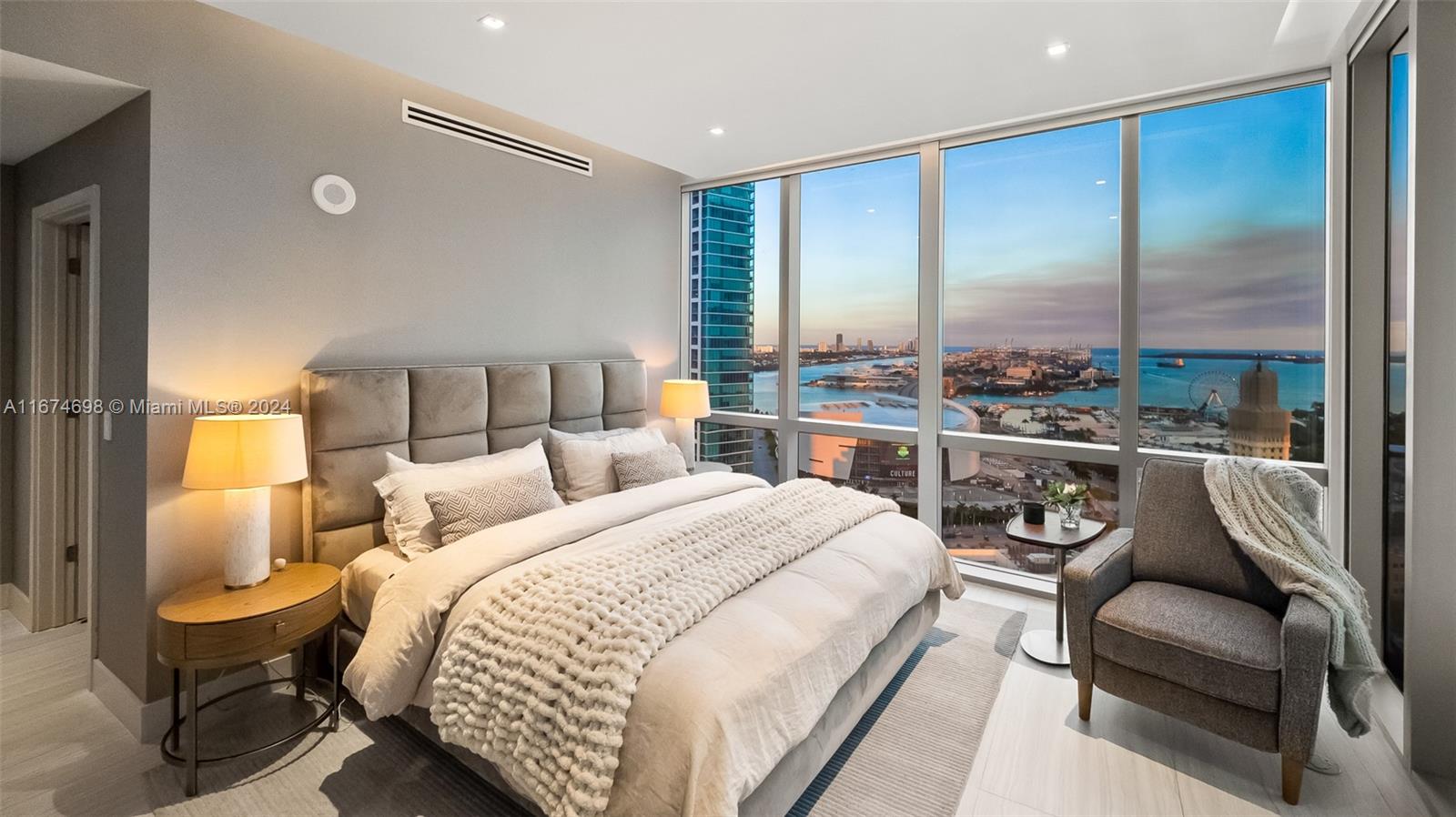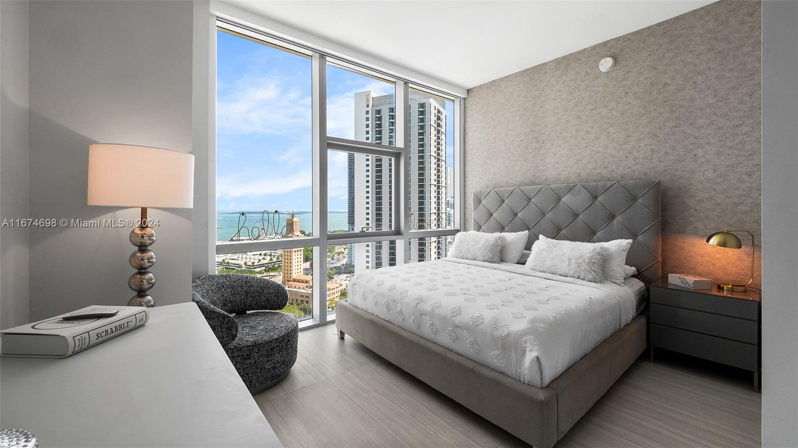 Paramount Miami Worldcenter • MUST SEE TURN- KEY exclusive unit with amazing views of the bay, ocean and skyline. Come visit this fully renovated unit, including custom wallpaper, upgraded porcelain flooring, studio lighting and much more! The building you never have to leave includes every amenity including access to all different amenities such as 5 pools, private jacuzzi’s, a full spa including massage chairs, outdoor lounge and bbq areas, game rooms, state of the art fitness center, boxing studio, basketball court, racquetball, yoga, observatory, jam room and recording studio, and much more. Just steps from Kaseya Center, Port of MIA, AA Arena and minutes to MIA Airport, Wynwood, and Miami Beach.