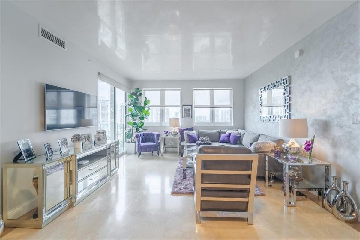 Luxury furnished two bedroom two bath condo located in the highly desired community of Turnberry Village. Gorgeous views of the Intracoastal, Ocean and Golf Course. Granite countertops, high impact windows, built-in walk-in closets. Resort style community offers: 24 hour valet parking, infinity pool with towel service, fitness center, sauna, lobby attendant, concierge, BBQ area, playground, entertaining room, management office on site, guard at the gate and water, internet and basic cable included in HOA. Located in the heart of sought-after Aventura; within minutes to Aventura Mall, walk to Aventura Circle for a stroll, cycle or jog, and many shops and restaurants close by. Call for a private showing.