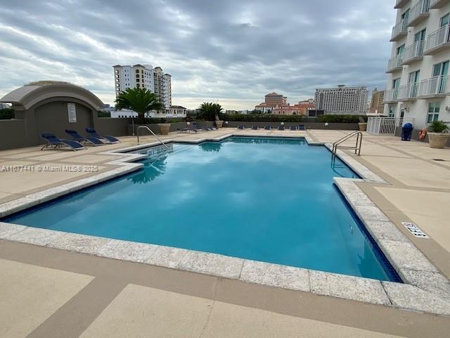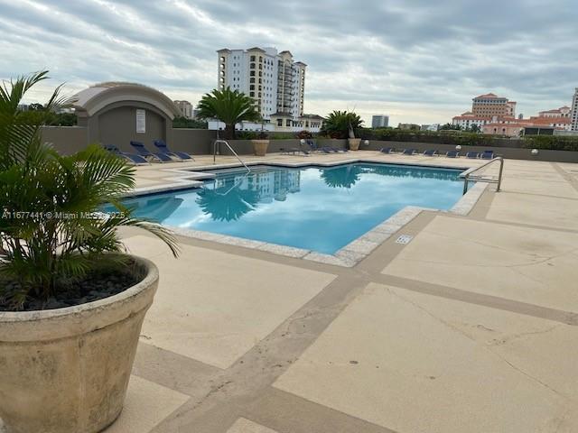 1 bedroom, 1 bath condo in the Douglas Grand now available. Best location on the top floor with view of the fabulous Coral Gables skyline as well as the pool. Kitchen with pass thru to spacious dining/living area. Cozy balcony for your morning coffee or evening happy hour. Bedroom has large walk in closet. Washer/dryer included. Laminate flooring throughout internet and basic cable included in the condo fee. Sparkling swimming pool for your enjoyment and also an exercise room. Condo can be rented first year of ownership. Secure entrance and concierge in lobby. Unit needs some TLC, but well worth a look. AC compressor new 2023, inside unit also recent. Pets ok up to 50 lbs. Great location. New roof, owner paid assessment in full.