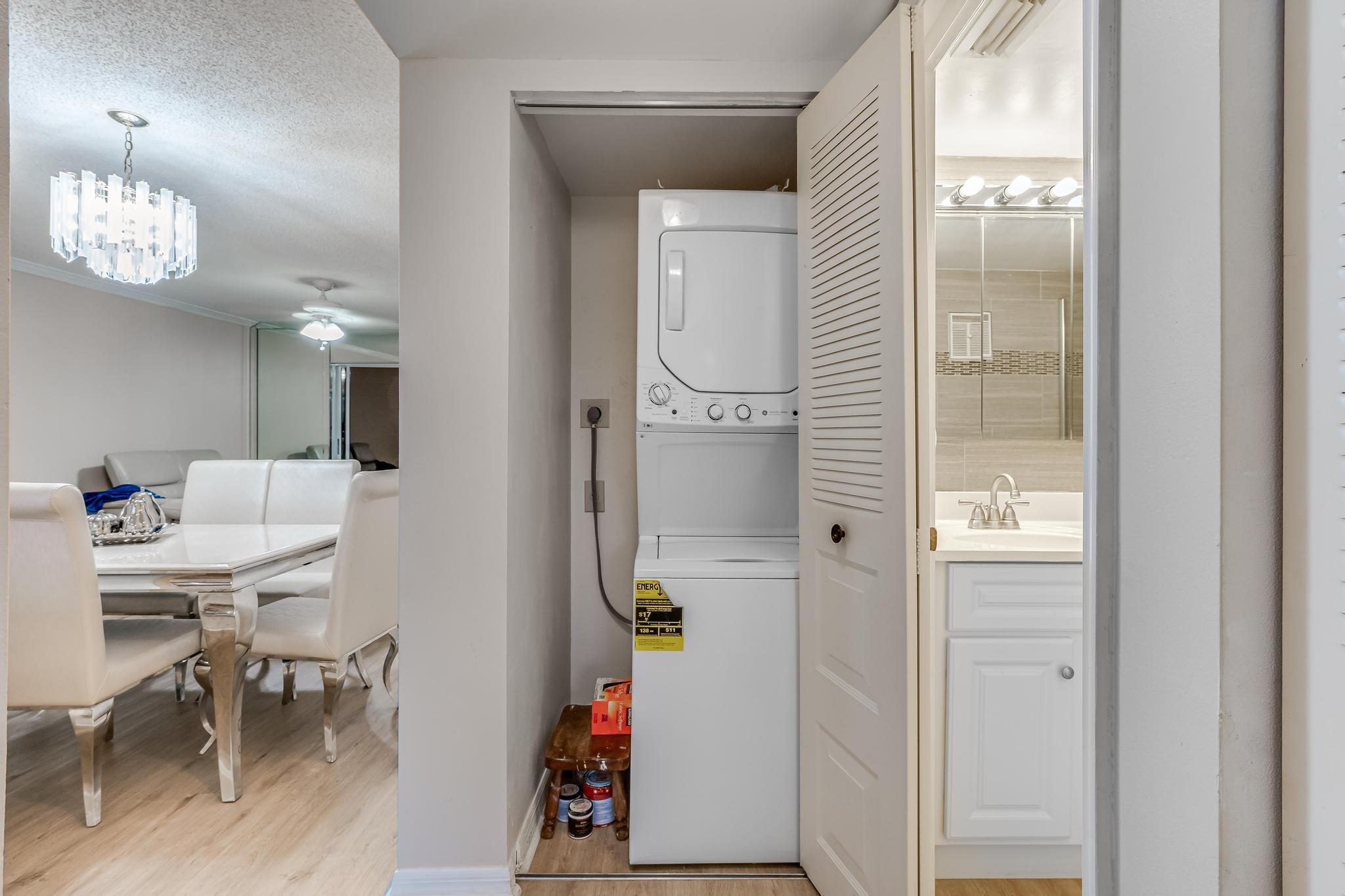 55+ Community, Bldg 186 unit 307, 3rd floor with golf Views from your private enclosed balcony! Beautifully remodeled 2 bedroom, 2 bath, Lido Model (French doors) Kitchen features granite counter tops w/wood cabinets, white appliances and wood laminate flooring (water proof). Washer and Dryer in unit. Primary Bedroom with walk in shower and closet. This community has World Class amenities which include Golf, Swimming pool, tennis, whirlpool, tennis, racquetball, and movie theater. Great shows, concerts and dancing! Fort Lauderdale airport and cruise lines close by, and of course Florida's beautiful beaches. Bring your fussiest buyers. CONDO ASSOCIATION HAS INCOME AND CREDIT REQUIREMENTS.