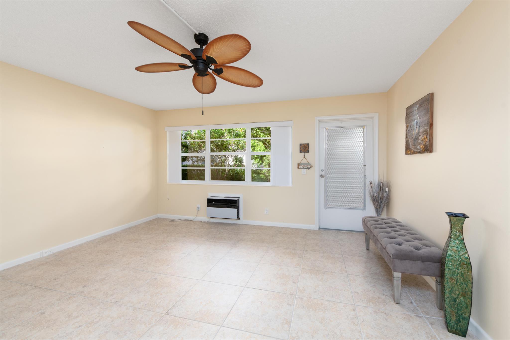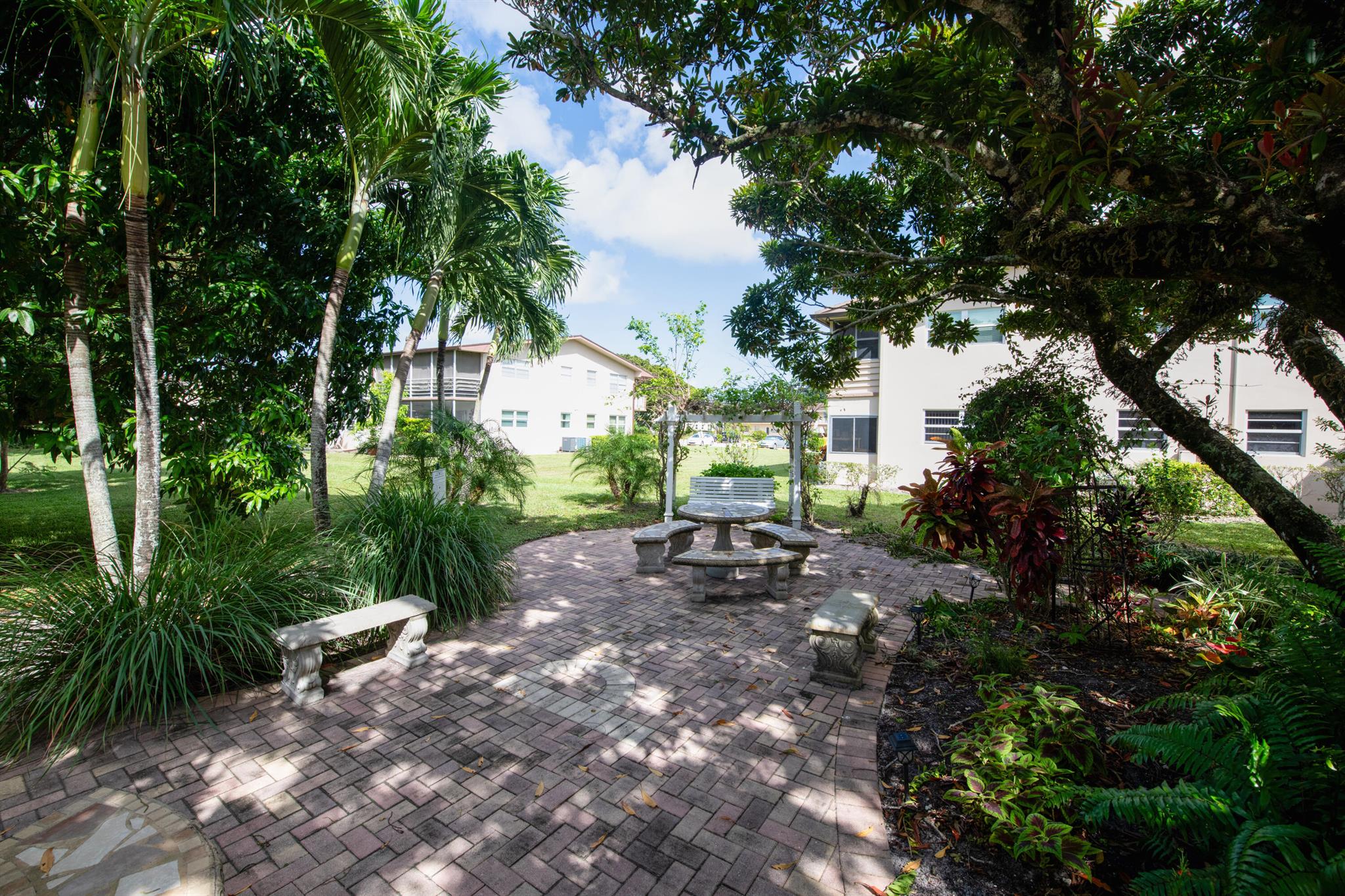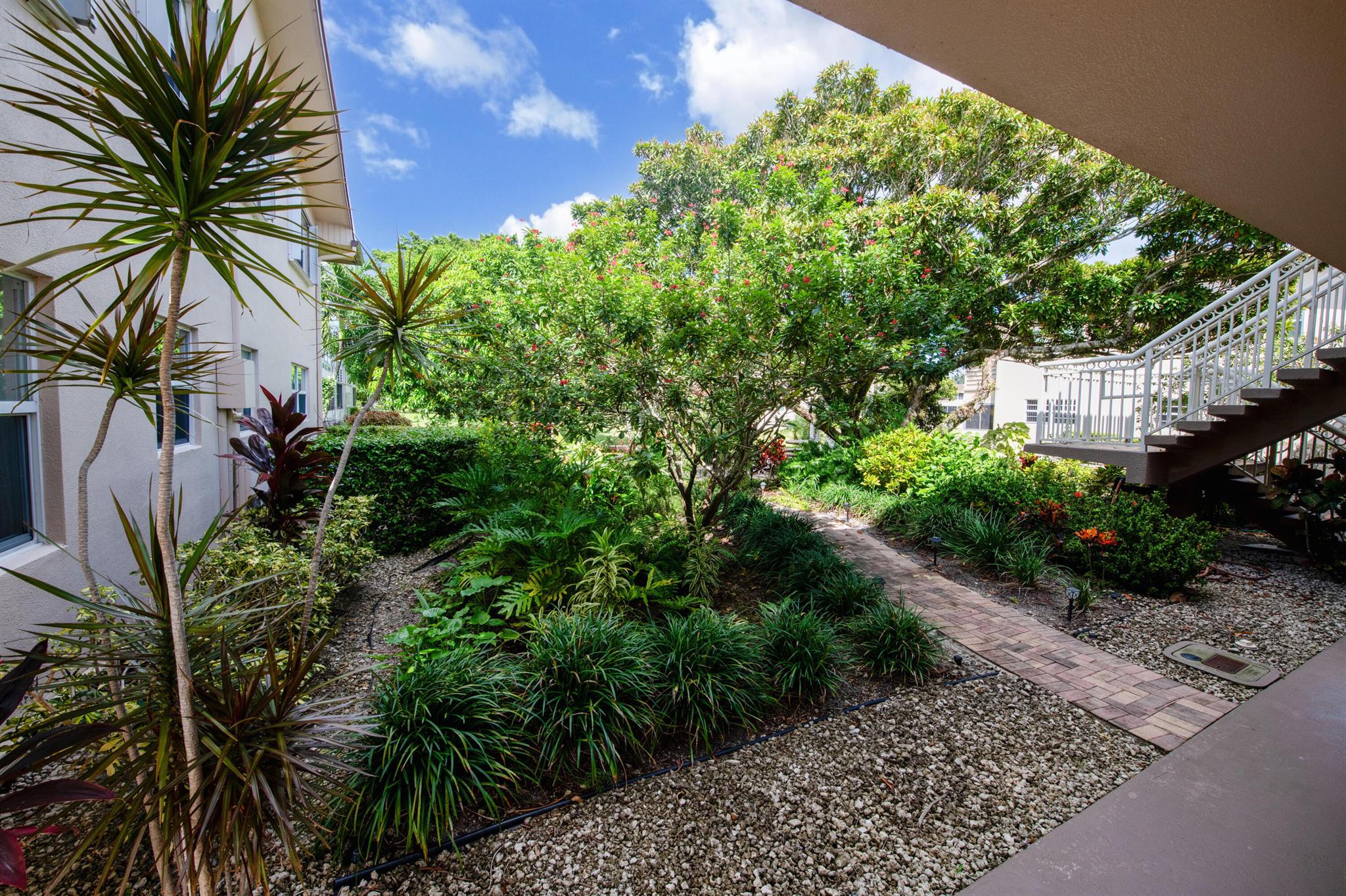 ACTIVE 55+ COMMUNITY - Find peace and tranquility right outside your door! This condo community maintains a beautiful, tropical garden which is right outside of this updated condo; tile floors throughout, an enclosed lanai and hurricane shutters on the front and back windows. The common laundry is right next door. This is a nicely maintained building located in Century Village WPB where you will enjoy many amenities of resort style living, like a 1000- seat theatre to watch shows and movies, indoor and outdoor pools, free bus service, medical facilities, drug store, beauty shop, tennis, boating, woodworking and more. Century Village is close to PBI airport, to downtown restaurants, beaches and shopping.