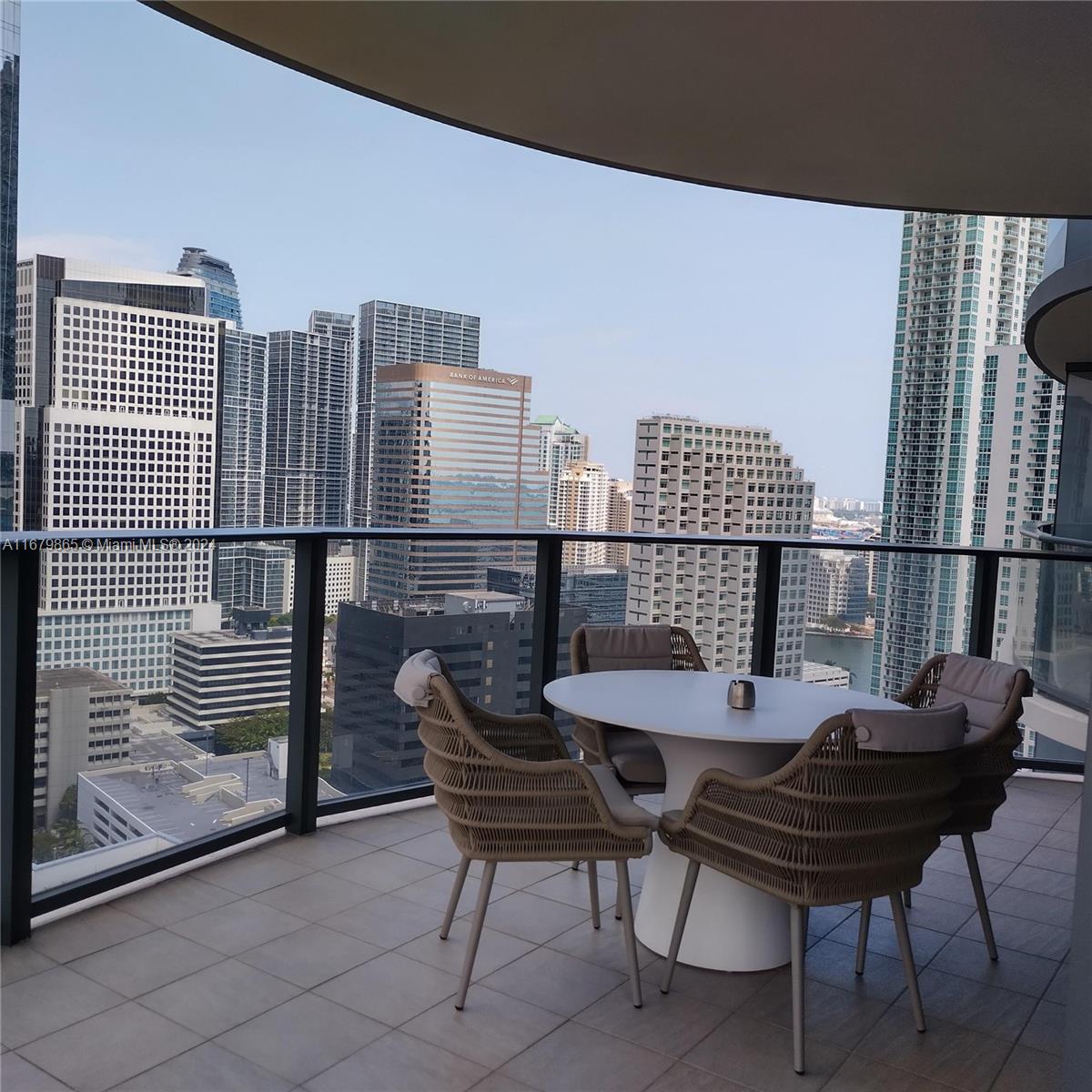 AMAZING Fully Furnished Corner 2/2 1/2 plus DEN, luxury finishing, wraparound balconies with access from both bedrooms and living areas. Top of the line Miele appliances, Italian cabinetry and doors. 9 feet ceiling height,porcelanato floor with incredible views. High-end amenities with lounge room movie theater, kids game room, 1 parking assigned + 1 right to valet, Sky club Rooftop on 64th floor with fitness center and Spa, concierge 24/7 and more!!