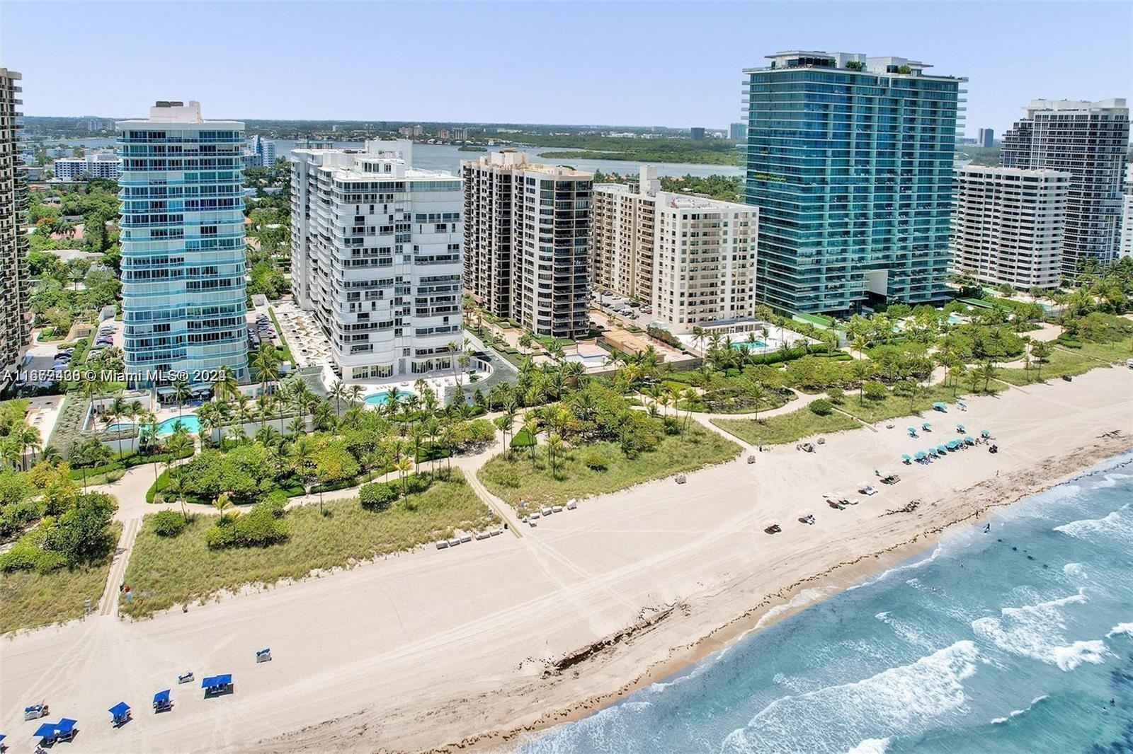Welcome to luxury living at its finest! This expansive 2-bedroom, 2.5-bathroom condo boasts 2,018 sq ft of beautifully renovated space, perfectly positioned on the 9th floor with stunning water and ocean views. With two private balconies, you'll have the perfect spots to relax and soak in the coastal ambiance. Enjoy the convenience of two dedicated parking spaces and extra storage. The high-end building offers exceptional amenities, including a theater room, party room, 24-hour security, valet service, and a front desk with an on-site property manager for your peace of mind Stay active with access to an oceanfront pool and a fully-equipped gym. This condo is currently under renovation allowing you to customize your dream space while enjoying the luxurious lifestyle Bal Harbour has to offer