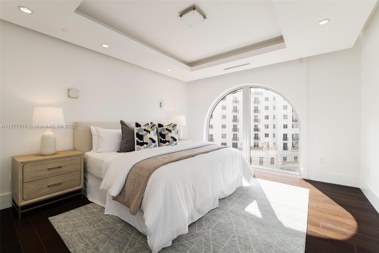 Introducing a newly price-improved 2-story penthouse nestled in the heart of Downtown Coral Gables. This one-of-a-kind residence has been thoughtfully updated to blend luxurious living with modern elegance. Sleek porcelain Beraice 48x48 tiles grace the main living areas, which flow seamlessly onto a massive private terrace. Enjoy the rare convenience of 6 included parking spaces and full concierge services. The open and spacious floor plan is enhanced by soaring 22-foot ceilings in the living and family room areas, creating an airy and inviting atmosphere. The kitchen is equipped with top-of-the-line Gaggenau appliances, perfect for culinary explorations.