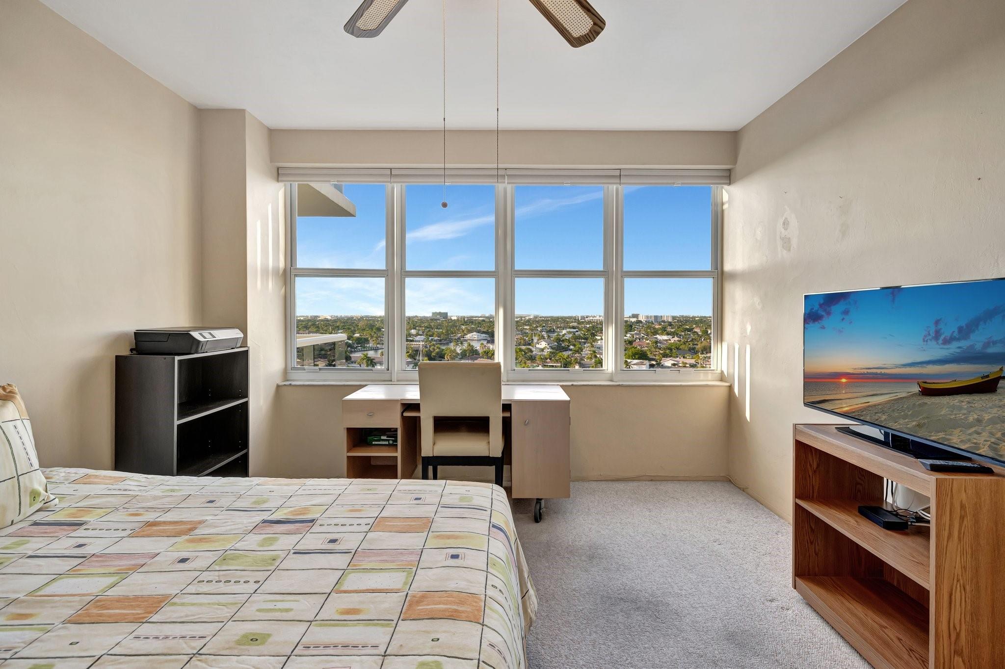 Discover this 12th-floor, 2-bedroom residence boasting stunning views of the Intracoastal with multi-million dollar homes and yachts below. Envision the potential as you reimagine the space to suit your style with an abundance of natural light and a picturesque backdrop for your future oasis. All condo requirements have been completed with A+ insurance rating. Resort style setting on 5+ acres of beautifully landscaped grounds including a heated pool, bocce ball court, fitness center, new roof, hurricane windows throughout, updated glass balconies and 24/7 security. Clubhouse directly on the intracoastal is perfect for your sunset bbq's or watching the boat parades. Prime location near local attractions, dining, and beaches. 55+ community, no renting.
