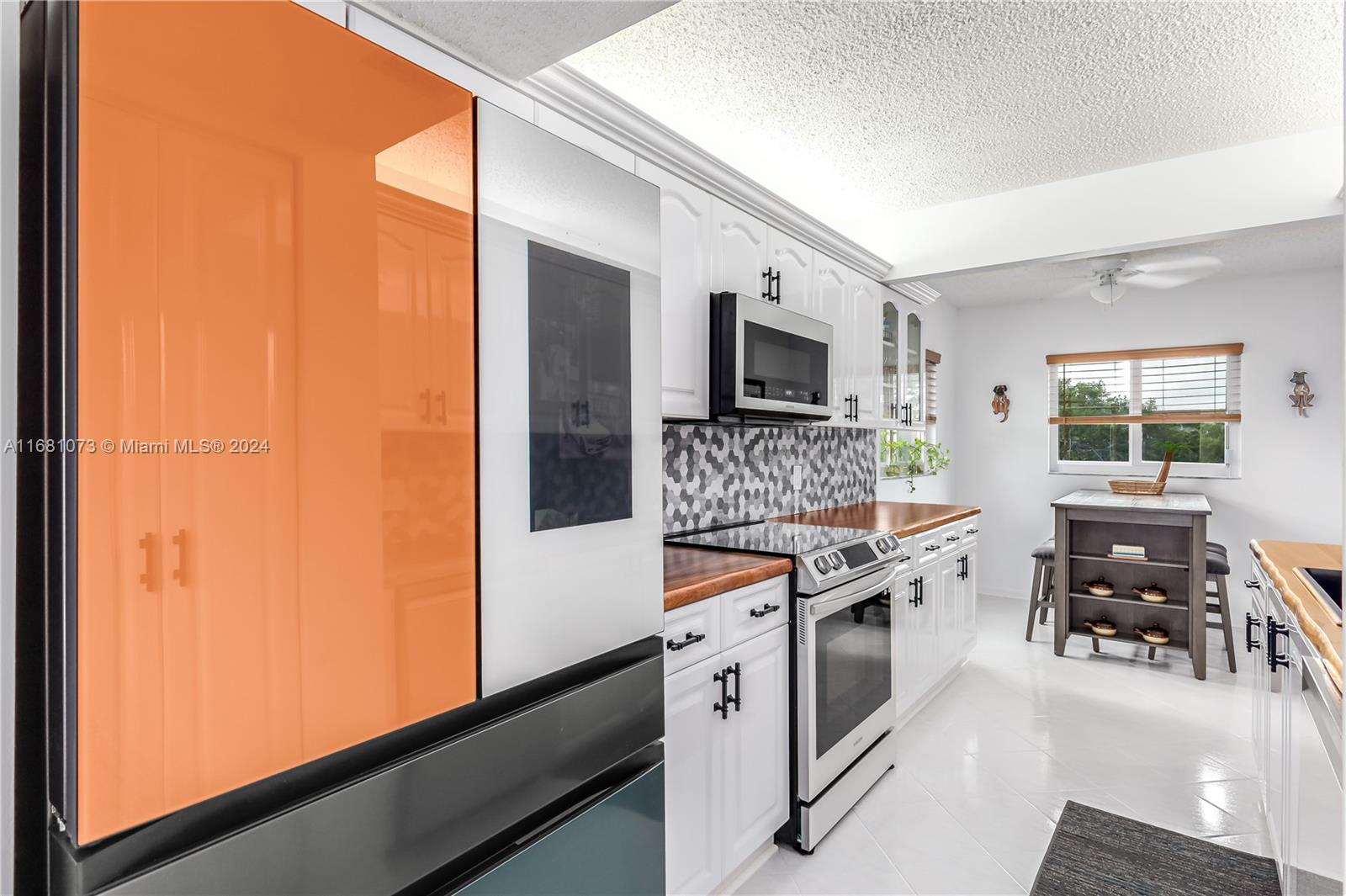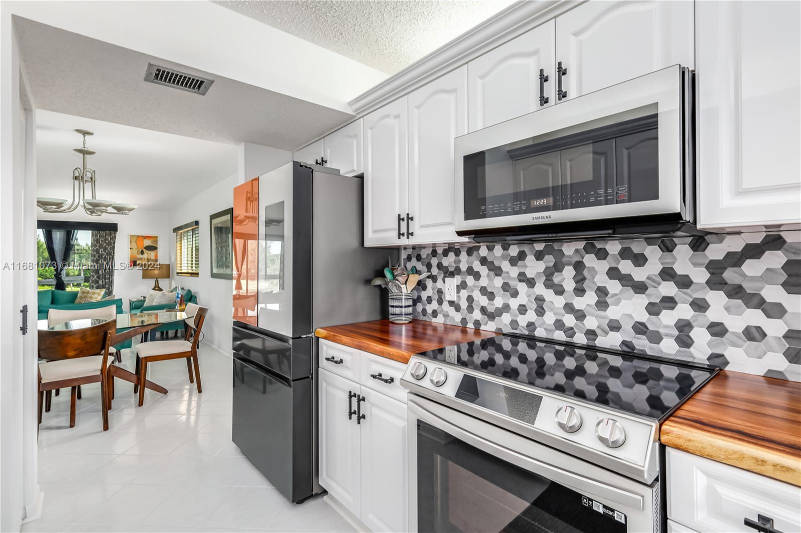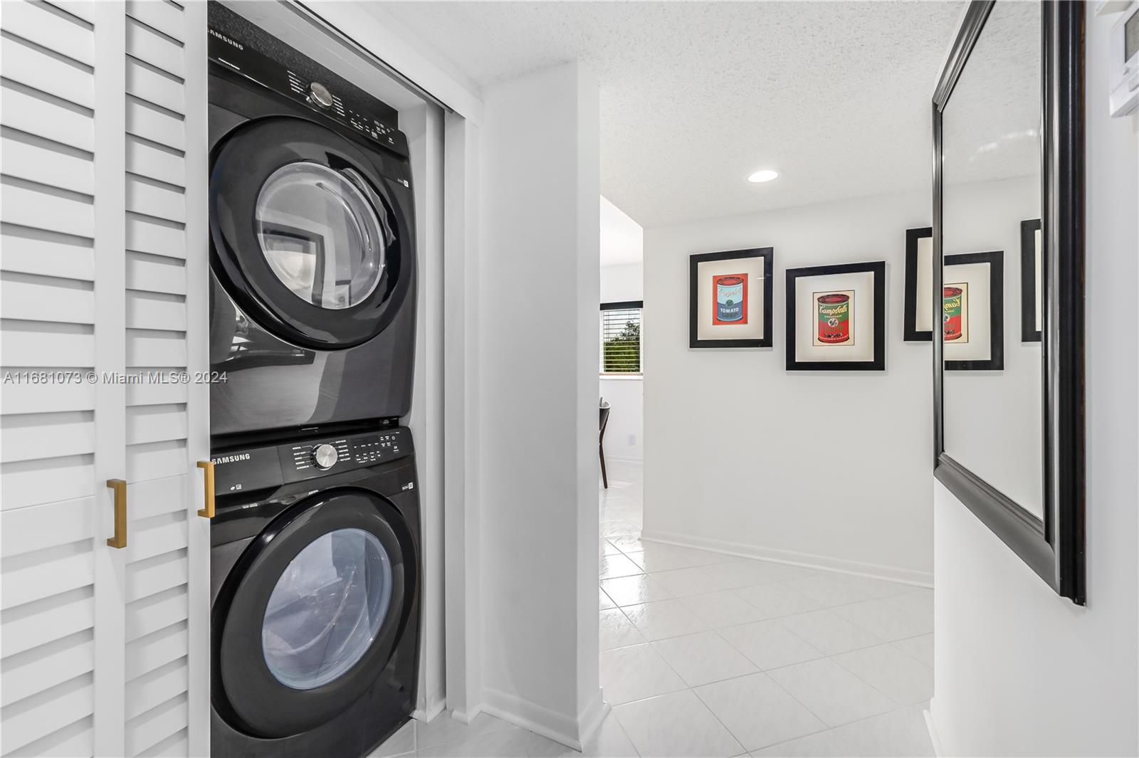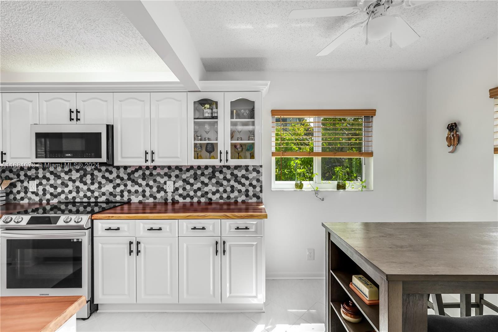 TOTAL RENOVATION! Leasing allowed immediately! Investors Welcome! "14"-line unit is the most desirable in Century Village due to it being a corner unit with 4-extra windows. 314 offers a new A/C (condenser and compressor) all new hurricane impact windows and door (enclosed balcony which overlooks the green golf course and lagoon/lake). New Samsung-BESPOKE model appliances (dishwasher, range/oven, microwave, dishwasher). Full-size washer/dryer. Butcher Block countertops and hexagon pattern backsplash. Large walk-in closets and lovely natural light throughout. 40-year recertification complete. No assessments per sellers. 55+ community offering every amenity you can think about including 71-course golf club, 1,042-seat theatre, world class clubhouse and transportation, multiple tennis courts.