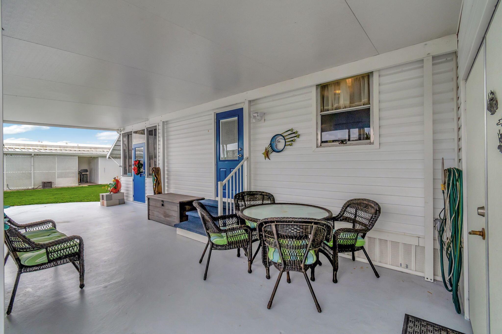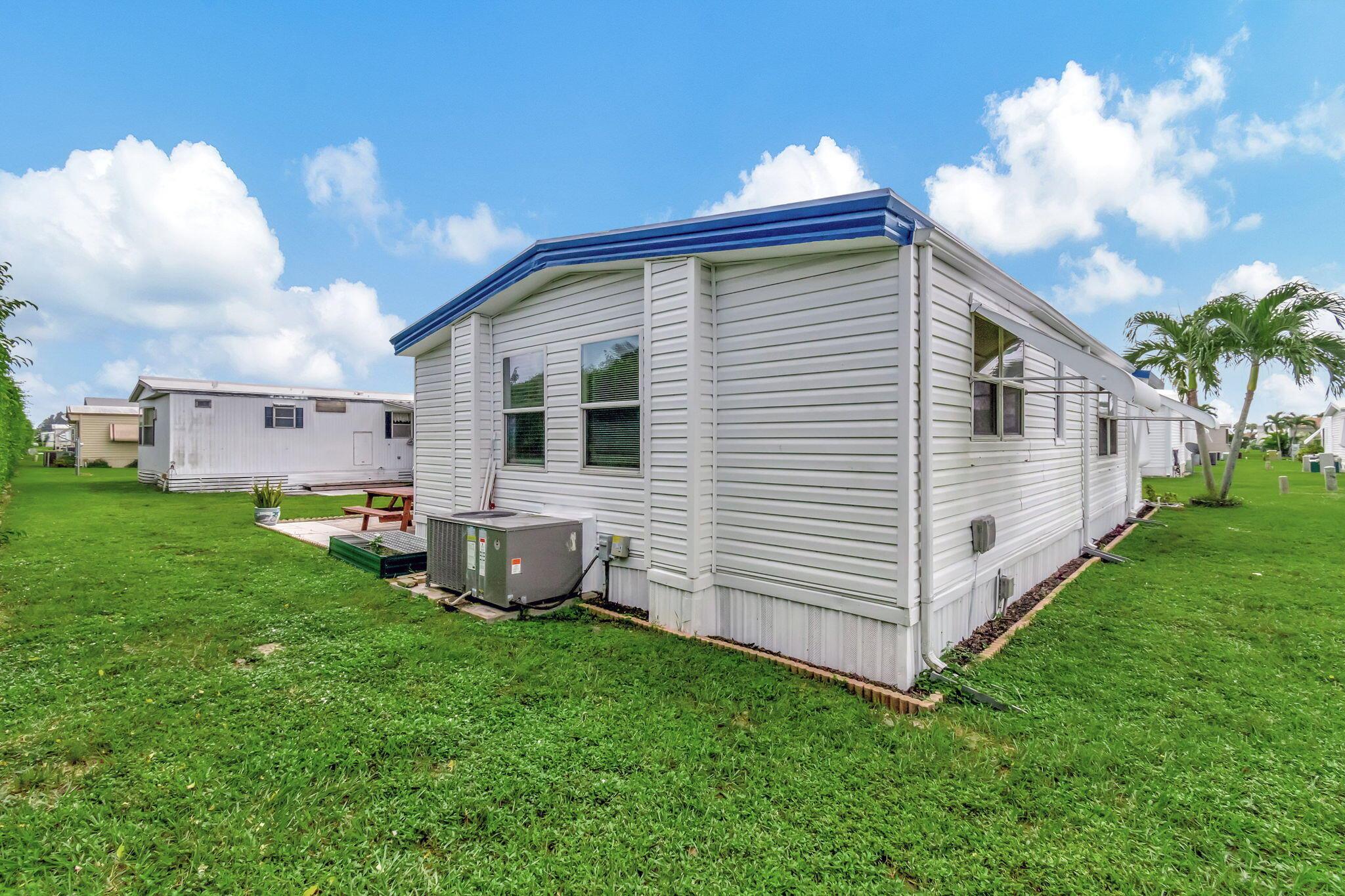 Welcome to Jamaica Bay, a highly desirable 55+ gated mobile home community, offering this well-maintained 2-bedroom, 2-bath residence. NEW AC 8/2025! Featuring an open-concept kitchen, living, and dining area with beautiful laminate flooring throughout, this home is move-in ready. Recent upgrades include a roof sealed in 2024, a new primary bath vanity, updated baseboards, and new kitchen hardware. A new skirt was installed in 2023. Enjoy outdoor living with a separate patio, perfect for grilling and relaxing. The home can be furnished or furniture negotiable. Community amenities include a clubhouse, library, billiards, Bocce ball, dog park, and plenty of social activities. With no rentals allowed, this is your chance to embrace the South Florida lifestyl