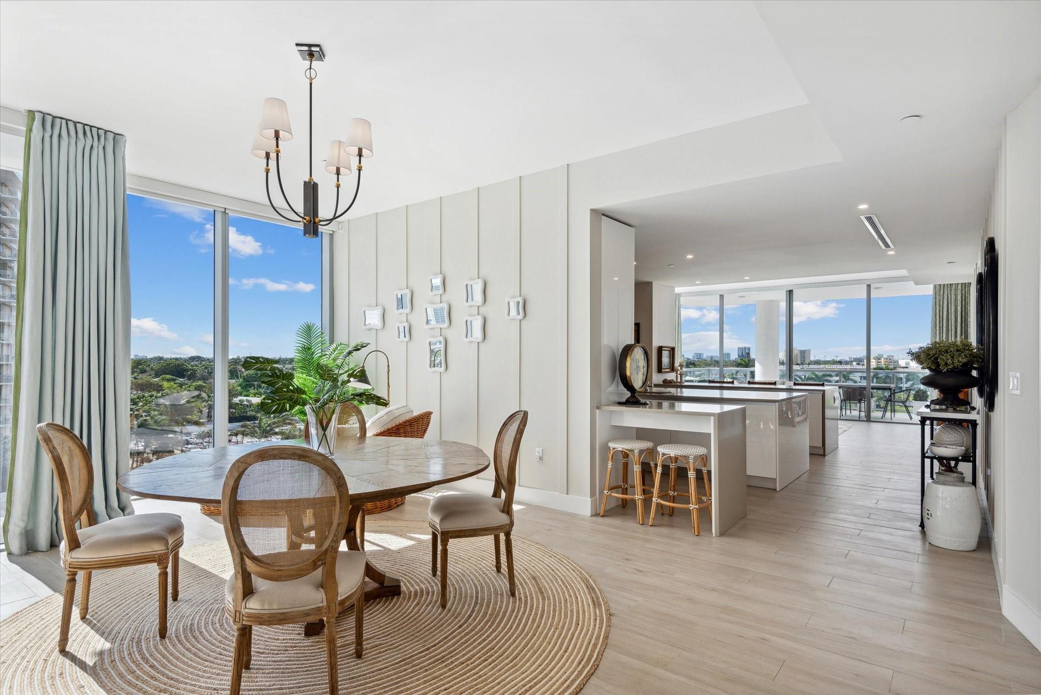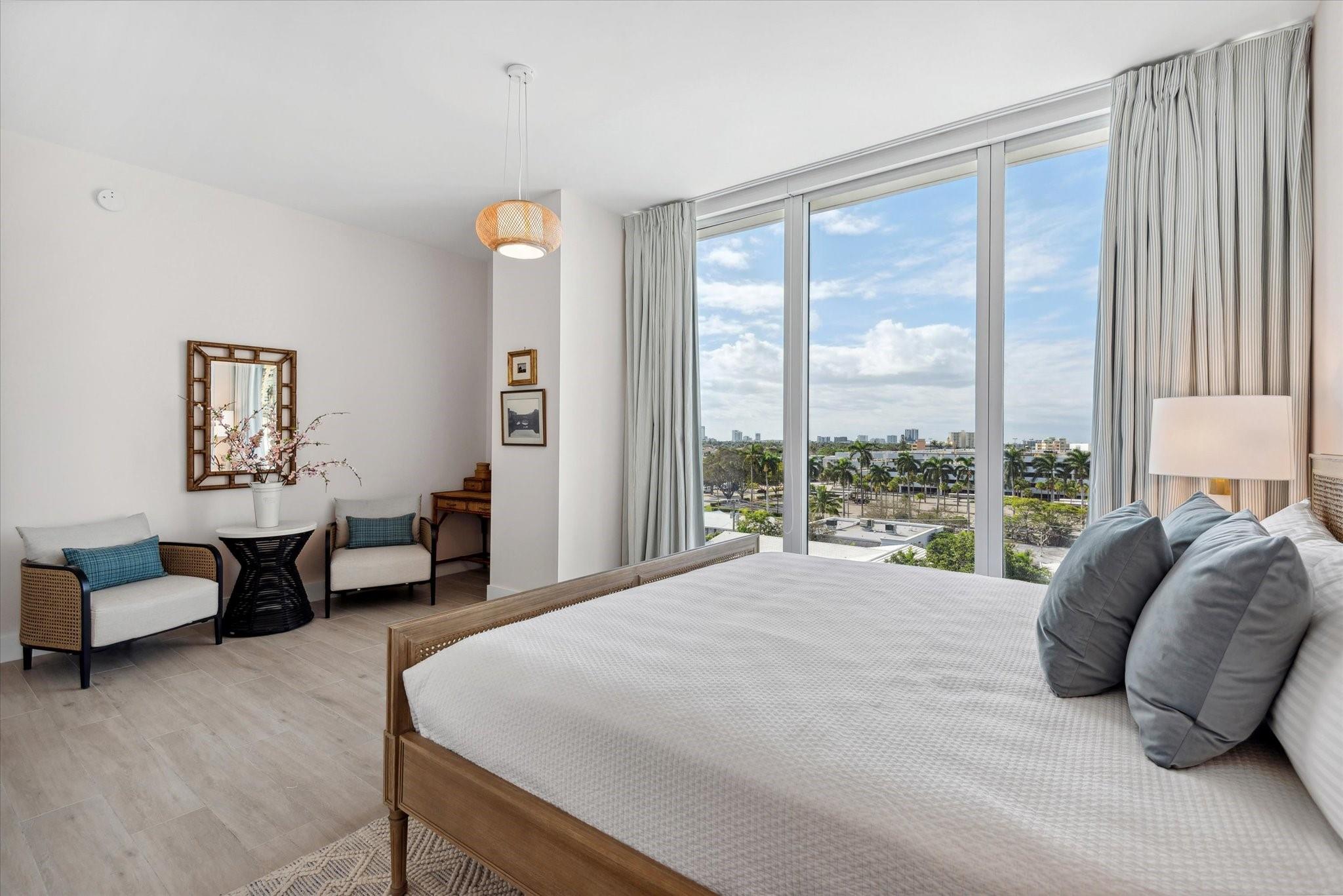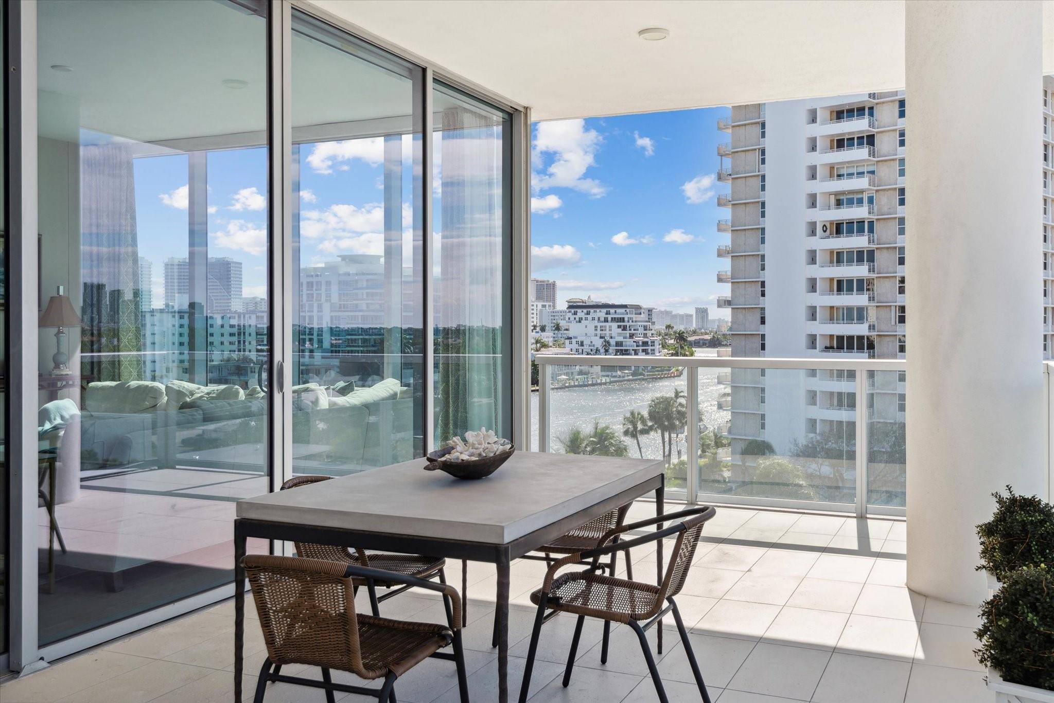 Located directly on the Intracoastal Waterway, Aquablu consists of 35 luxury residences. This flow-through SE corner unit offers sweeping views of the water/historic Bonnet House/City skyline from the impressive balconies. Private double door foyer entry opens to a great room with 10' ceilings & glass walls, highlighting the views & bathing the space in natural light. Professionally designed touches abound in the open-concept living/ dining spaces. The chef's kitchen boasts high-end appliances with a massive island, walk-in pantry, & immense counter space. Wake up to amazing sunrises from the Primary suite, which overlooks the water with a spa bath & 2 large walk-in closets. 2 additional en-suite bedrooms & two assigned covered parking spaces are located near beaches, shopping, & dining.
