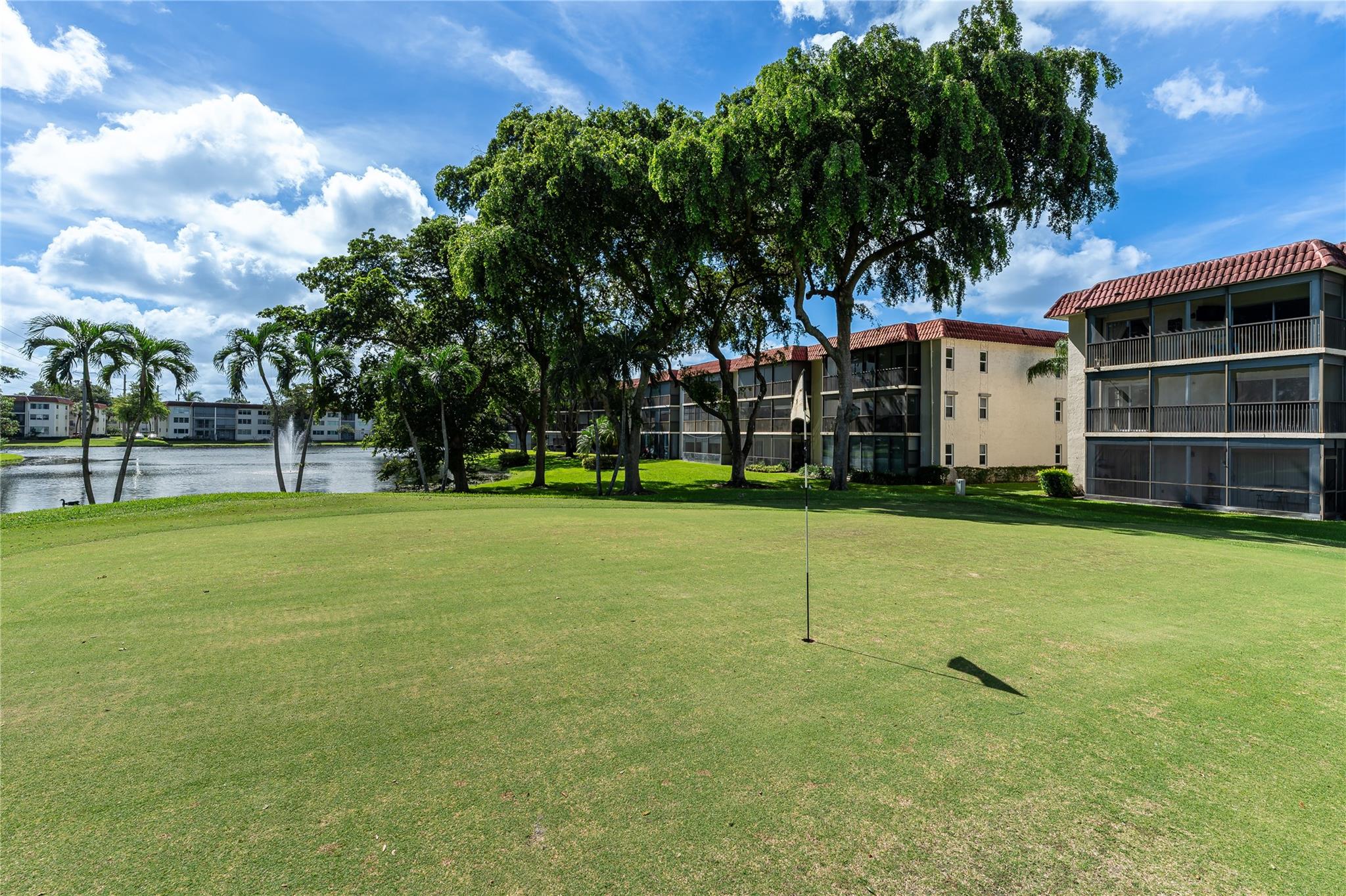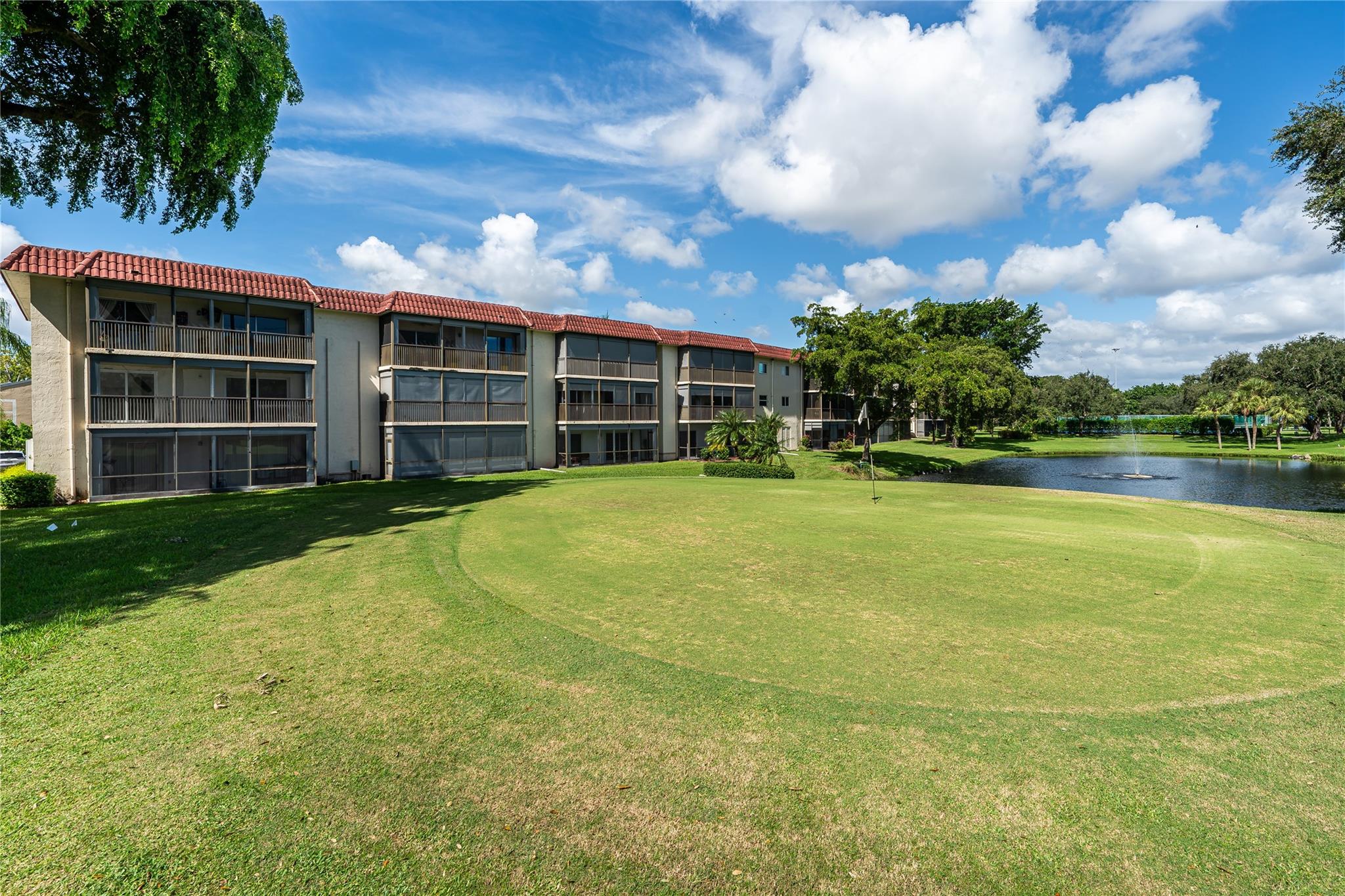 SPACIOUS FIRST FLOOR, 1,550 SF 2BR/2BA CORNER with Par 3 golf, 15th Green & Lake views. Wide Open eat-in- kitchen featuring Stainless Steel appliances; large SS Washer/Dryer. Double vanity in Master Bath. Master Bedroom currently used as grand family room w/ built-ins. Expansive walk-through bedroom to bedroom closet. Large wrap-around, screened patio off living room & master bedroom. FREE golf (except cart fees) on two 18 hole courses (PGA & Par3); Amenities include Restaurant, Billiard Room, Bbq/Picnic Area, Clubhouse, Courtesy Bus, Exercise Room, Heated Pool, Library, Putting Green, Sauna, Shuffleboard, Tennis, Pickle Ball, Vehicle Wash Area, Electric Car Charging Station. Close to shopping, dining & highways. 15 min. to the beach. Active 55+ age required community. GREAT OPPORTUNITY!