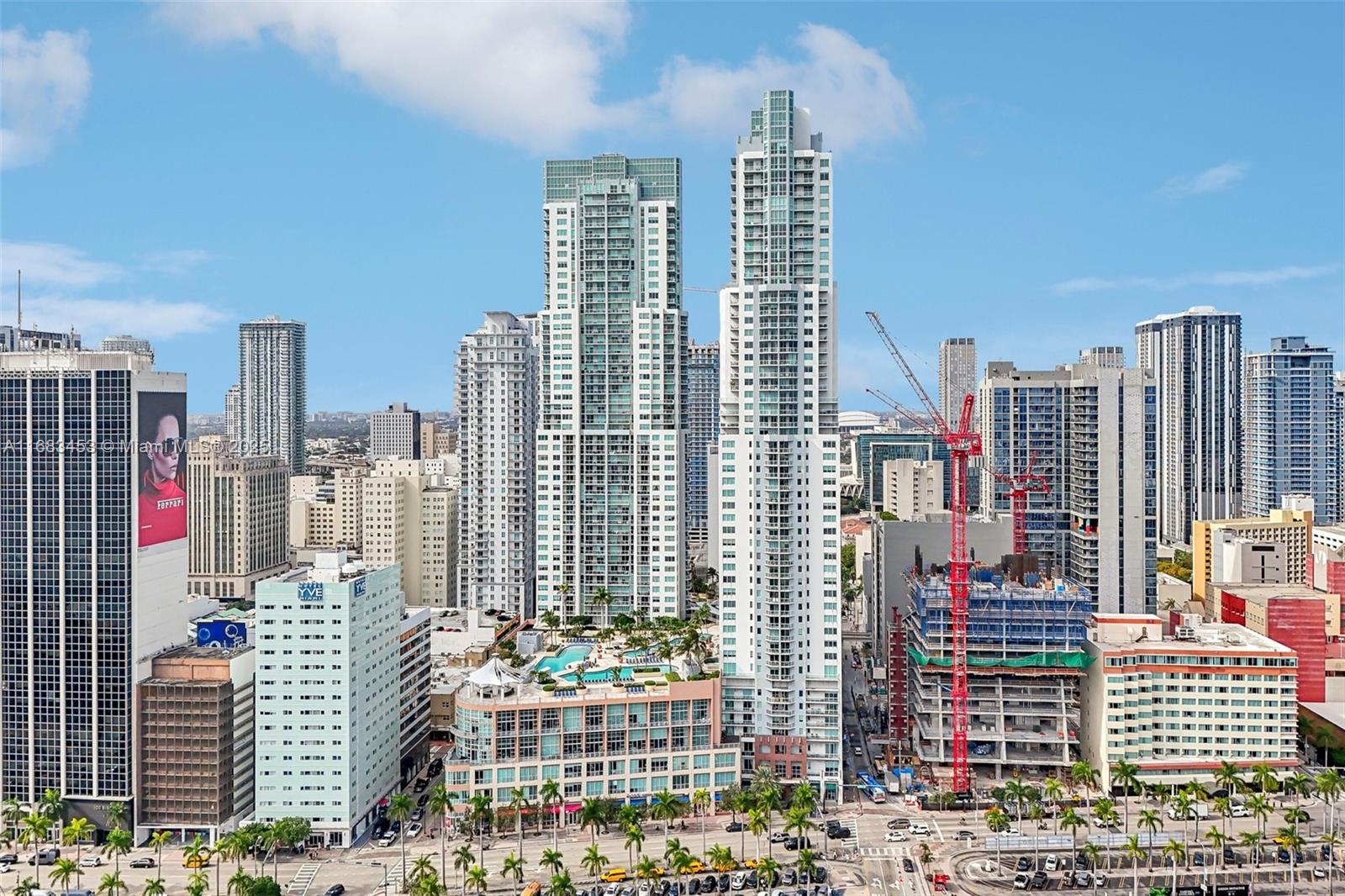 UNIQUE OPPORTUNITY – NOW $850,000! This spacious 2BD/2BA + DEN corner residence offers breathtaking views of Biscayne Bay and the Port of Miami. Recently upgraded with brand-new wood floors, the open layout features a modern kitchen with stainless steel appliances, Italian cabinets, and granite countertops. The bright living spaces include window shades throughout, while the primary suite boasts a large walk-in closet and a spa-style bath with dual sinks, soaking tub, and separate shower. Enjoy resort-style living with 4 pools, jacuzzi, spa, bar & lounge, movie theatre, game room, business center, fitness center, and 24-hour attended lobby. Located steps from shops, dining, and the Metro Mover for seamless city access. Easy to show.