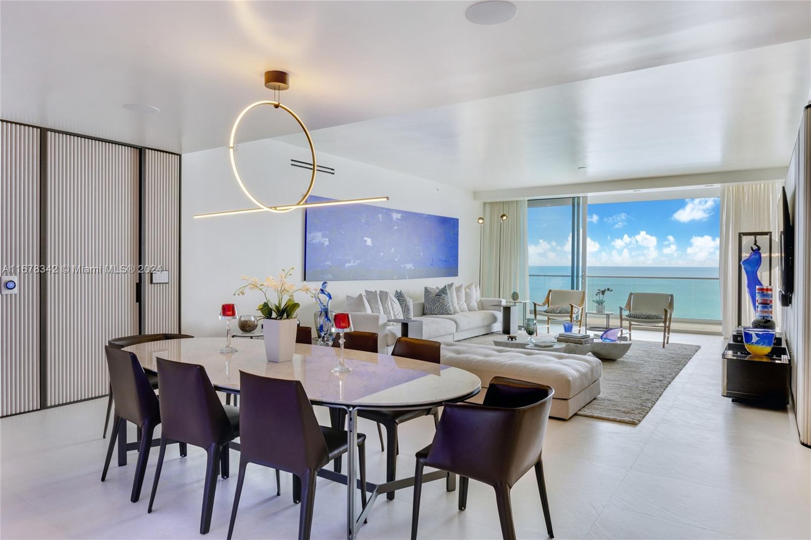 This stunning oceanfront residence, fully customized by renowned architect Carlo Colombo, offers a blend of sophistication and elegance. A glass wine cellar artfully separates the kitchen from the dining living areas, while the den has been transformed into a refined office space. Each bedroom features custom-built walls & bespoke closets, adding to the home’s tailored design. The living room stands out with a wood-paneled wall covered in Alcantara, creating a warm and inviting ambiance. Floor-to-ceiling doors & high-end upgrades elevate this space, making it truly exceptional. Oceana Bal Harbour provides residents with an unparalleled lifestyle, featuring two pools, private beach service, tennis courts, a spa and fitness center, valet services, and a restaurant.