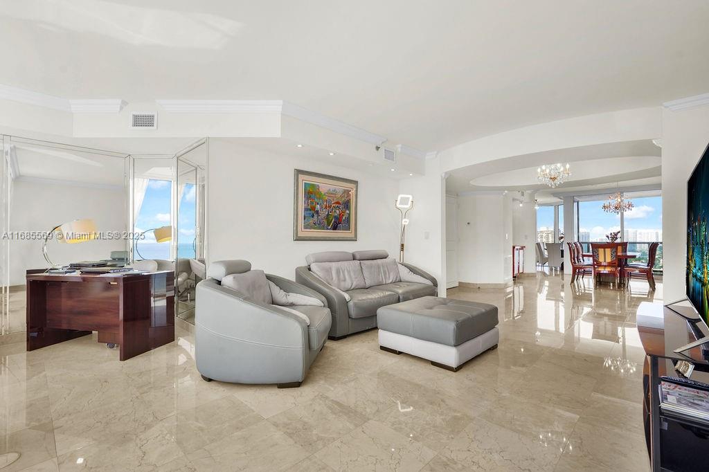 Welcome to oceanfront living at its finest! Opportunity to live in a condo that provides breathtaking panoramic views of the beach, city skyline, and intercoastal waterways. The unit features a DEN, private foyer & 2 en-suite bedrooms. Awaken each morning to the shimmering sunlight on the ocean and indulge in the finest sunrises and sunsets Florida has to offer right from the comfort of your own home. This is more than just a home; it is a true resort-style oasis, complete with a private restaurant, 24-hour doorman, beach service, tiki huts for entertaining guests, playground, dog park, 2 tennis courts, valet service, fitness center, spa including a sauna & steam room and more.