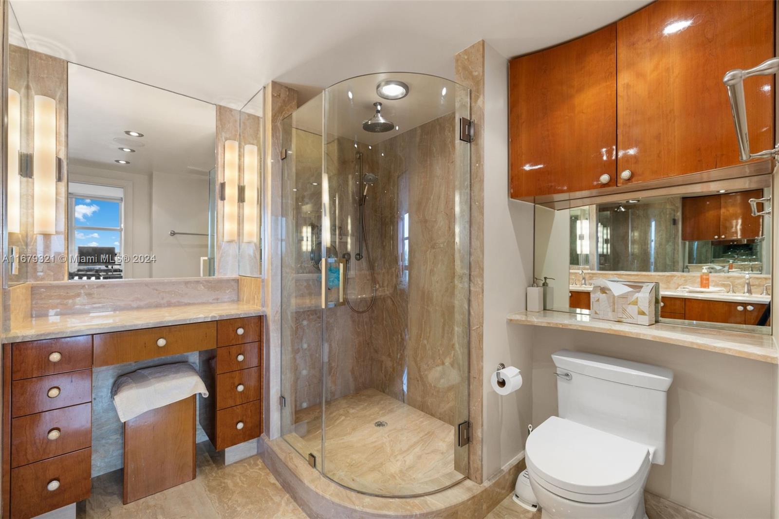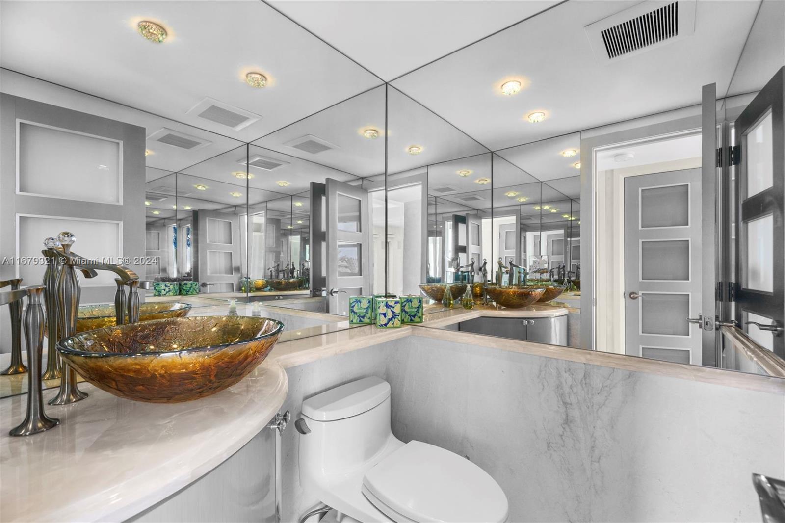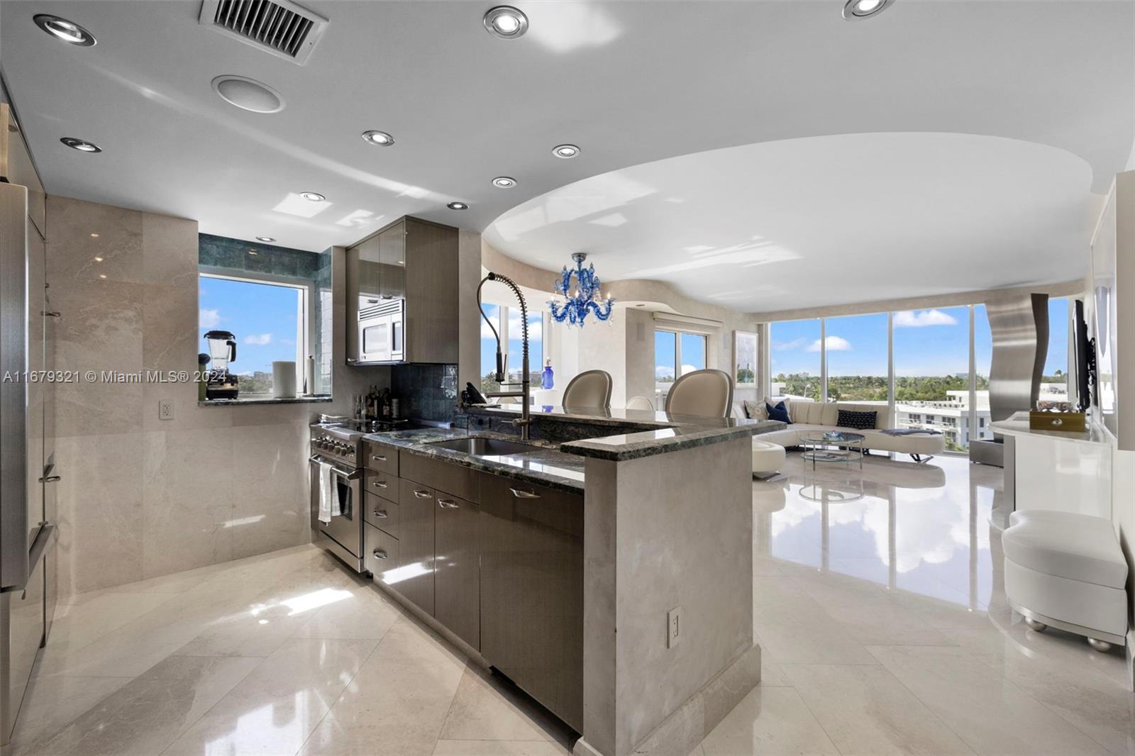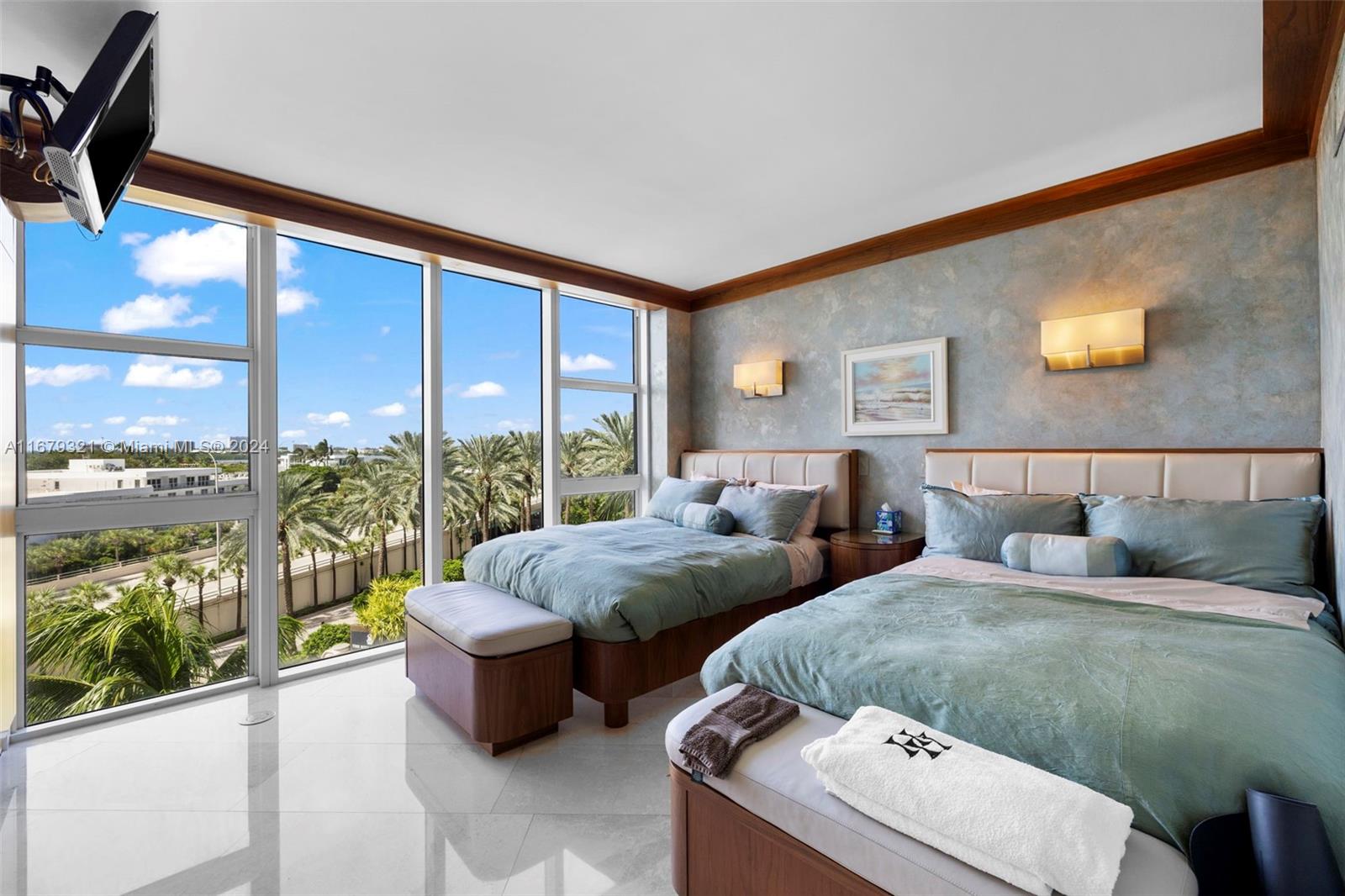 Unit 422+ CABANA 13 + 4 Parking Spots + 2 storages! This exclusive 4th-floor unit, #422 offering luxurious living space with 2 bedrooms and 2 bathrooms. $895,000 in custom upgrades completed in 2013, this residence exudes sophistication and elegance, designed for those seeking the ultimate Miami lifestyle. Step onto your private balcony, where tranquil city views provide a perfect backdrop for morning coffee or evening relaxation. Miele integrated espresso machine, Viking stove, and Sub-Zero mini bar for high-end living. Elegant wood flooring & marble flooring, adding warmth and elegance to every room. Rolls Royce finish leather sliding couch and a striking Blue Murano chandelier to create a luxurious living space. Close to the Bal Harbour Shops and Surfside restaurants.
