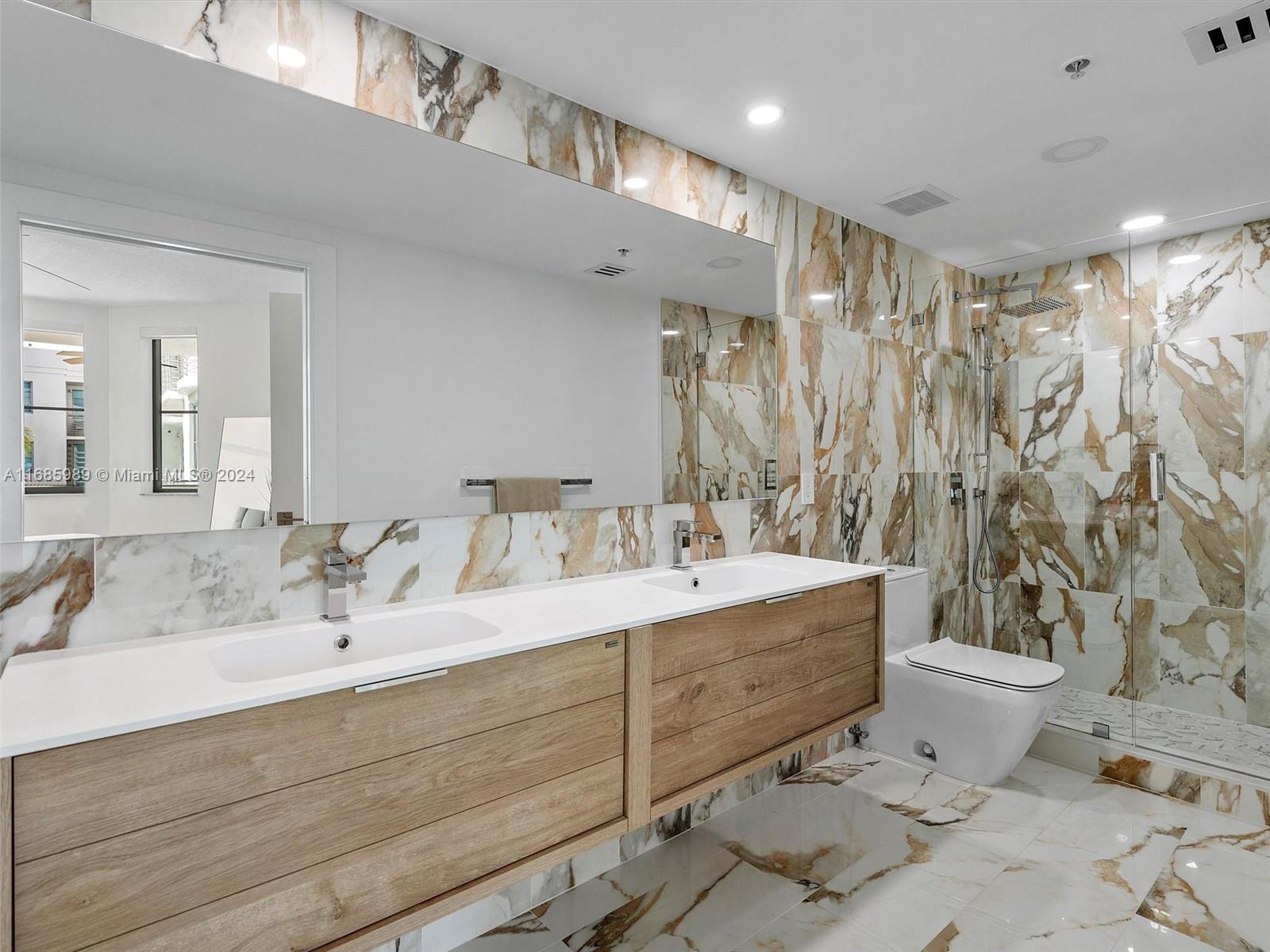 Elegantly remodeled and spacious 2bd/2.5bath corner residence at The Cosmopolitan in the prestigious South of Fifth neighborhood. Meticulously upgraded throughout from the moment you enter the door. European kitchen with all stainless appliances, granite island and counters, new full sized washer/dryer, all bathrooms/showers completely remodeled with marble/tile, custom mirrors, custom closets, window treatments, new A/C, BONUS-two side-by-side parking spaces close to the elevator. A pet friendly, full service building with 24/7 security, heated pool w/jacuzzi, fitness center and club room. A 2 block walk to the beach, surrounded by fine dining, South Pointe Park, an amazing place to live. The condo comes fully furnished, do not miss this opportunity!