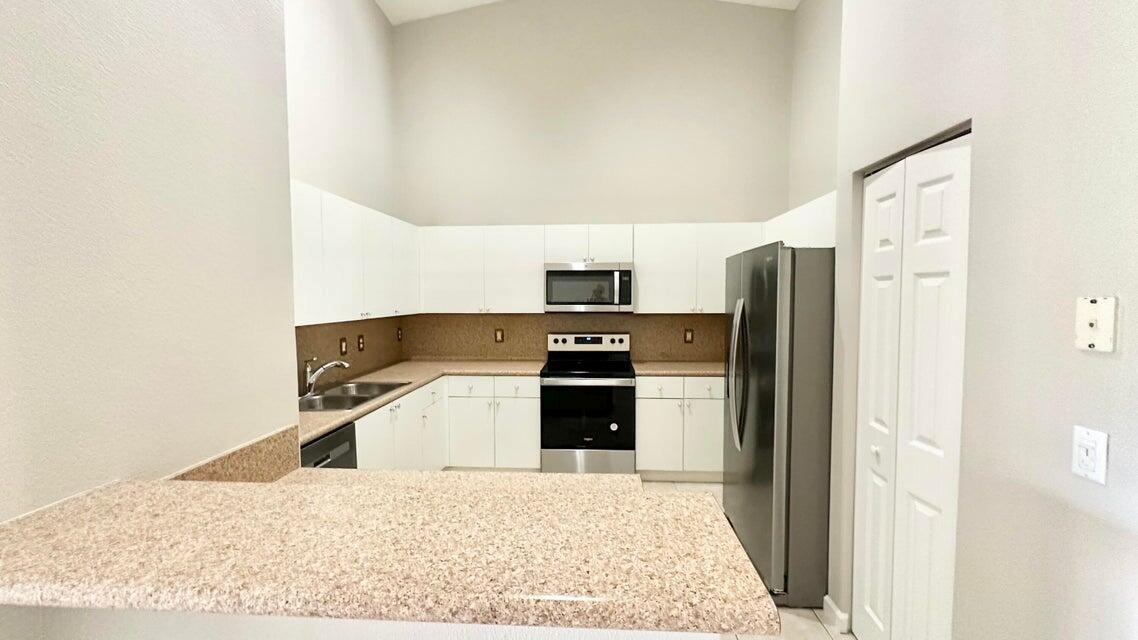 This is a superb opportunity to buy a villa with garage in the popular Baywinds community! Situated overlooking a wide grassy and lake view this immaculate property boasts luxury vinyl plank flooring throughout the main living areas, large open kitchen with updated stainless appliances, vaulted ceilings. The principal and guest bedrooms are split from each other offering plenty of privacy when guests are visiting. The principal bedroom has a huge walk in closet and separate walk in shower. This home is well situated, well priced and ready to go!