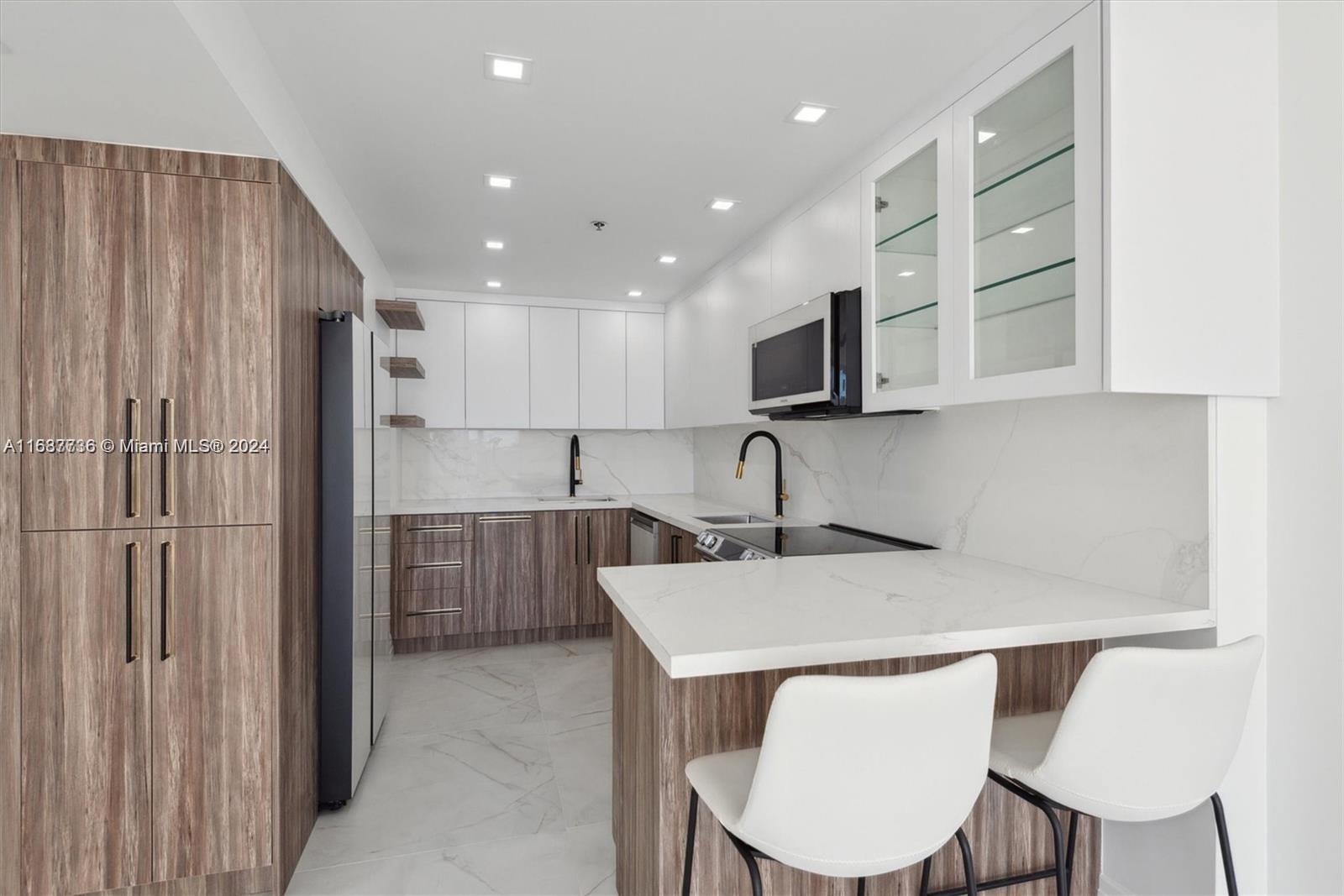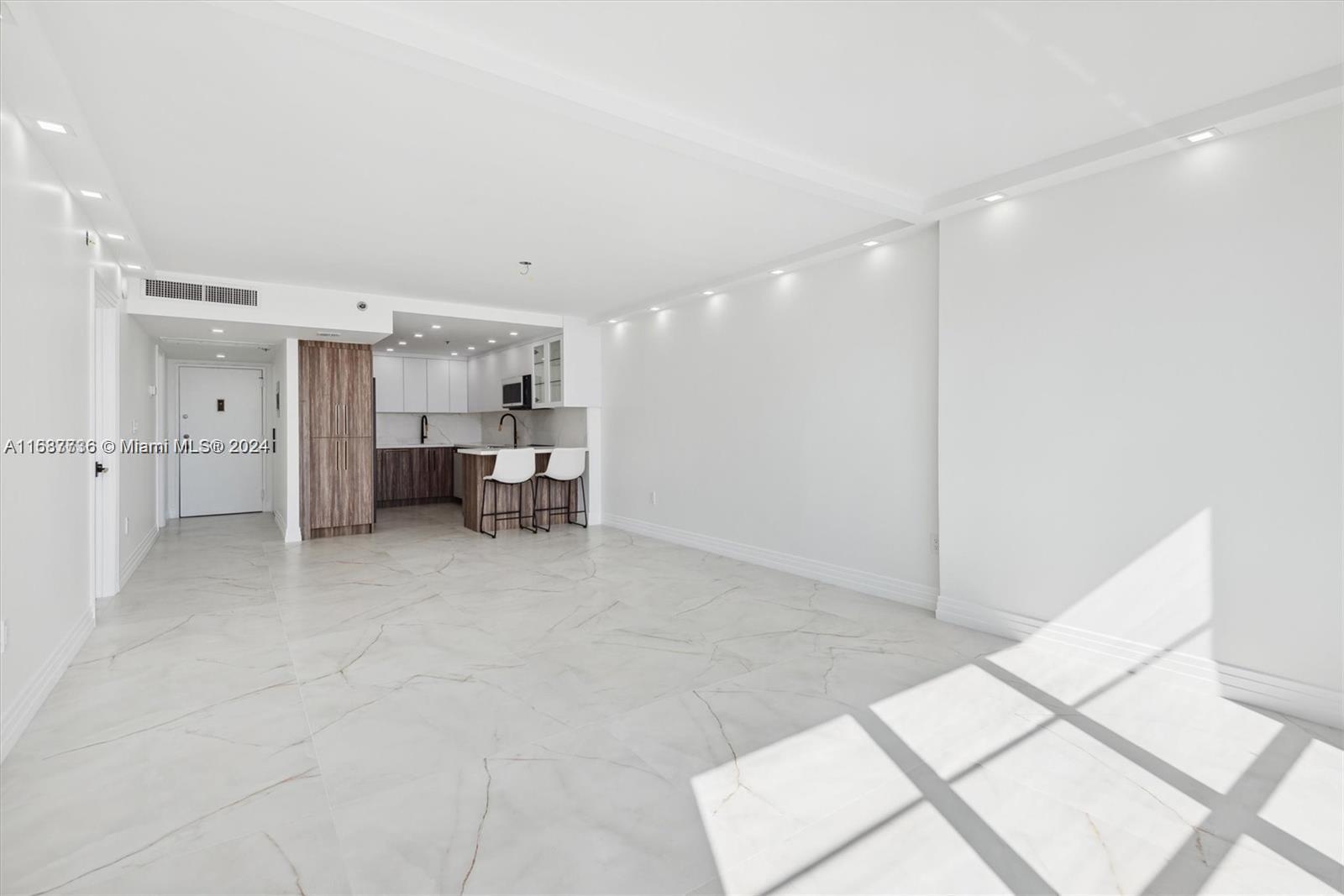 Repriced and back on the market! Direct ocean tastefully renovated one bedroom, 2 full bath with designer touches in every room. A sophisticated, sliding, fabric panel divider creates a private 2nd sleeping space. Natural light fills each room by day and chic, square, recessed lighting by night. Gorgeous porcelain floors throughout. The fashionable and functional open kitchen has sleek granite counters, high end appliances and generous cabinets. 2 flawlessly designed bathrooms, built in closets completes this amazing , must see, move-in ready apartment. W/D in unit. Building has 24 hour security, heated pool, kids playground and playroom, tennis courts and more. Short walk to shopping, schools, synagogue, and the beach! Easy to show - No Saturday showings