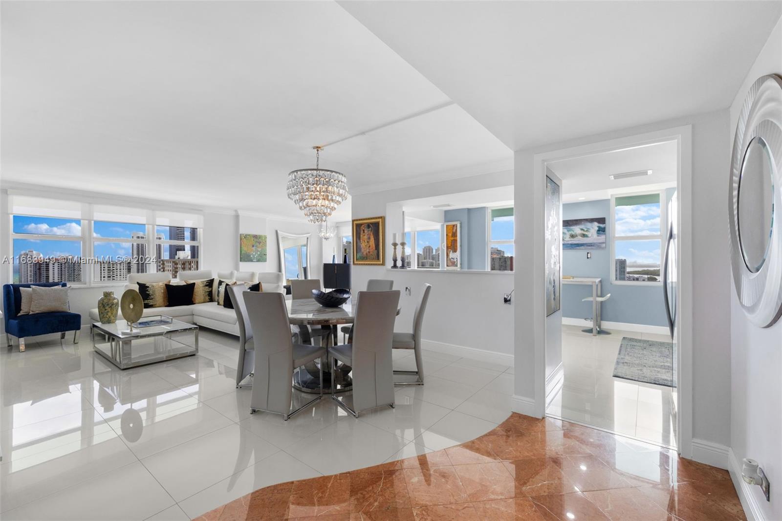 This Expansive 2 bedroom 2 bathroom Corner Penthouse, with stunning water views that will impress the pickiest of clients. This oversized 24th fl corner unit, with 1856 sqft has more than enough space for anyone to feel at home. A fully renovated unit, with porcelain flooring throughout, and accents of Italian marble. For a person who enjoys making masterful meals, in a custom kitchen with modern white cabinetry, quartz countertop, SS appliances and that all make cooking an ease. Enjoy building 301's, a social area, library, gym, saunas, an auditorium, a billiards room, ping pong, and soon to be delivered pickleball court. Closing notes: Buyer paid took over special assesments