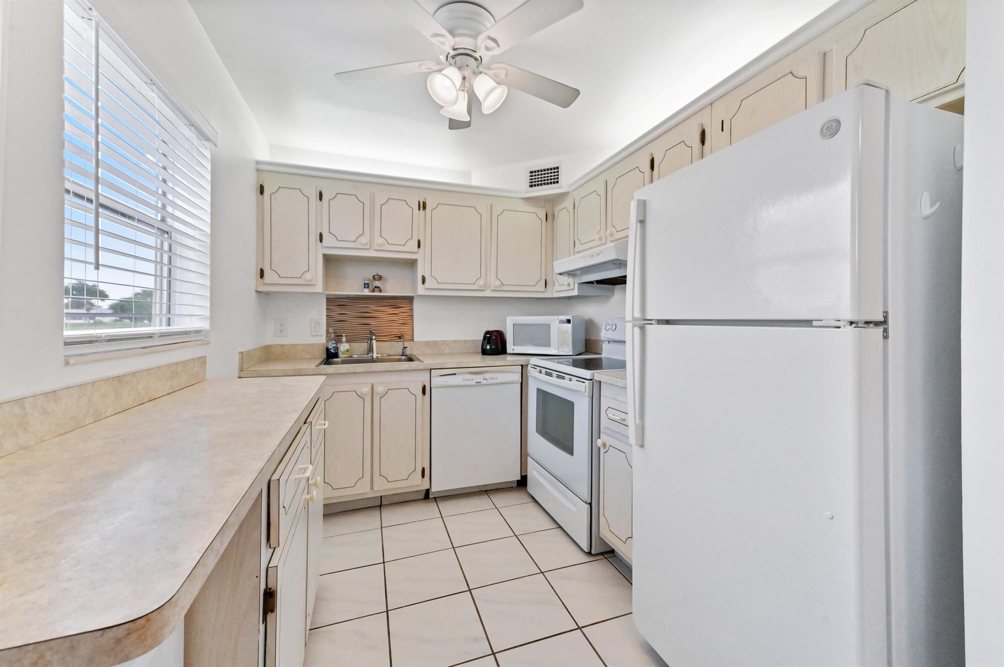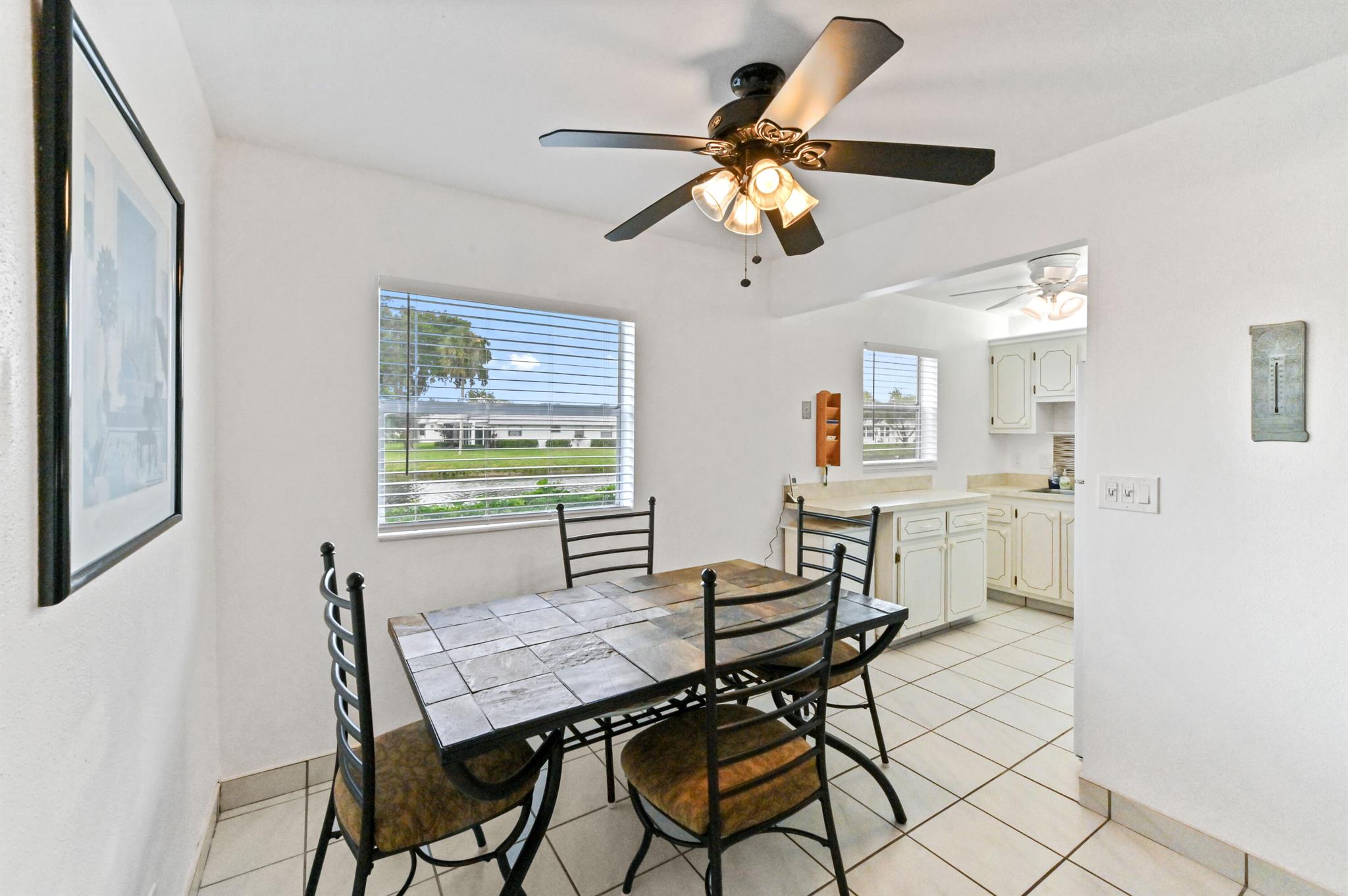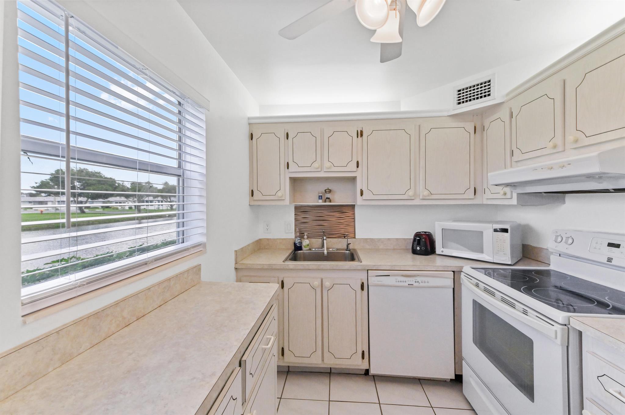 Introducing 168 Monaco D, an elegantly appointed corner condo strategically positioned on the ground floor in the vibrant, active Adult Community of Kings Point, Delray Beach, FL. This idyllic dwelling is beaming with abundant natural light, streaming in through windows in the dining room, kitchen, living room, master bathroom, and one of the bedrooms - a tribute to its design acuity.This condo sets itself apart with not one but two separate entrances leading to the patio, where the sparkling water view becomes a daily spectacle. Enjoy the stunning vistas while enjoying the breeze, or relax indoors with the full-size washer and dryer in a designated closet. This arrangement blends functionality and aesthetics in perfect harmony.