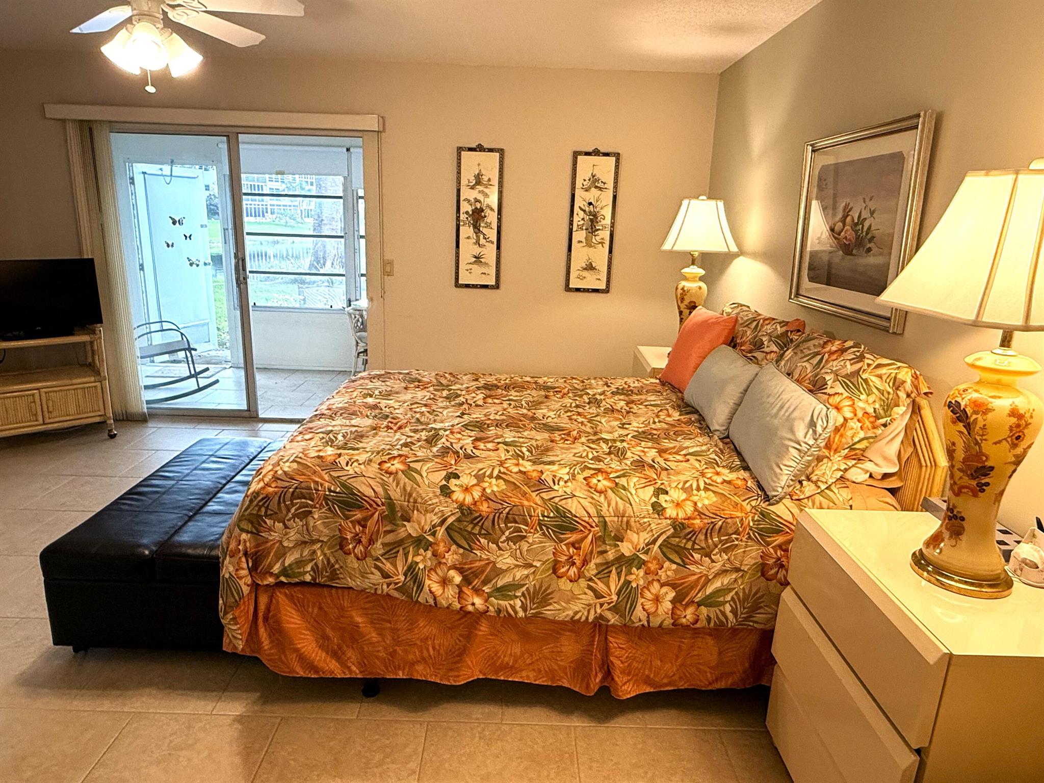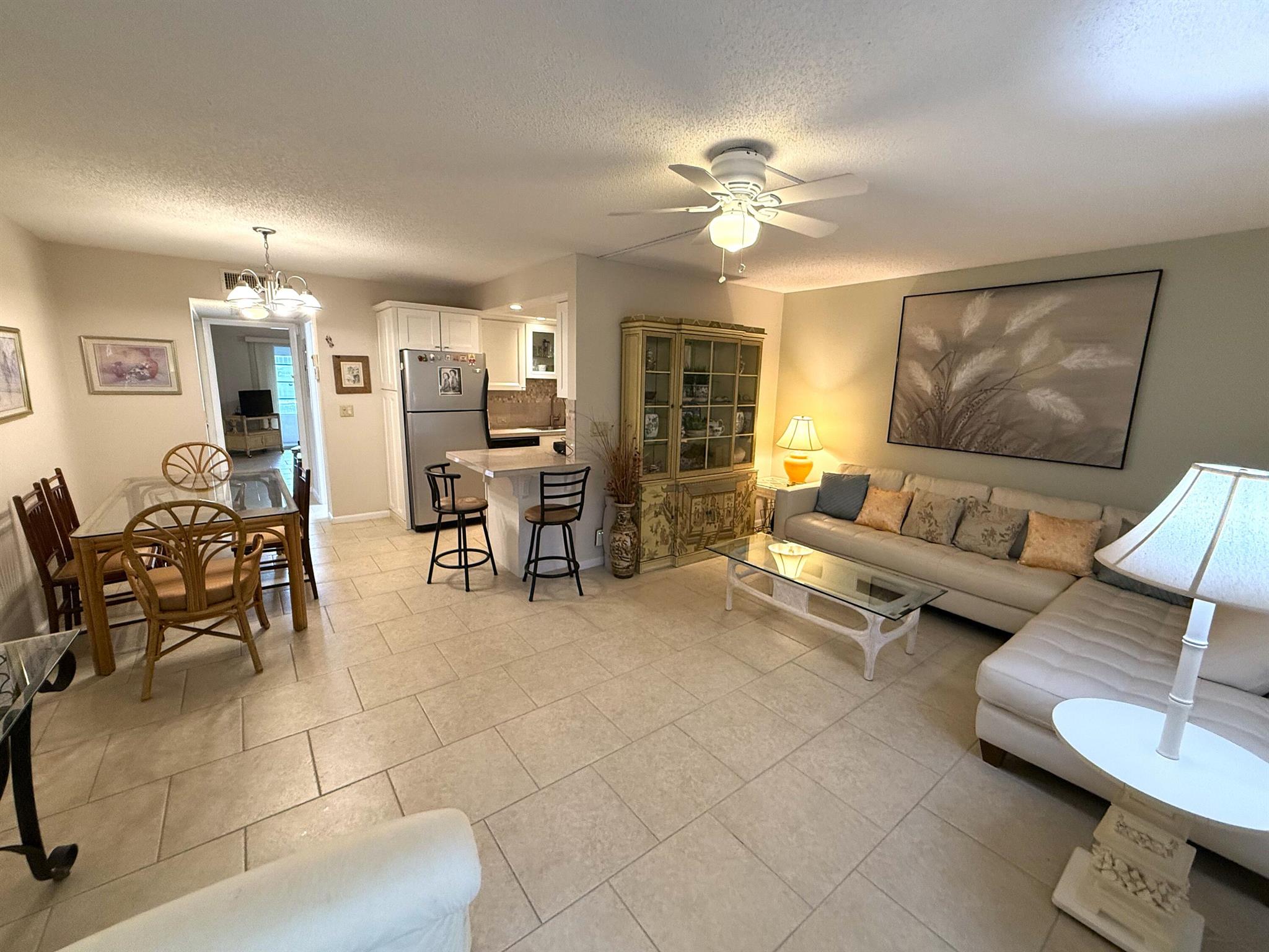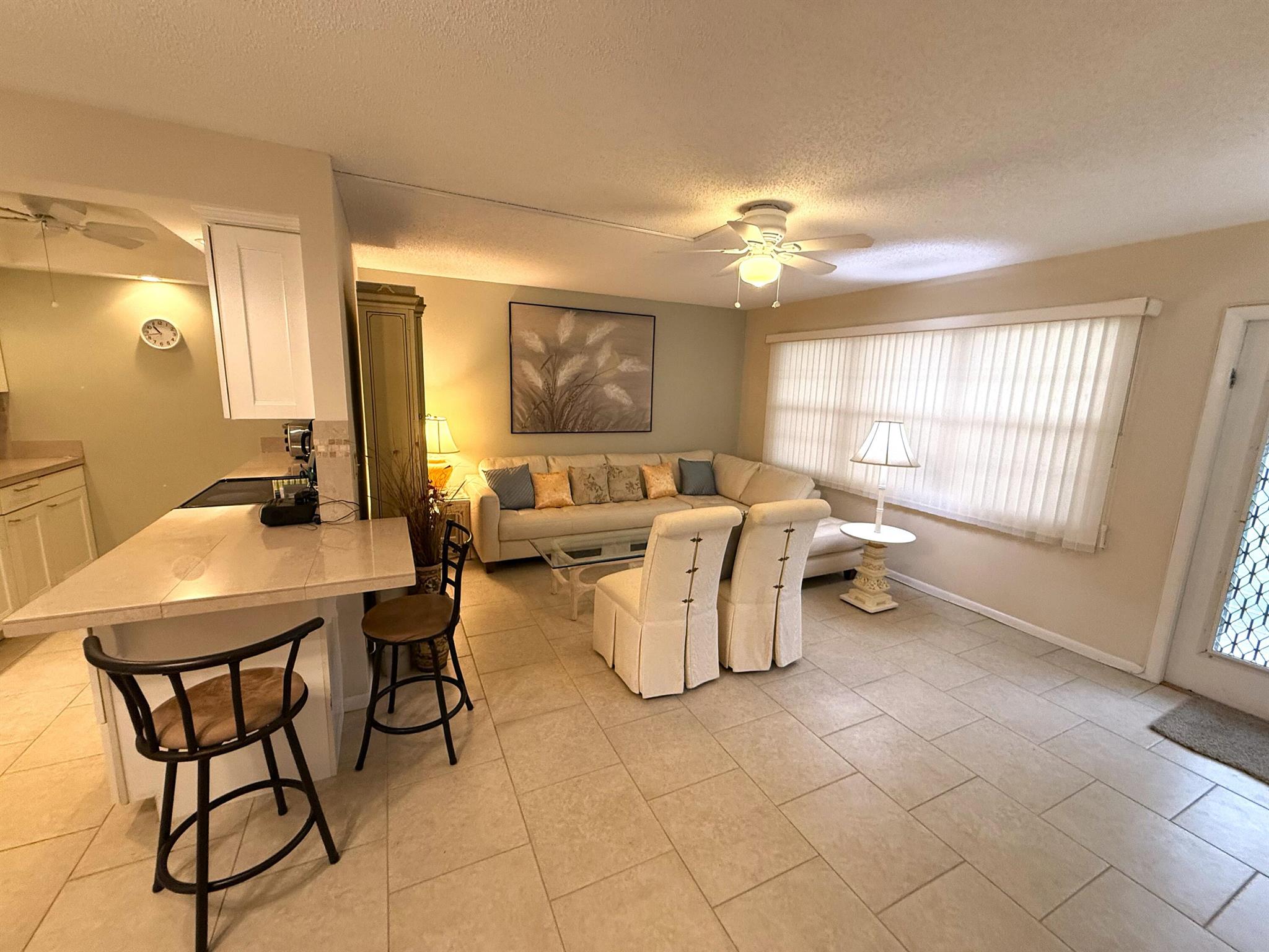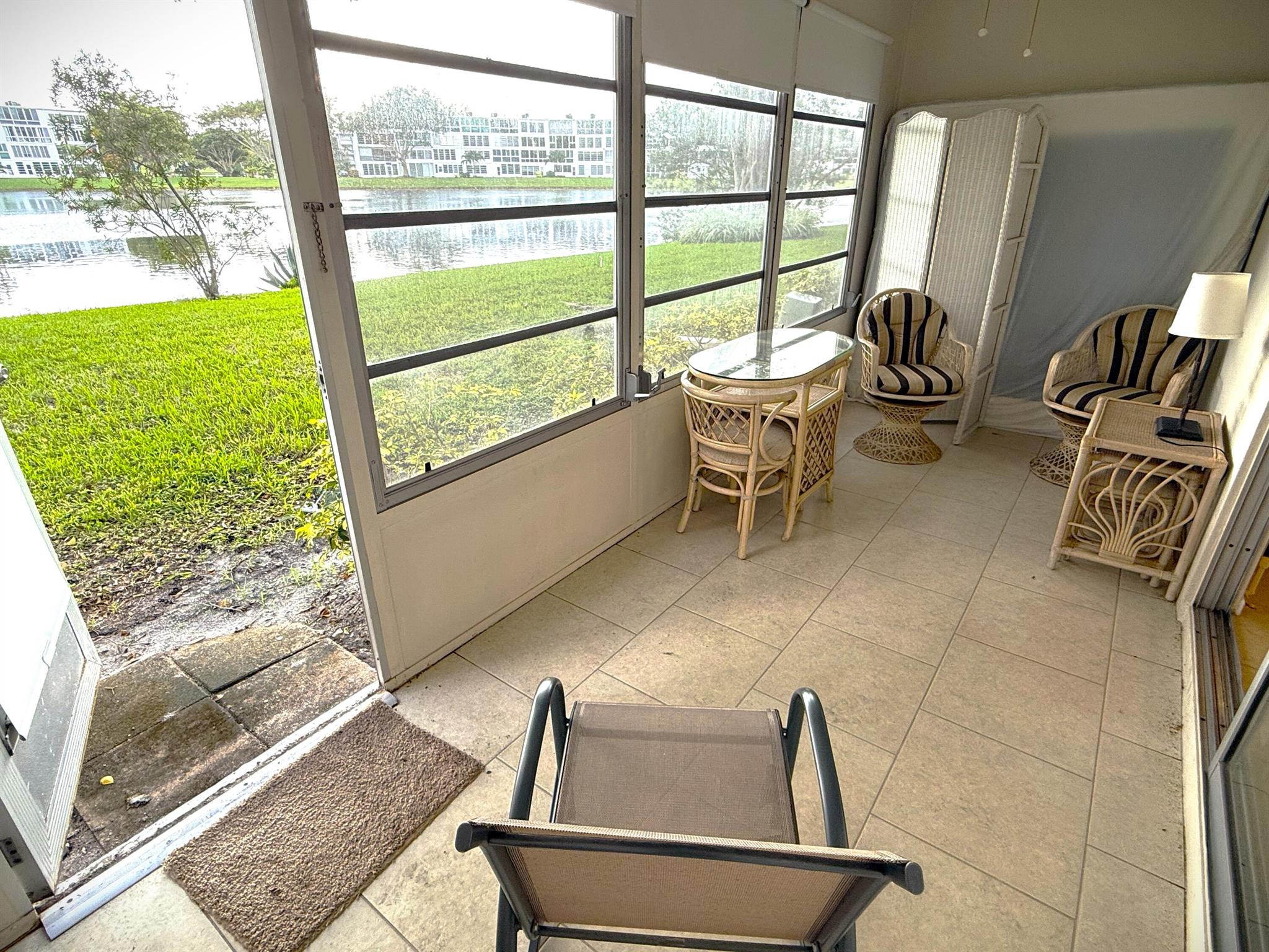 Imagine waking up to tranquil lake views and living just steps away from endless amenities--all in the heart of Century Village's best location! This spacious 1-bedroom, 1.5-bath condo, nestled on the first floor, offers you direct access to a serene lakeside view and is mere steps from the clubhouse. You'll find beautiful neutral ceramic tile throughout and, this condo comes fully furnished. Century is a vibrant community with something for everyone. From the live theater shows, state-of-the-art fitness center, and indoor/outdoor pools to the pickleball courts, library, and on site cafe, you'll have endless options. Plus, with a courtesy shuttle to the beach and nearby stores, everything you need is within reach! This rare first-floor gem in a gated, secure 55+ community is priced to sell