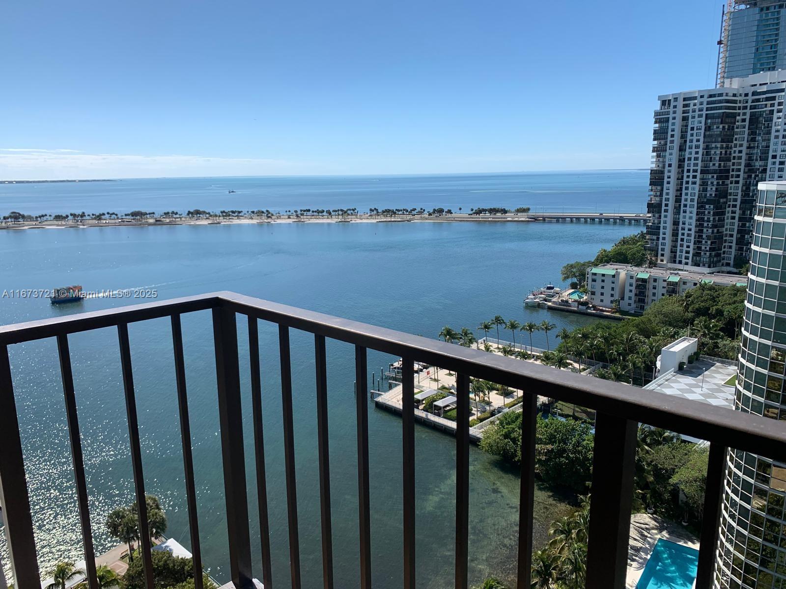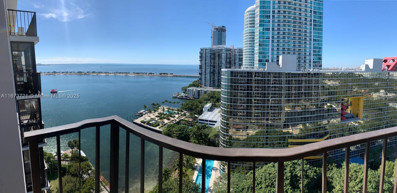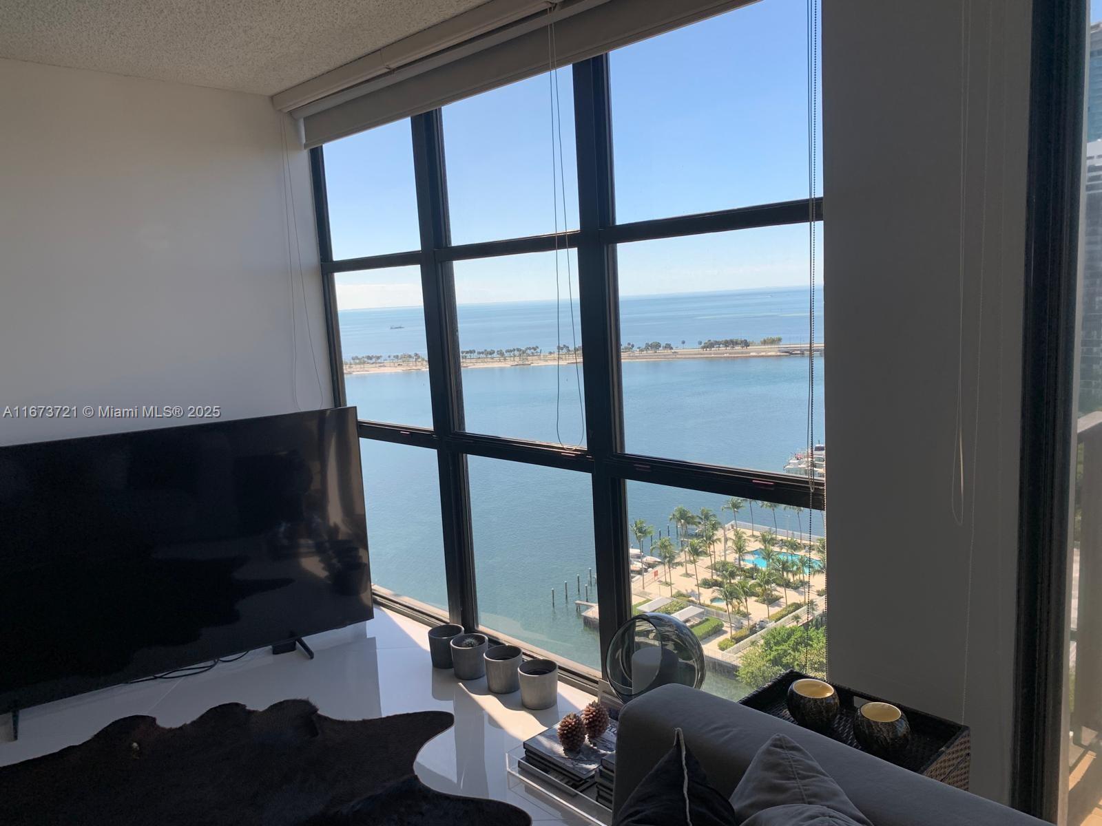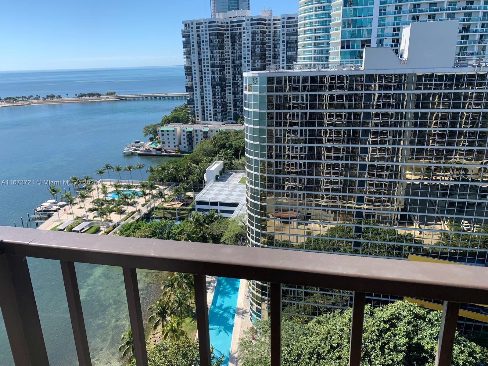 Price improvement! Best deal in Brickell Place! Perched on the 21st floor of most sought Brickell Place Tower D, this expansive 2-bedroom, 2-bath condo offers unmatched 180-degree views of the bay and city skyline. With an oversized 1,432 sq ft layout, this high-floor residence boasts balcony access from every room, flooding the unit with natural light and stunning vistas. The unit is exceptionally well-maintained, includes brand new shades and blackouts, featuring an in-unit washer and dryer, two covered parking spaces, and storage. A premier community with 24-hour security, a marina, tennis courts, a well-equipped fitness center, multiple pools, and a BBQ area, providing a resort-style living experience in the vibrant Brickell area. CLICK ON OUR IMMERSIVE 3D VIRTUAL TOUR ABOVE!