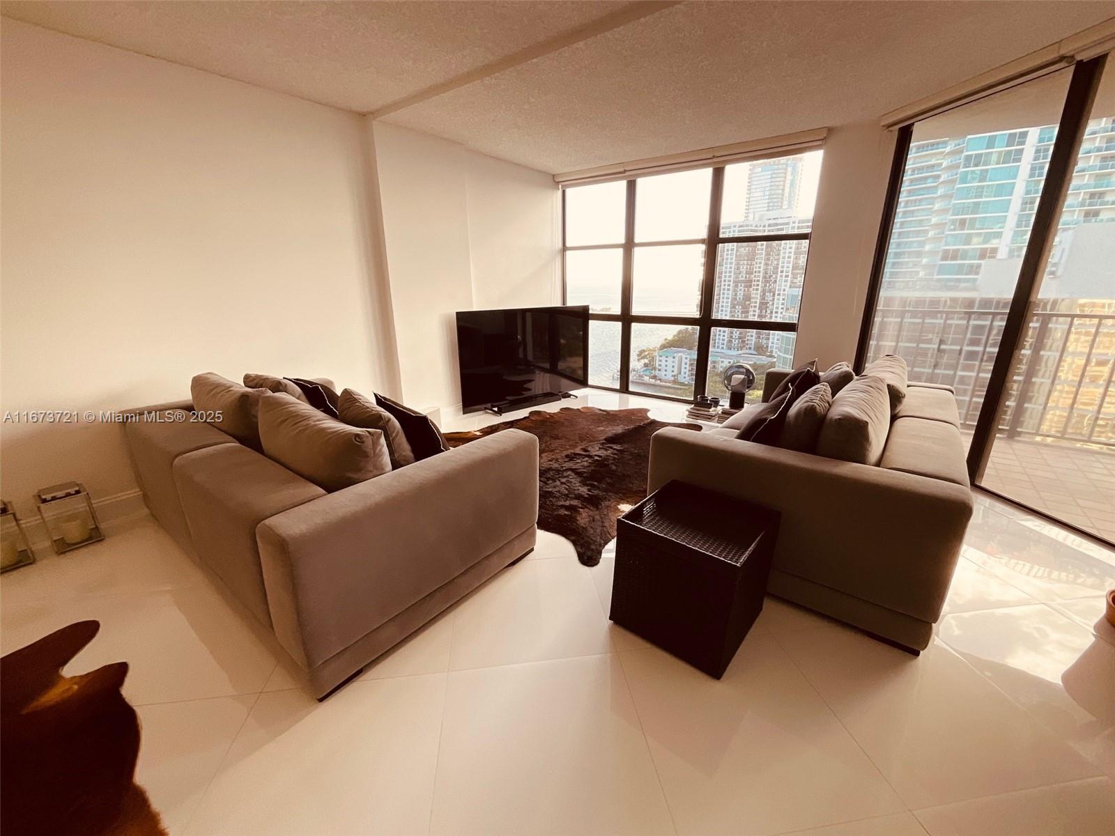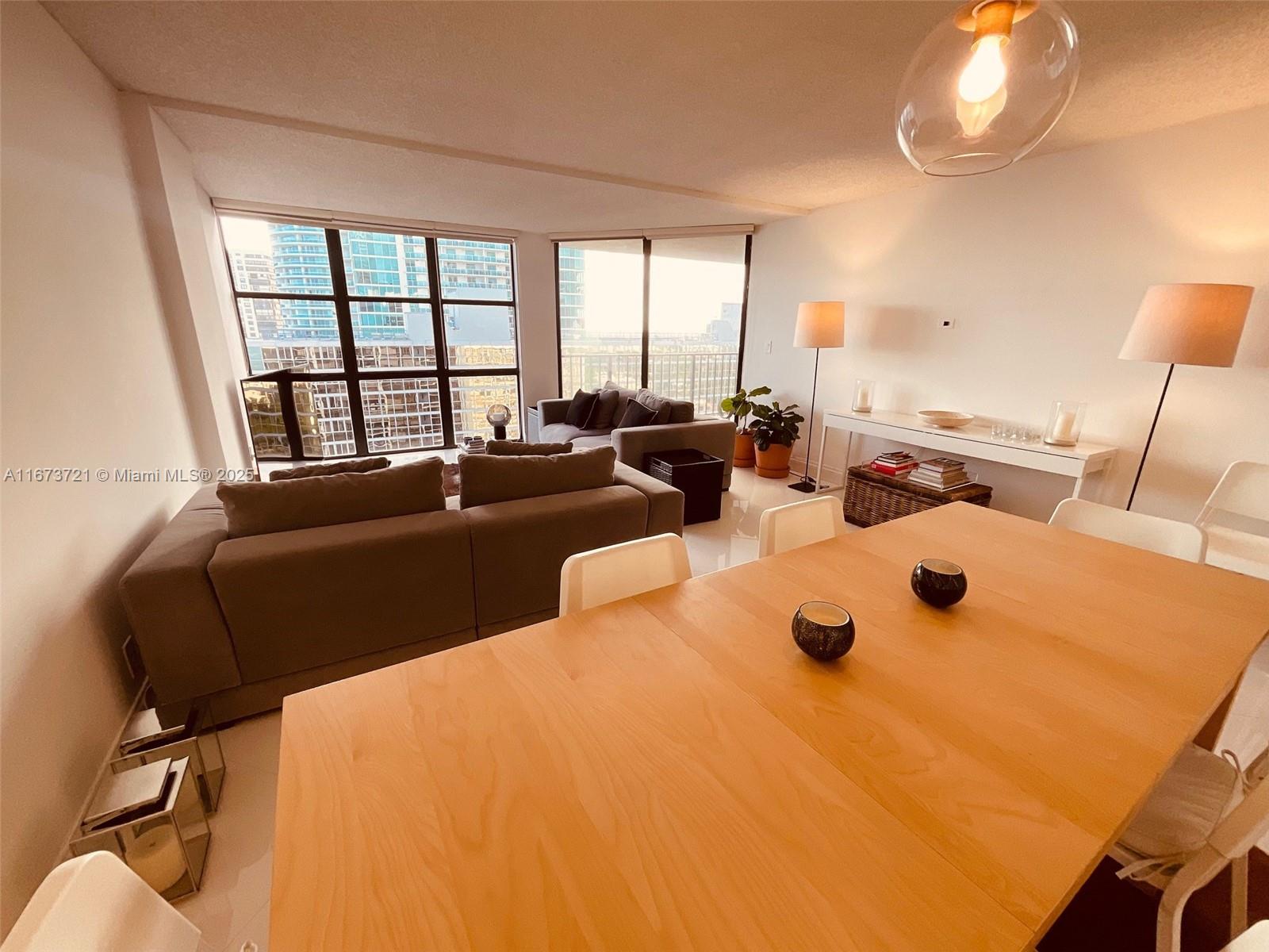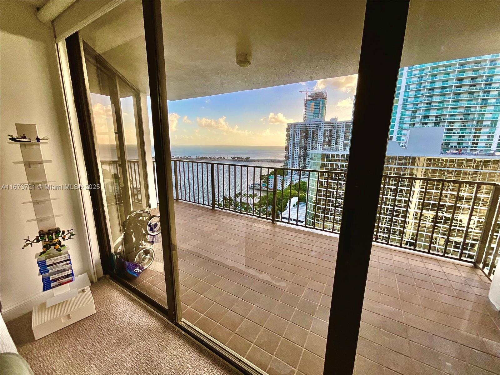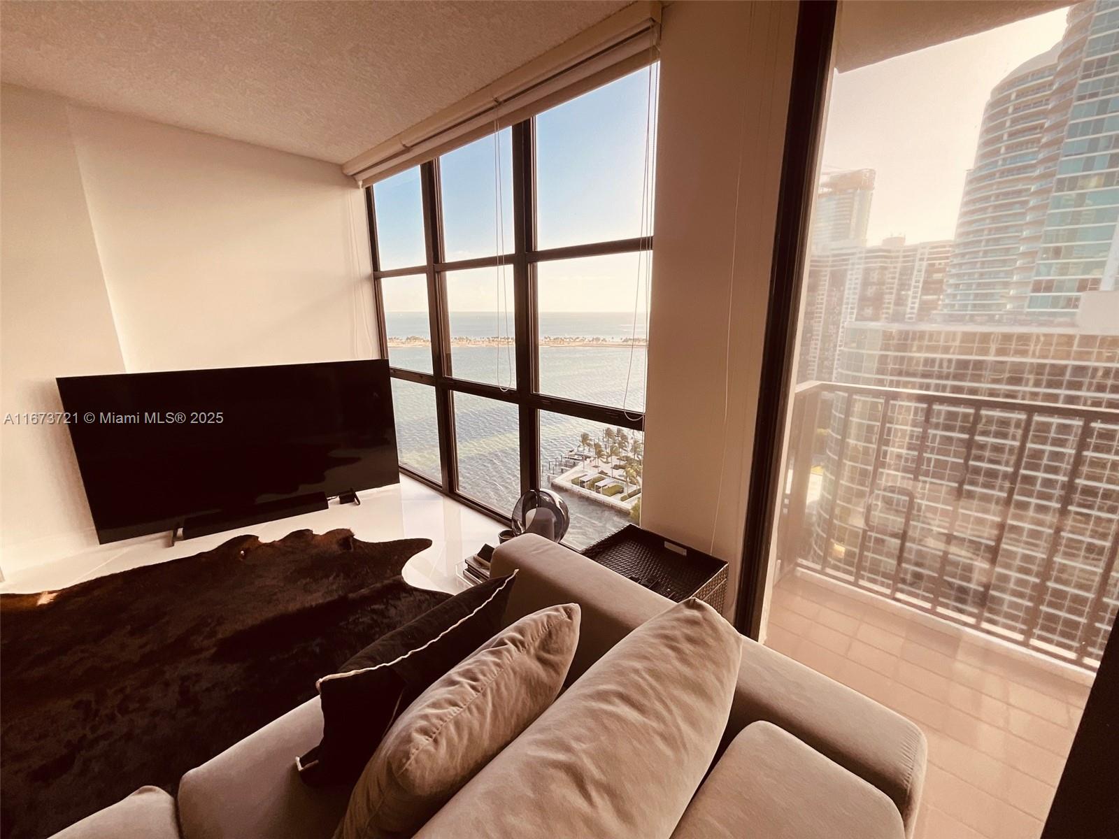 Price improvement! Best deal in Brickell Place! Perched on the 21st floor of most sought Brickell Place Tower D, this expansive 2-bedroom, 2-bath condo offers unmatched 180-degree views of the bay and city skyline. With an oversized 1,432 sq ft layout, this high-floor residence boasts balcony access from every room, flooding the unit with natural light and stunning vistas. The unit is exceptionally well-maintained, includes brand new shades and blackouts, featuring an in-unit washer and dryer, two covered parking spaces, and storage. A premier community with 24-hour security, a marina, tennis courts, a well-equipped fitness center, multiple pools, and a BBQ area, providing a resort-style living experience in the vibrant Brickell area. CLICK ON OUR IMMERSIVE 3D VIRTUAL TOUR ABOVE!