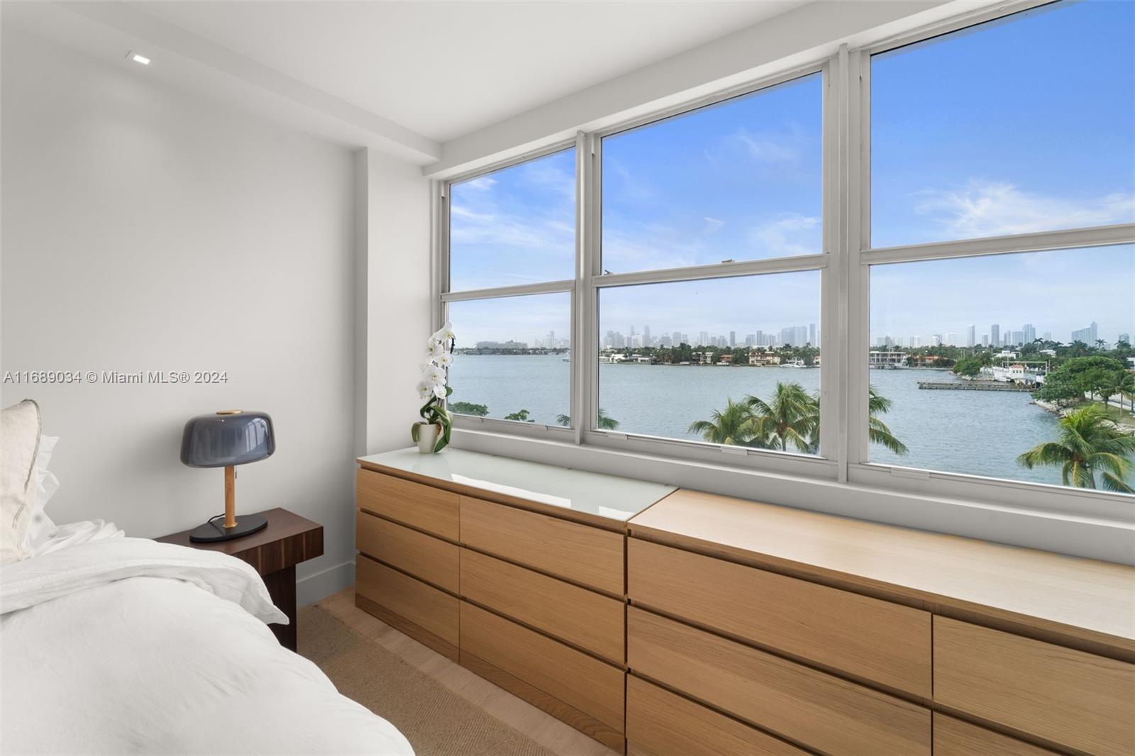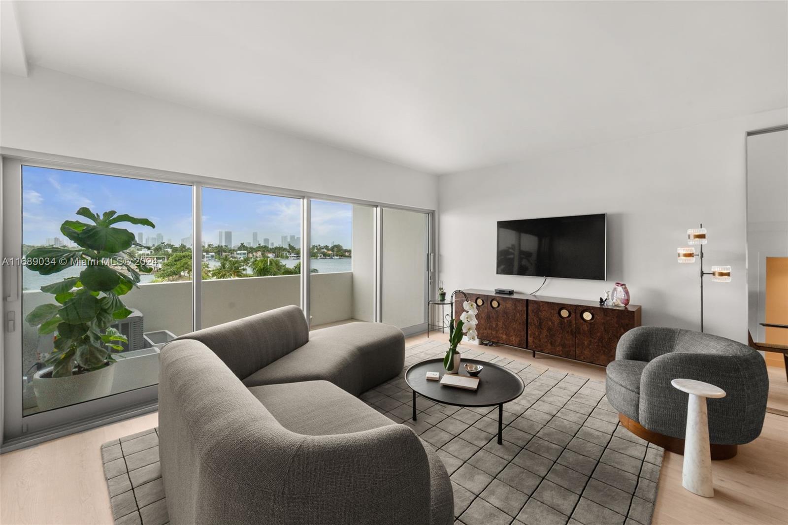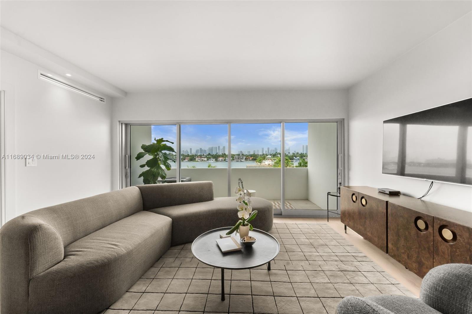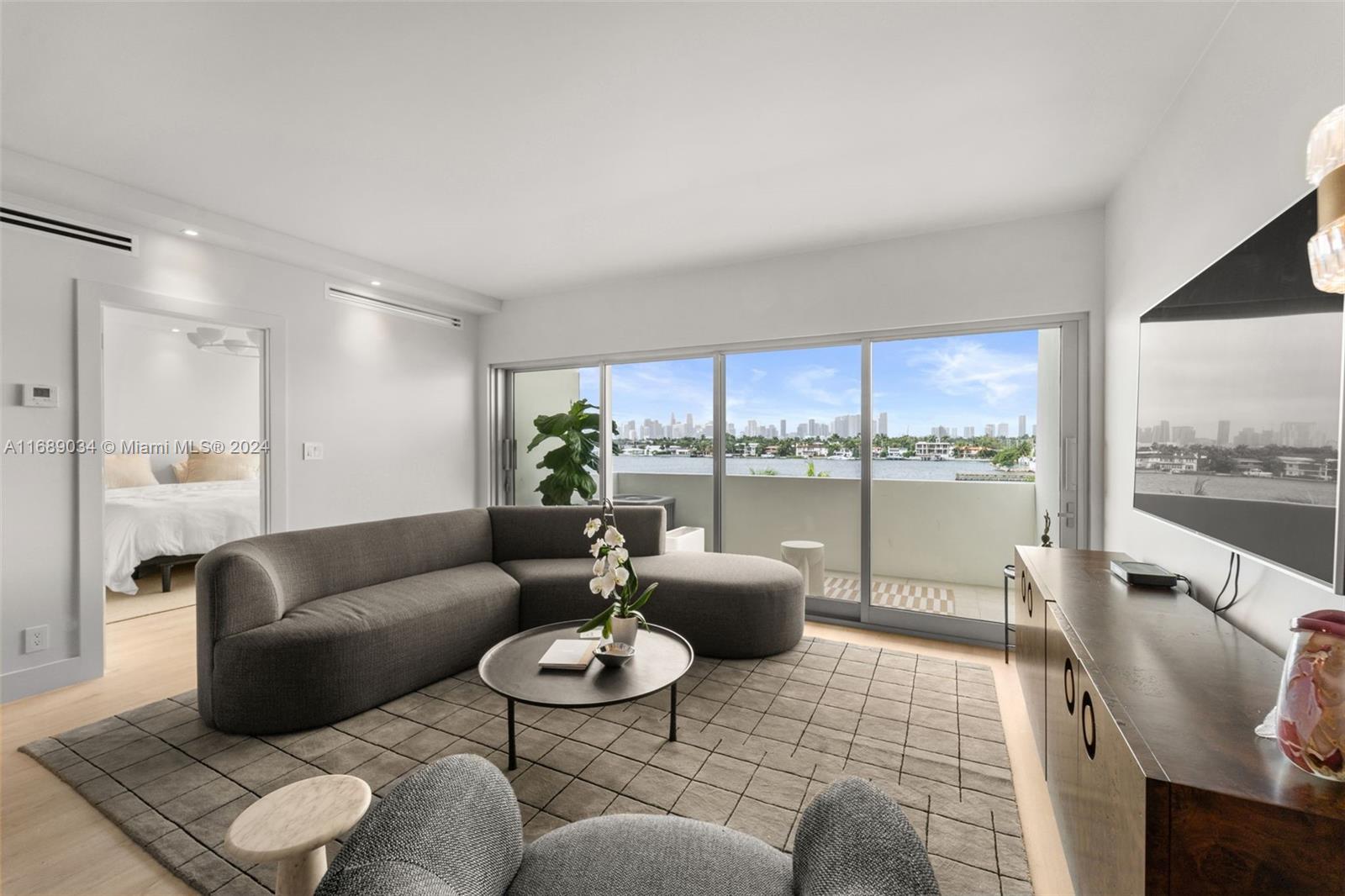 Presenting 3 Island Ave 5F on Belle Isle—an "Architectural Digest" quality renovation with no detail overlooked. This exquisite 1 bedroom, 1.5 bath residence boasts sweeping views of Biscayne Bay. The custom-designed kitchen features sleek Italian cabinetry and top-of-the-line appliances, including a Fisher Paykel refrigerator and wine cooler. The oversized terrace, framed by brand-new impact windows, showcases breathtaking bay views. Located in a mid-century modern gem, this building was designed by renowned architect Morris Lapidus, making this home a perfect blend of luxury, style, and timeless design