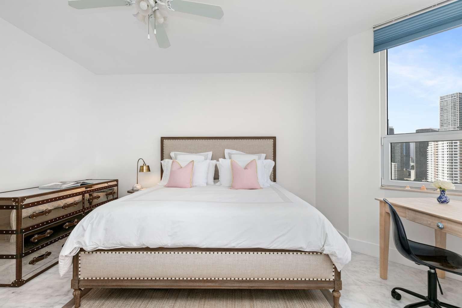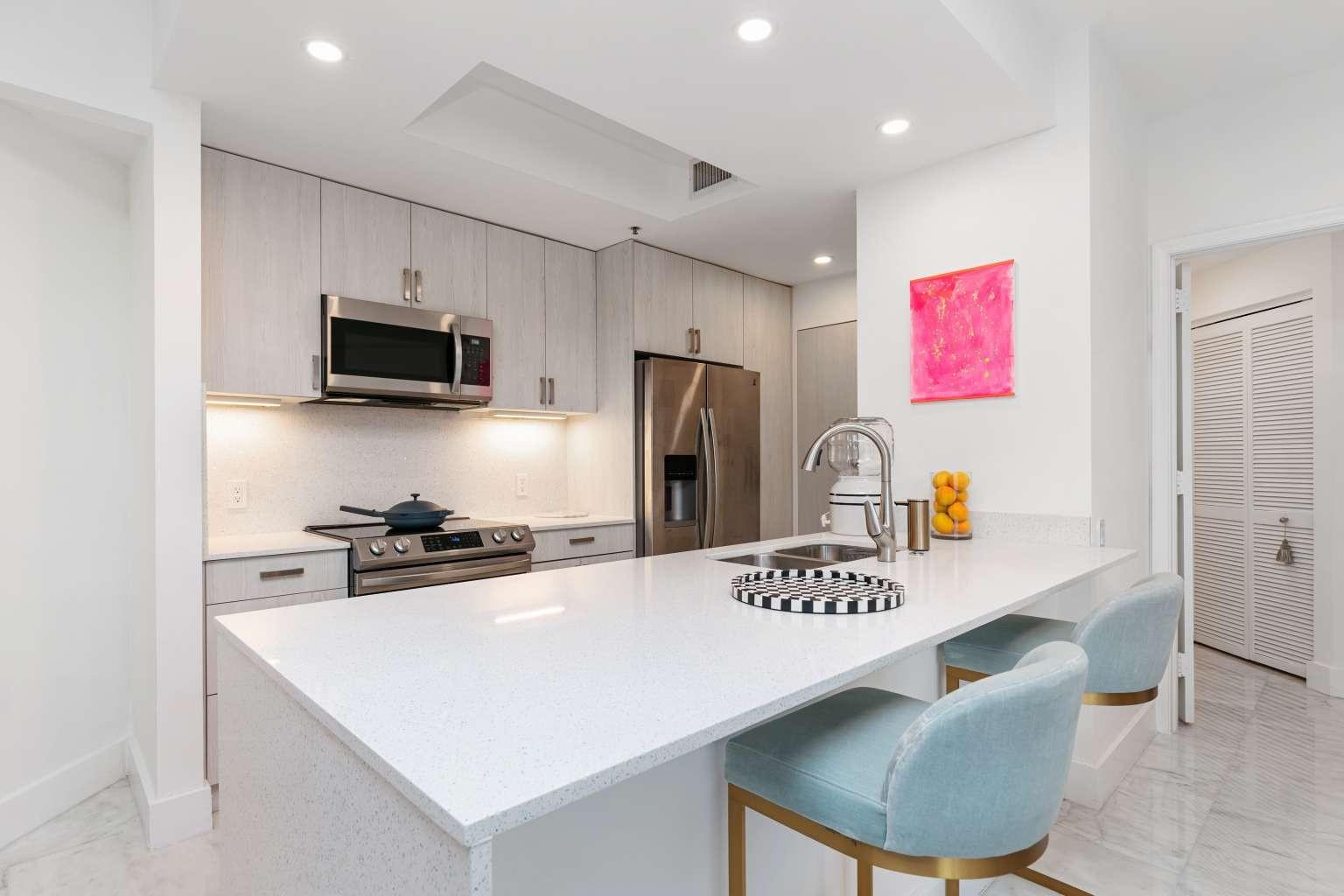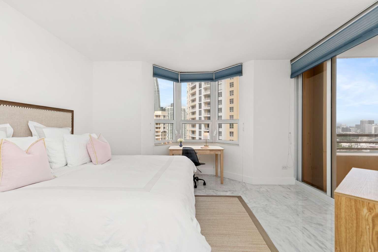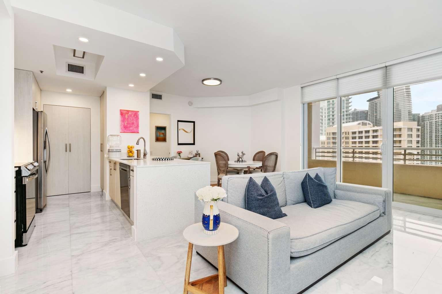 Prime location, beautifully renovated, and priced to sell! This spacious 1-bedroom, 1.5-bath condo (959 sq ft) is move-in ready and located in the luxury community of Brickell Key. Enjoy breathtaking views of Biscayne Bay, the Port of Miami, the Miami River, and the vibrant city skyline. Recent renovations include elegant marble flooring and countertops, custom cabinetry in the kitchen and bathrooms, modern lighting, and updated air conditioning. The resort-style building offers extensive amenities: tennis courts, gym, basketball and squash courts, pool, jacuzzi, BBQ areas, an events room for gatherings, and more. Pet-friendly and an absolute must-see!