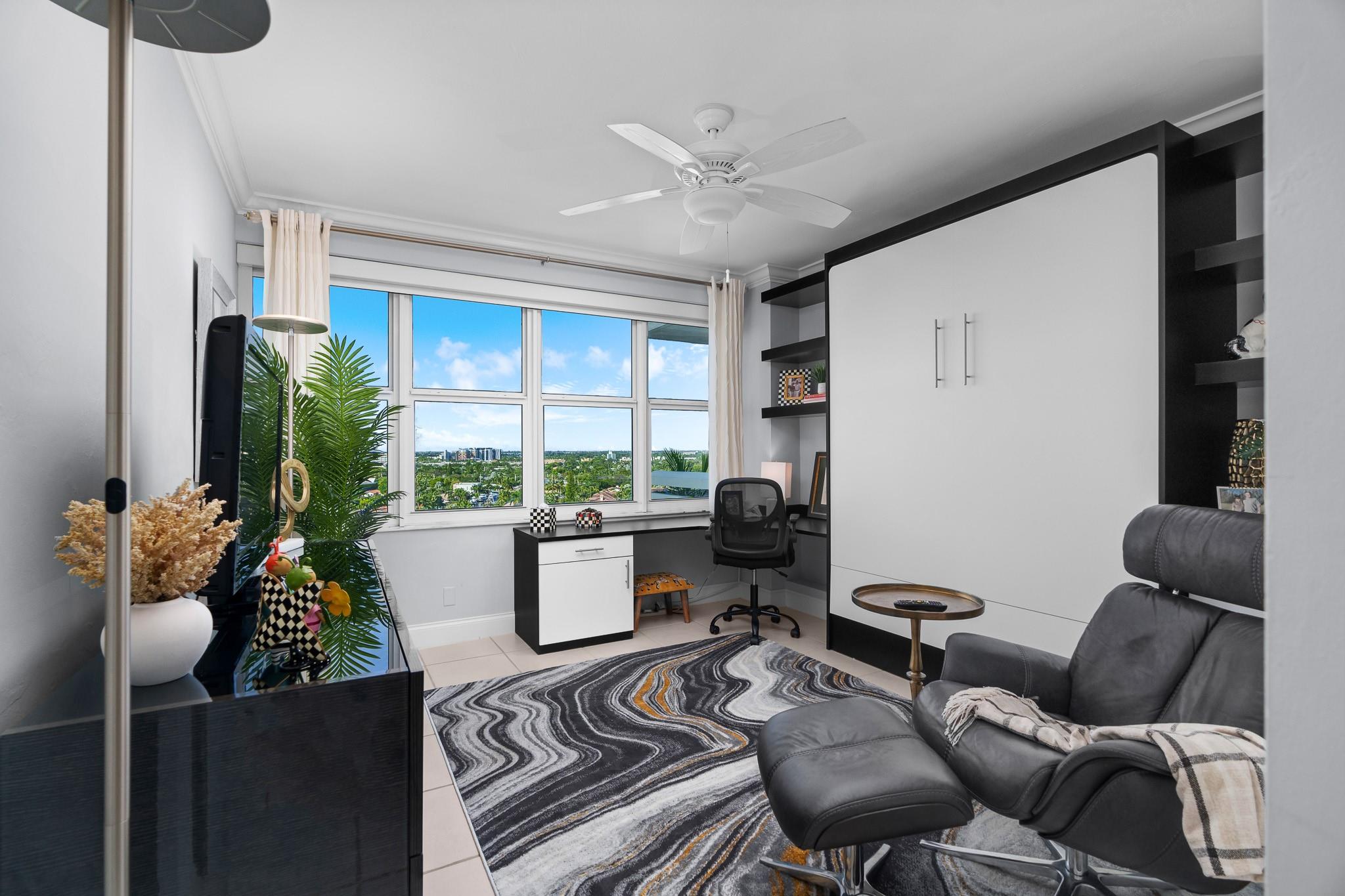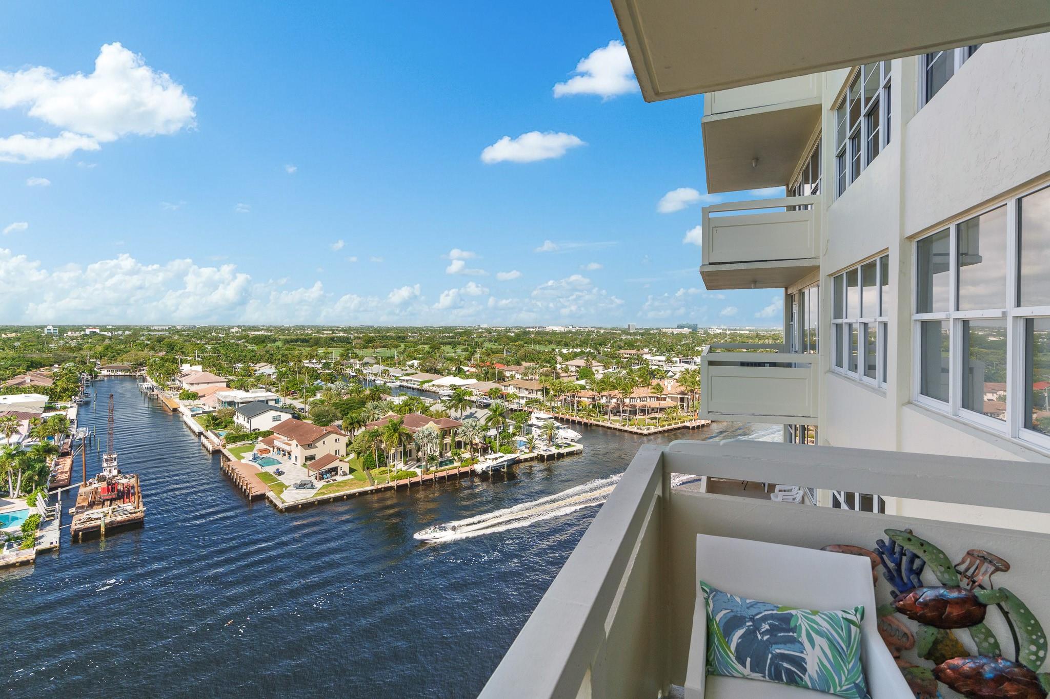 Introducing 3200 NE 36th Street #1407. This apartment is fully renovated and has amazing views of the Intracoastal and the city. The kitchen has new stainless appliances and counters and the modern bathrooms are stunning with step-in showers, custom closets. The guest bedroom has a Murphy bed for multi-purpose use and guests. No modern convenience has been overlooked for ease of living and entertaining. The safety of hurricane impact windows ensure peace of mind and quiet enjoyment. Situated in the highly sought-after Coral Ridge Towers North, you'll experience beachside living with 24/7 security, onsite management, and an array of top-notch amenities. Conveniently located on the barrier island, close to shopping, grocery stores, and restaurants. 55+ community and no pets allowed.