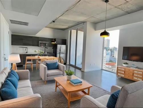 NEWLY painted luxury studio apartment nestled in the heart of downtown Miami. This rare gem gives easy access to the city's vibrant cultural and commercial districts—walk to Bayfront Park, Brickell, Biscayne Blvd, and a variety of shops & entertainment venues. The unit comes equipped with a washer & dryer, and the building boasts top-notch amenities including a rooftop pool, upper & lower lounges, a gym, & steam room. Pet-friendly with no weight or size restrictions—just register your furry friend with the association. You're also just steps away from Whole Foods, CVS, Walgreens, MetroRail, & major banks. Proximity to landmarks like the Kaseya Center (formerly American Airlines Arena), Adrienne Arsht Center, and Pérez Art Museum. ADDED BONUS: you can do SHORT-TERM RENTALS with this unit!