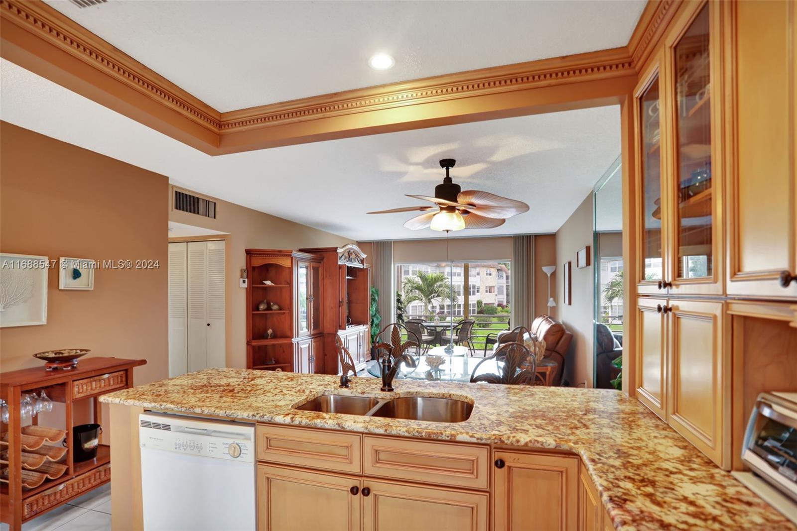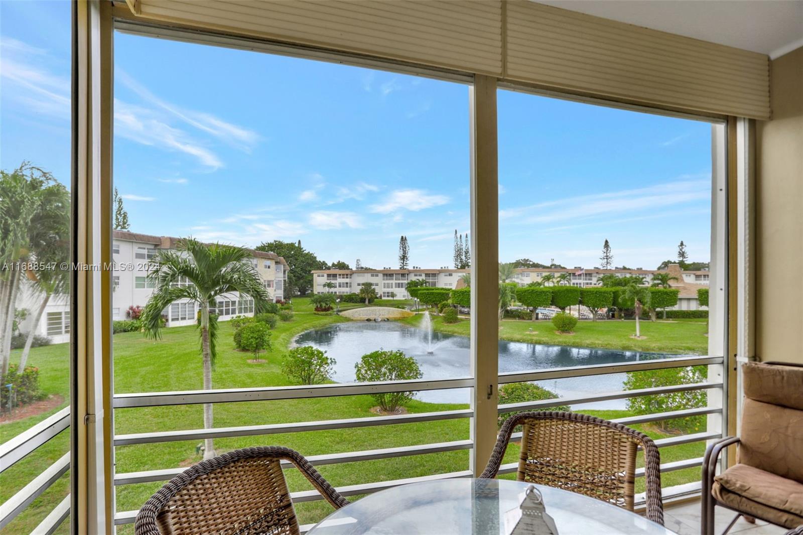 Welcome to this beautifully updated 2-bedroom, 2-bathroom condo in the highly sought-after Rose Building, in the desirable Hawaiian Gardens Phase 7. Enjoy panoramic views of the serene lake, charming fountain, & picturesque bridge right from your home. Inside, you'll find a spacious open-concept kitchen with elegant granite countertops, recessed lighting, and a brand-new air conditioning system. Tile flooring throughout the entire unit, tankless water heater 2019. Large screened balcony to enjoy the Florida Weather. This well-maintained building received a fresh coat of paint in 2022, & the elevator is just one year old. HOPA-verified community, including pool, shuffleboard, bocce, darts, BBQ grills, & more. This turn-key condo is move-in ready and won't last long—schedule a showing today!