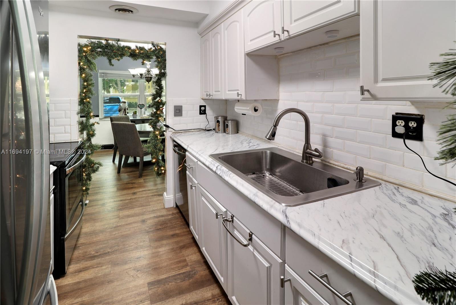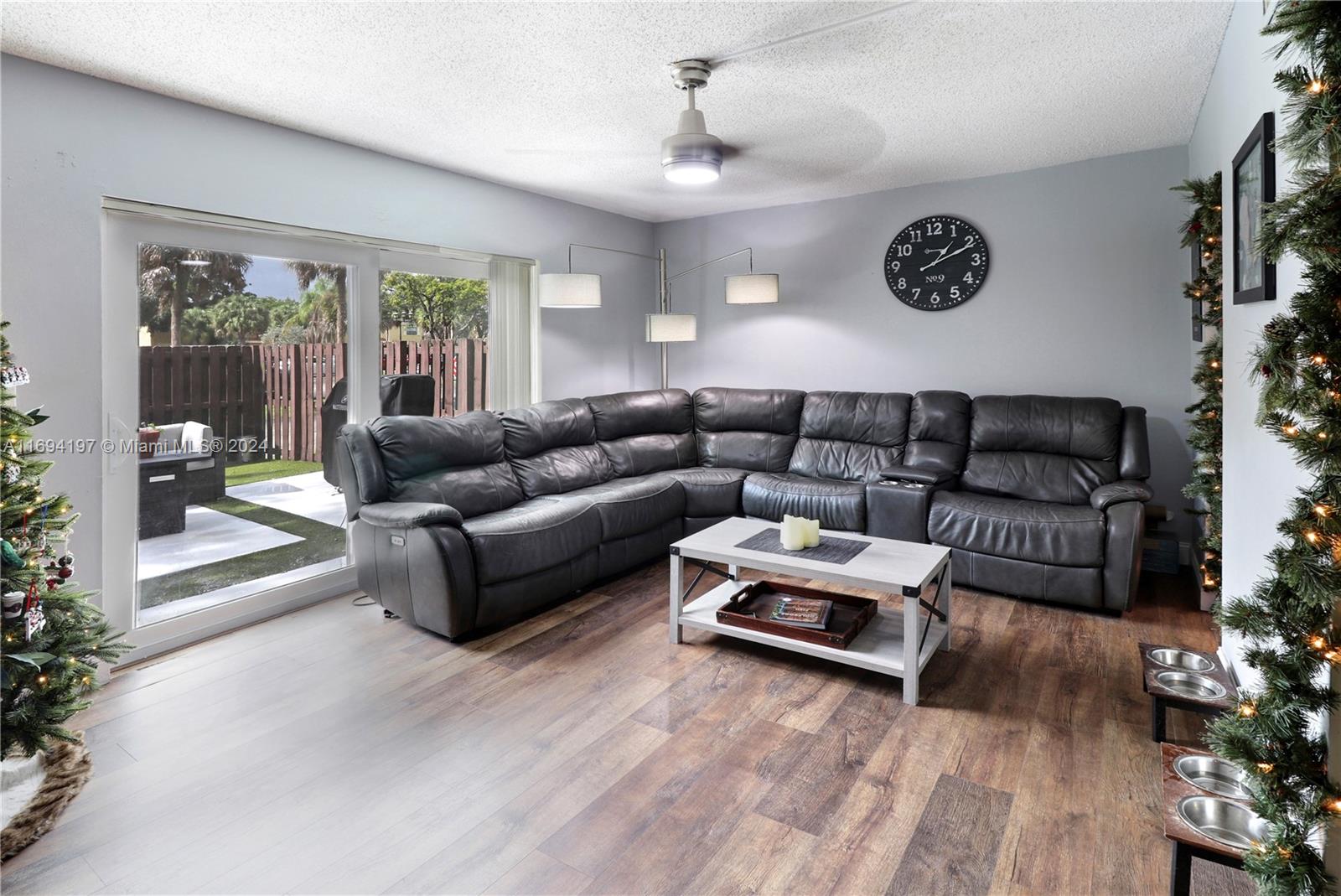 Welcome to La Placida! This corner unit townhouse is the perfect starter home. Featuring all impact windows and sliding doors throughout. The first floor has beautiful laminate flooring and an updated half bathroom for guests. Kitchen offers SS appliances and white cabinetry. Second floor has two massive bedrooms with one of them having a sizable walk-in closet. Washer/Dryer conveniently located on the second floor. Spacious back patio with turf, fully fenced for ultimate privacy. 2 assigned parking with plenty of guest spaces. Less than a minute away from the community pool & clubhouse. Investor friendly, can rent right away. Centrally located in the heart of Coral Springs which includes shopping, restaurants, supermarkets, parks, A-rated schools, & so much more!