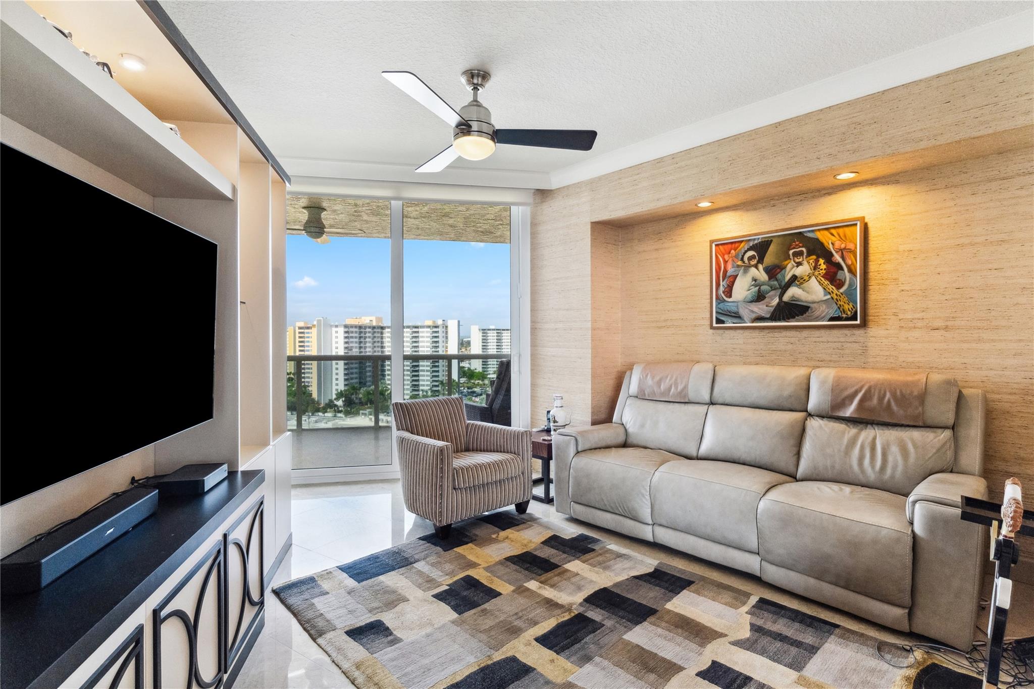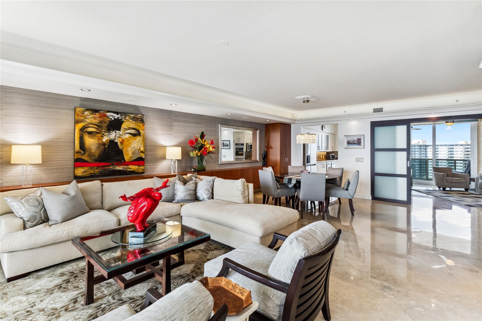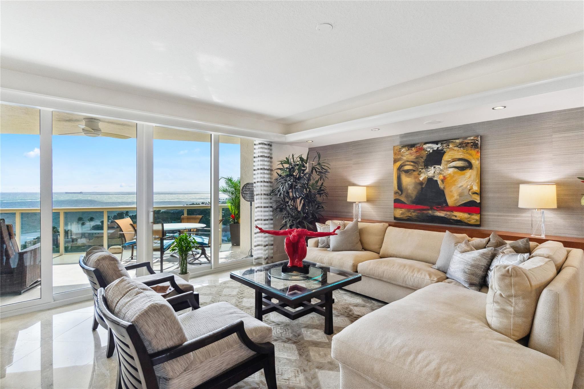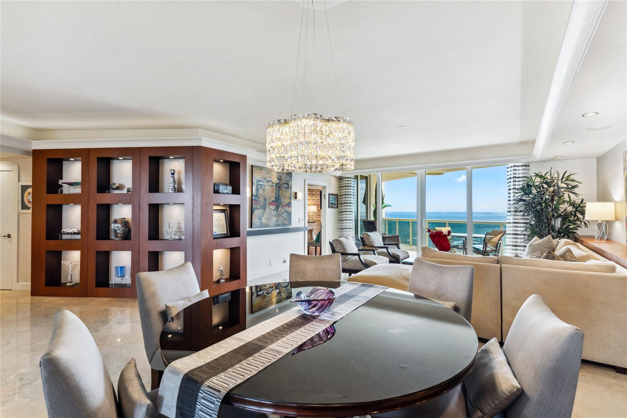 SUNNY SOUTHEAST EXPOSURE.. Sophisticated furnished model..move right in ! TWO TERRACES. Marble floors. HURRICANE IMPACT WINDOWS. Updated kitchen w dual (Kosher) dishwashers. Second bedroom is a den with sliding enclosure. 3rd bedroom has built in wall bed. SELF PARKING SPACE in garage PLUS valet guest parking. RESORT-like living with poolside restaurant , concierge, valet, 2 pools, 2 spas, 2 tennis courts, private beach pavilion with attendant, cabanas, tikis and BBQ area. 2 pets, any size , ok. EASY TO SEE
