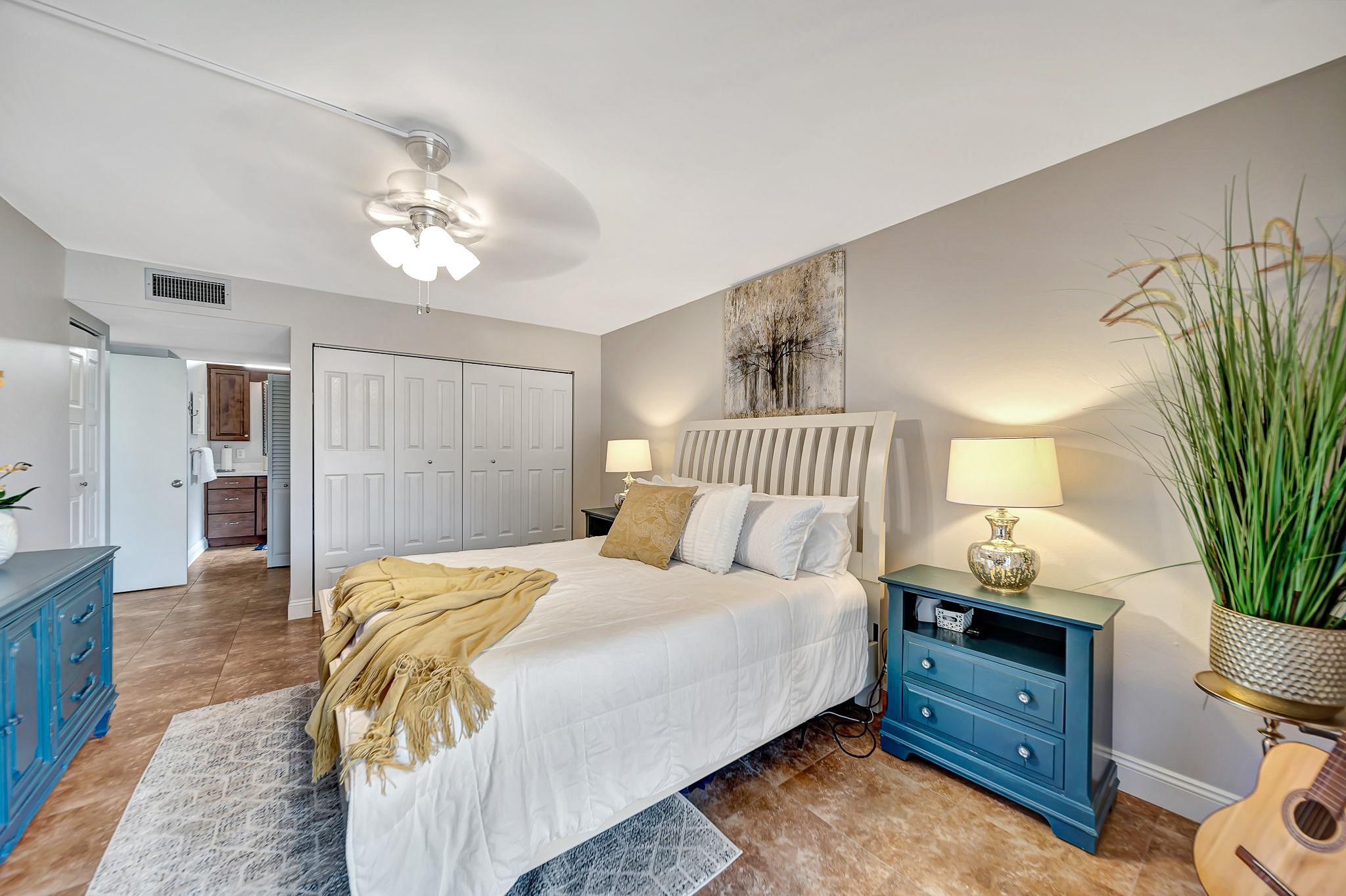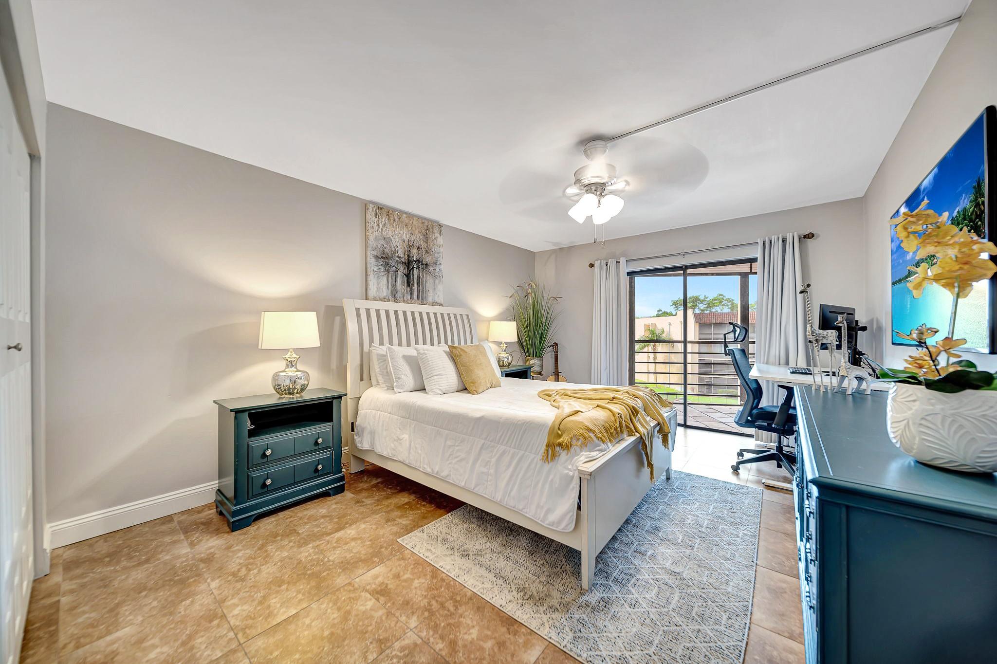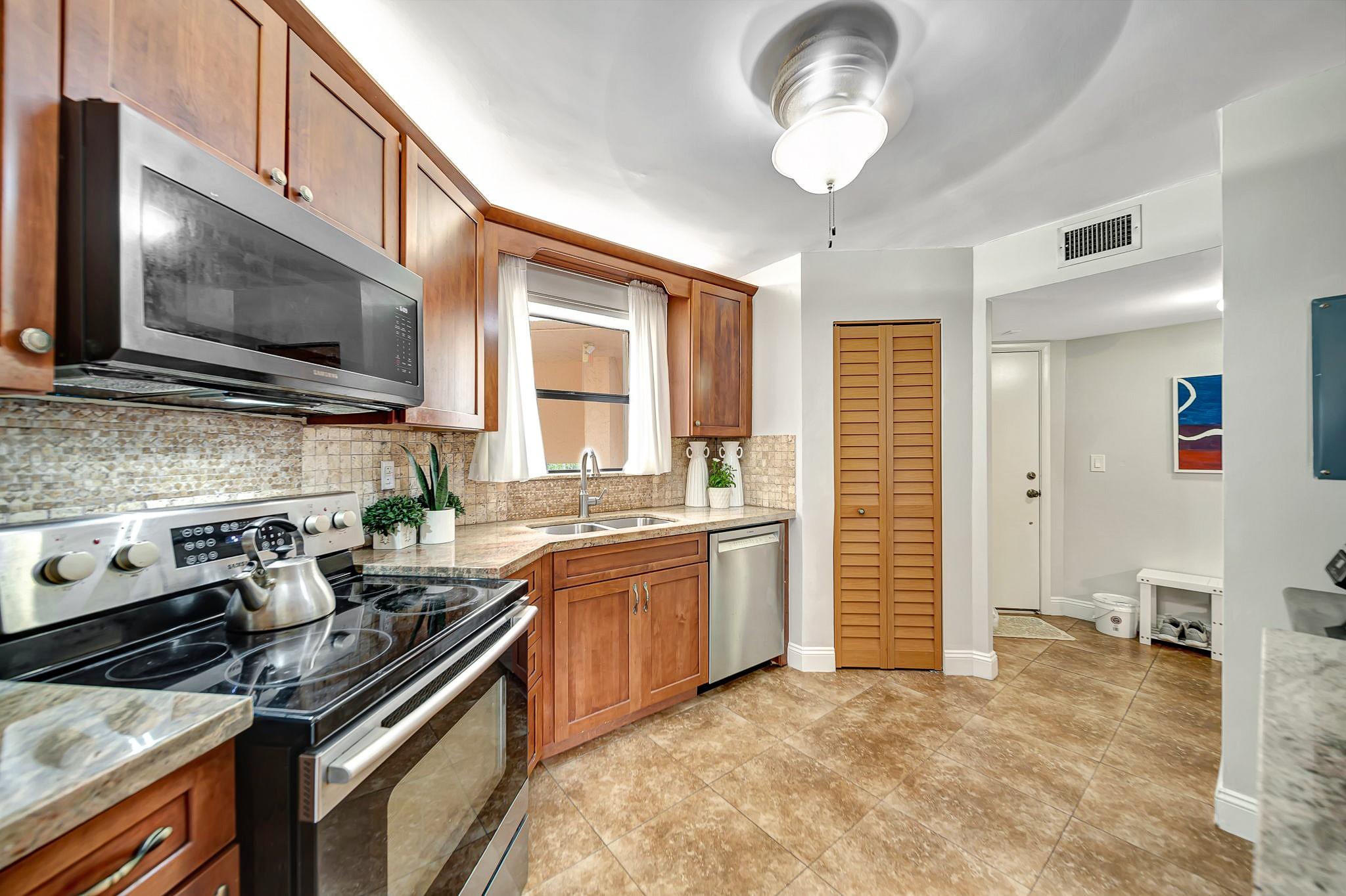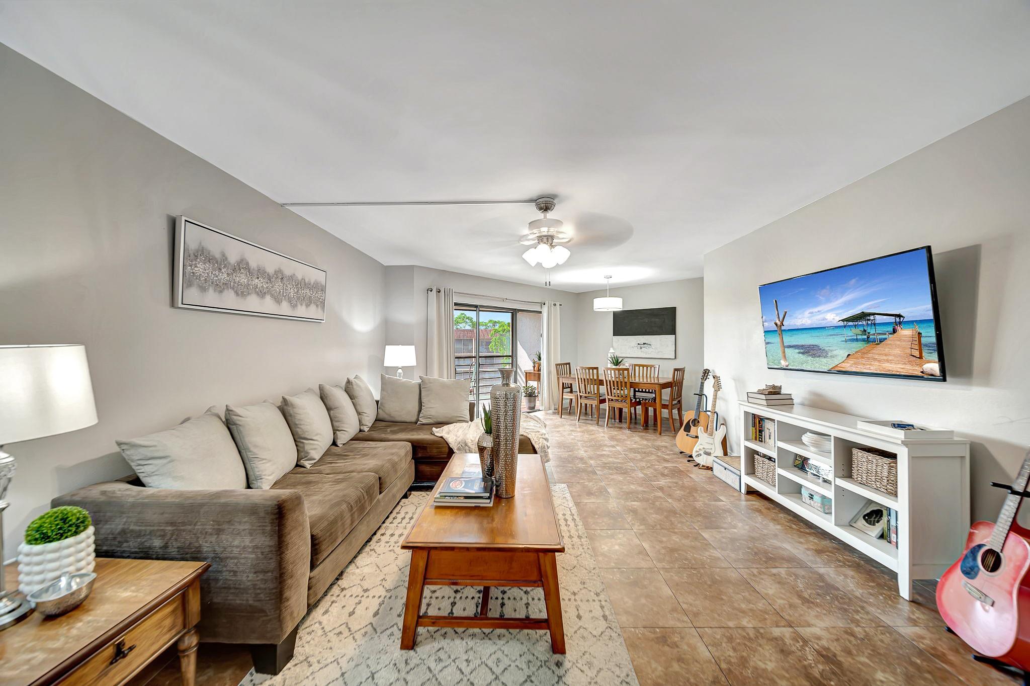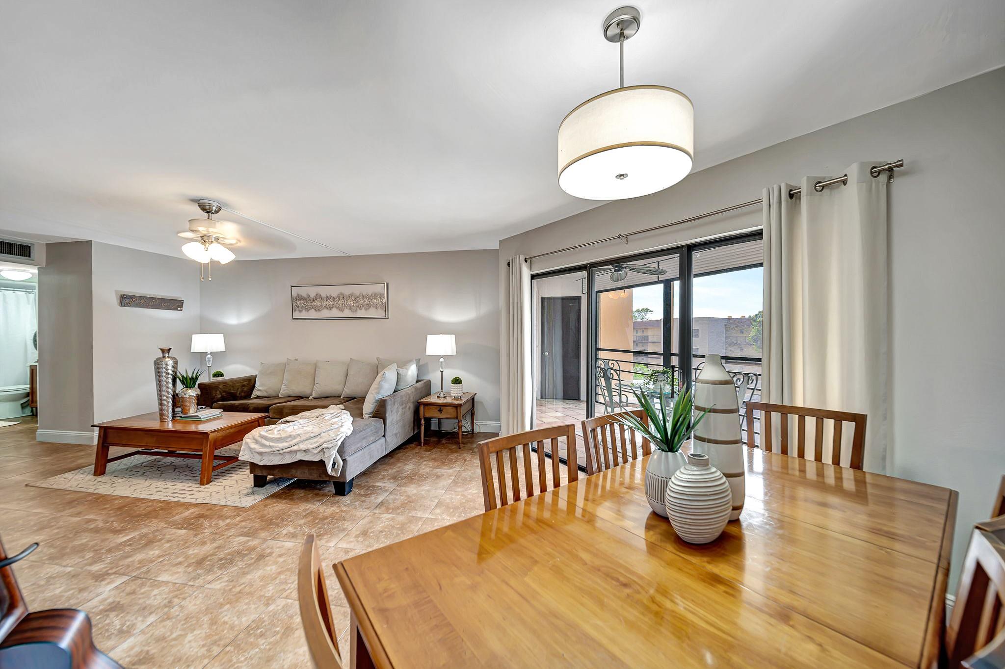 ABSOLUTELY STUNNING TURNKEY 2-bedroom 2 bath condo located in the heart of Plantation. This unit features: a spacious living room flowing into the formal dining area which leads into a spacious kitchen with natural wood cabinetry and a large pantry. Aesthetically pleasing kitchen features: granite countertop with matching backsplash and well-maintained stainless appliances. The split bedroom plan with guest bathroom, allows for great privacy. The oversize primary suite features a large walk-in closet with additional closet. This large primary suite has sliding glass doors that lead out to the screened patio overlooking the pool area. Patio is large enough to entertain your guests for a dinner, yet cozy enough to have have your coffee, or cocktails. Extra storage room on the patio.