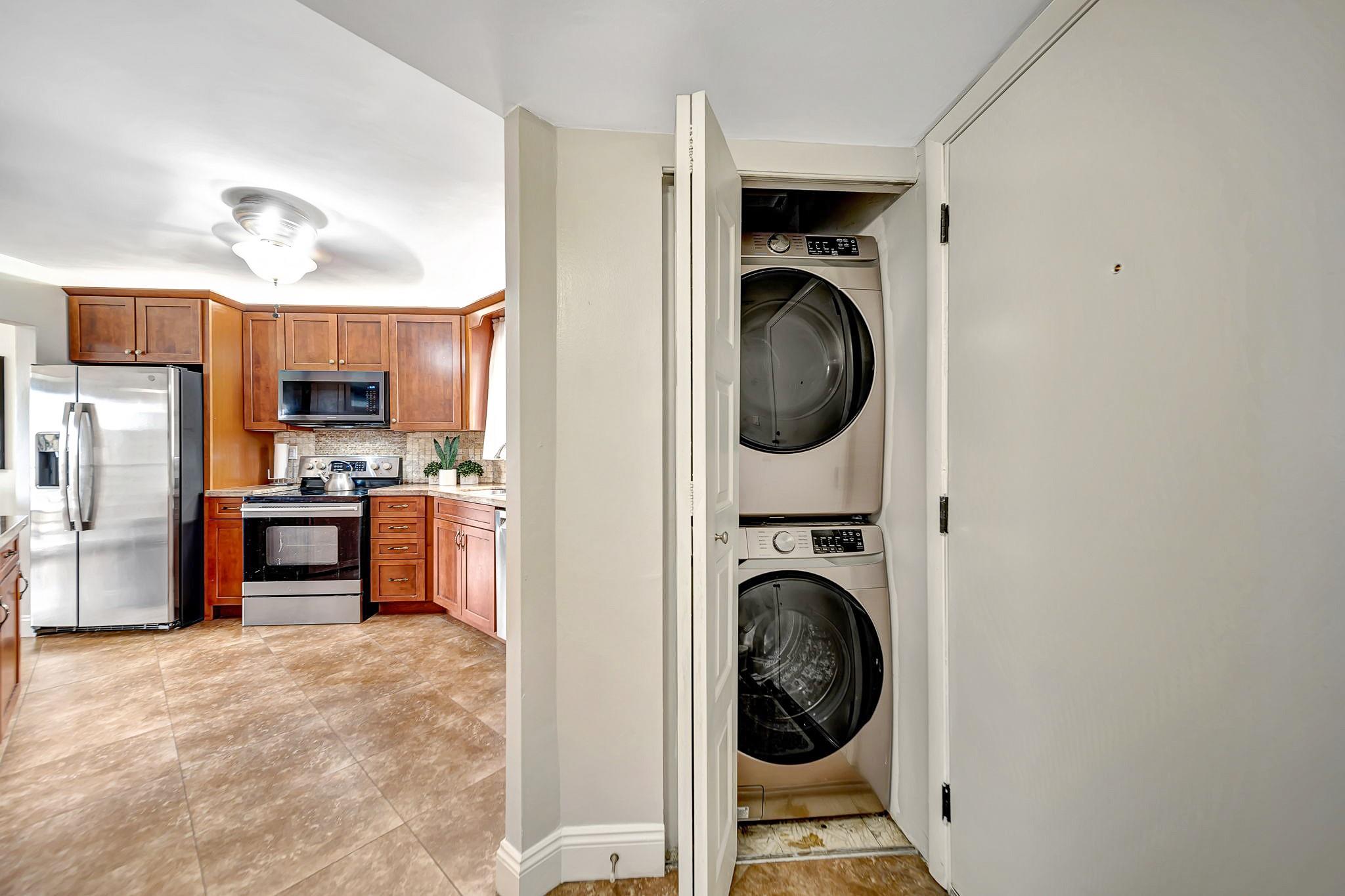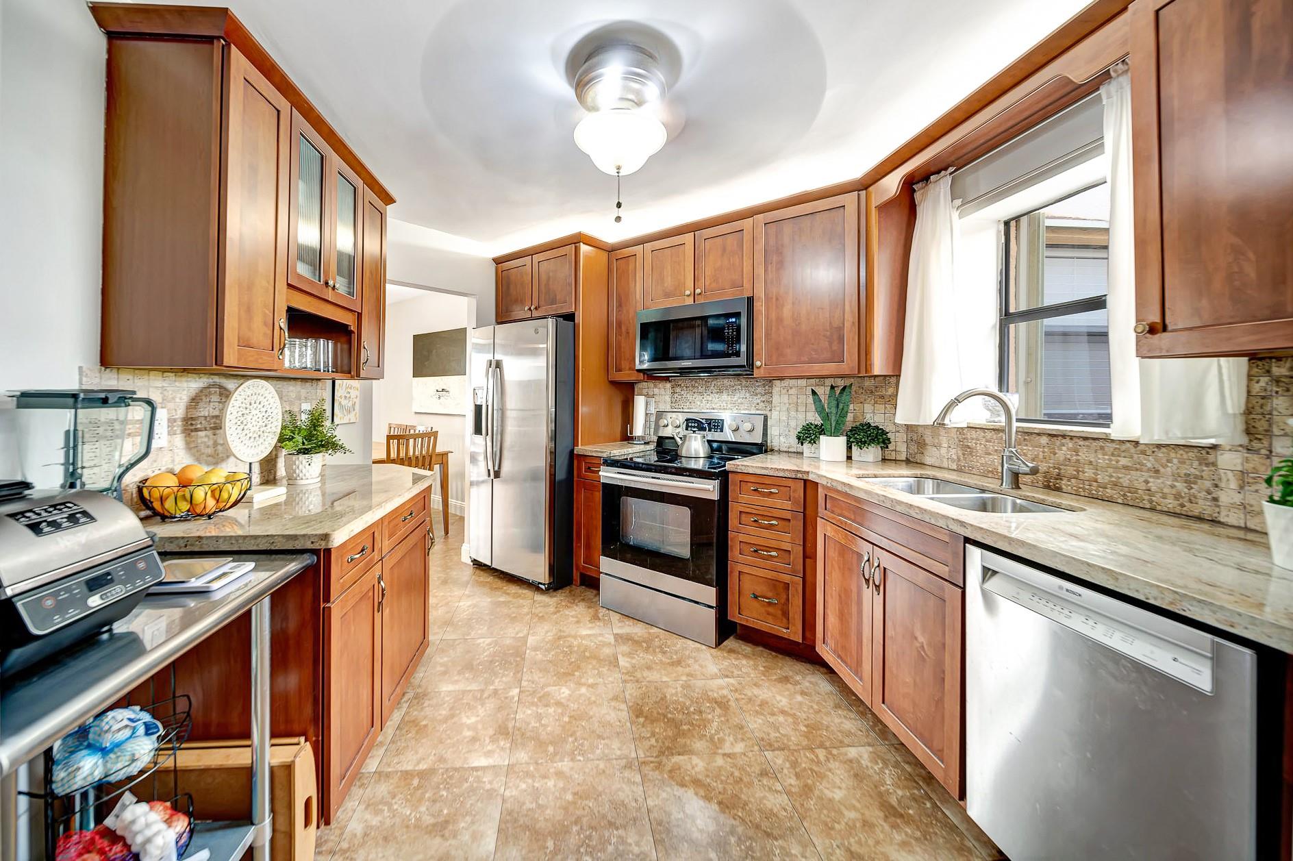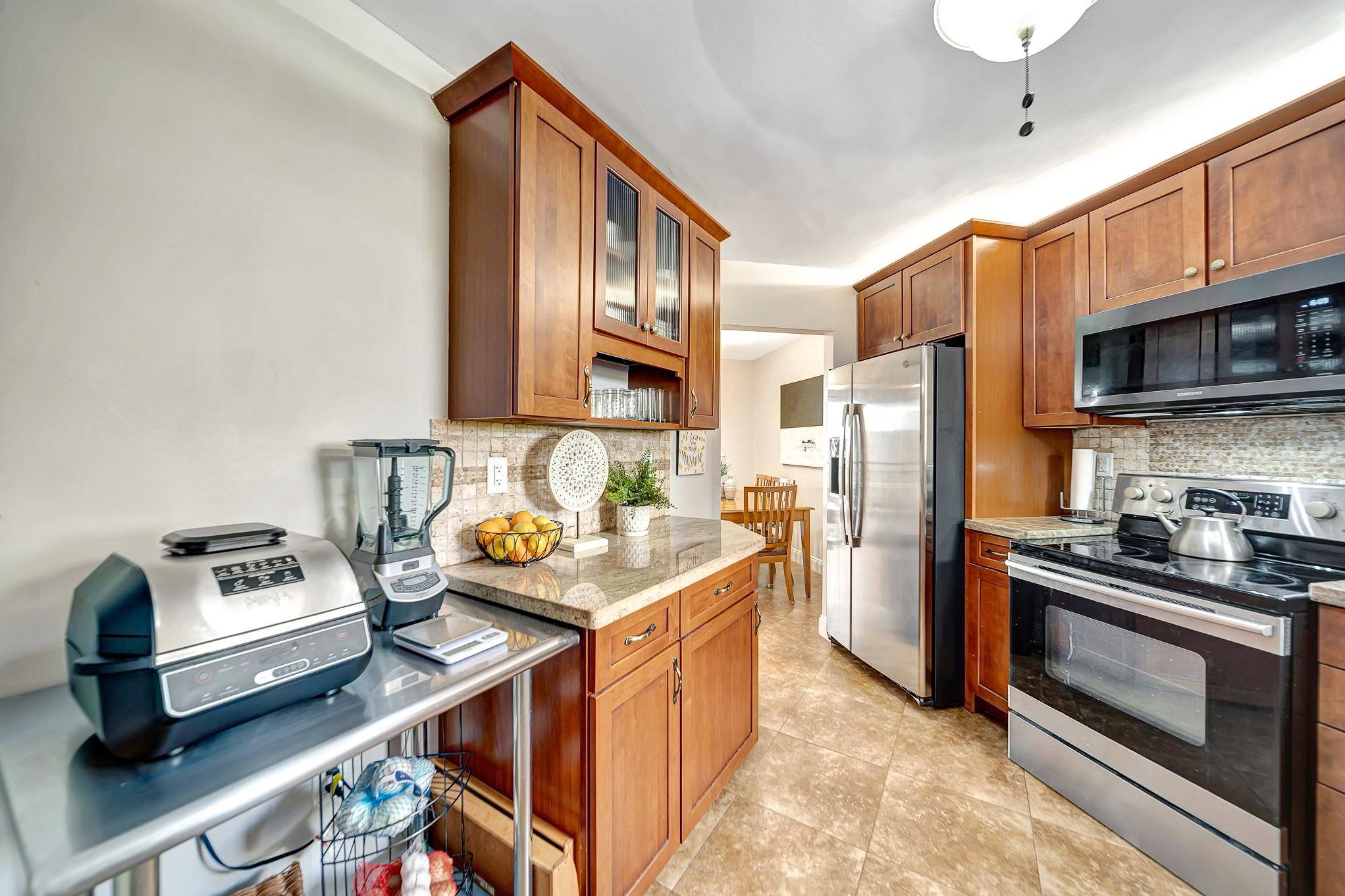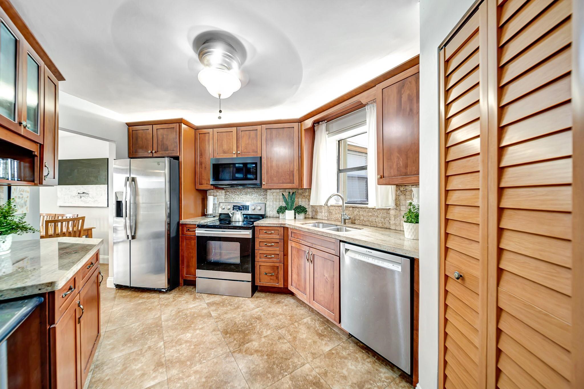 ABSOLUTELY STUNNING TURNKEY 2-bedroom 2 bath condo located in the heart of Plantation. This unit features: a spacious living room flowing into the formal dining area which leads into a spacious kitchen with natural wood cabinetry and a large pantry. Aesthetically pleasing kitchen features: granite countertop with matching backsplash and well-maintained stainless appliances. The split bedroom plan with guest bathroom, allows for great privacy. The oversize primary suite features a large walk-in closet with additional closet. This large primary suite has sliding glass doors that lead out to the screened patio overlooking the pool area. Patio is large enough to entertain your guests for a dinner, yet cozy enough to have have your coffee, or cocktails. Extra storage room on the patio.