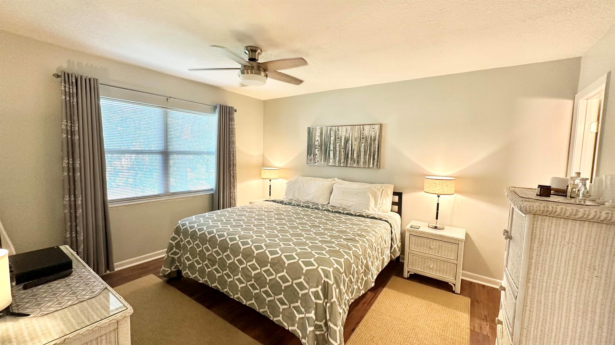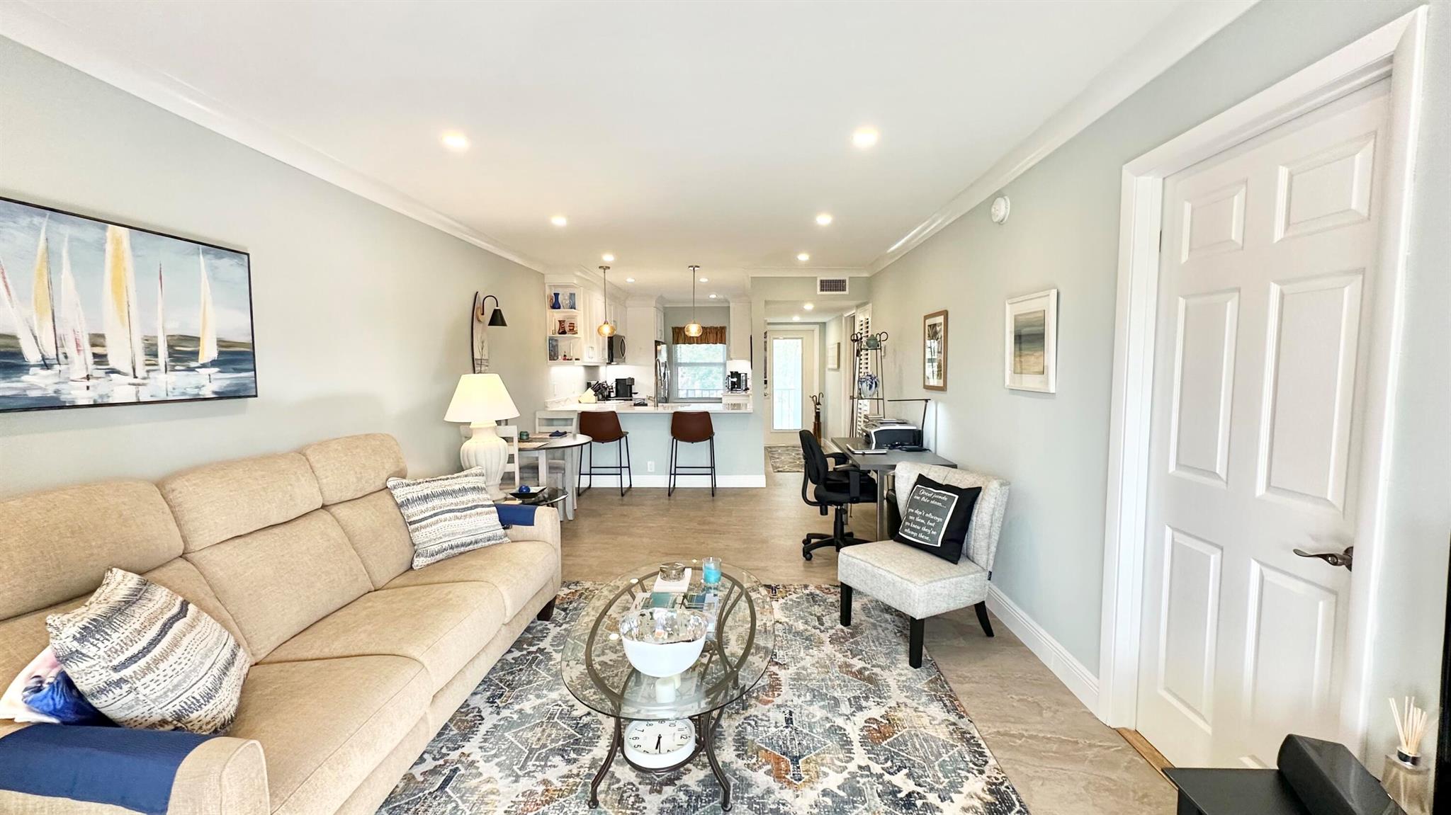 Light and bright modern concept getaway with two en-suite bedrooms/bathrooms and gorgeous views from the enclosed private lanai overlooking a picturesque canal outside this serene and secure 2nd story gem. With new, energy efficient and impact rated hurricane doors and windows this freshly renovated, open concept 2 bedroom/2 bath condo features white solid wood Shaker cabinetry with soft close doors and drawers and stylish Calacatta quartz counters in the kitchen and bathrooms,