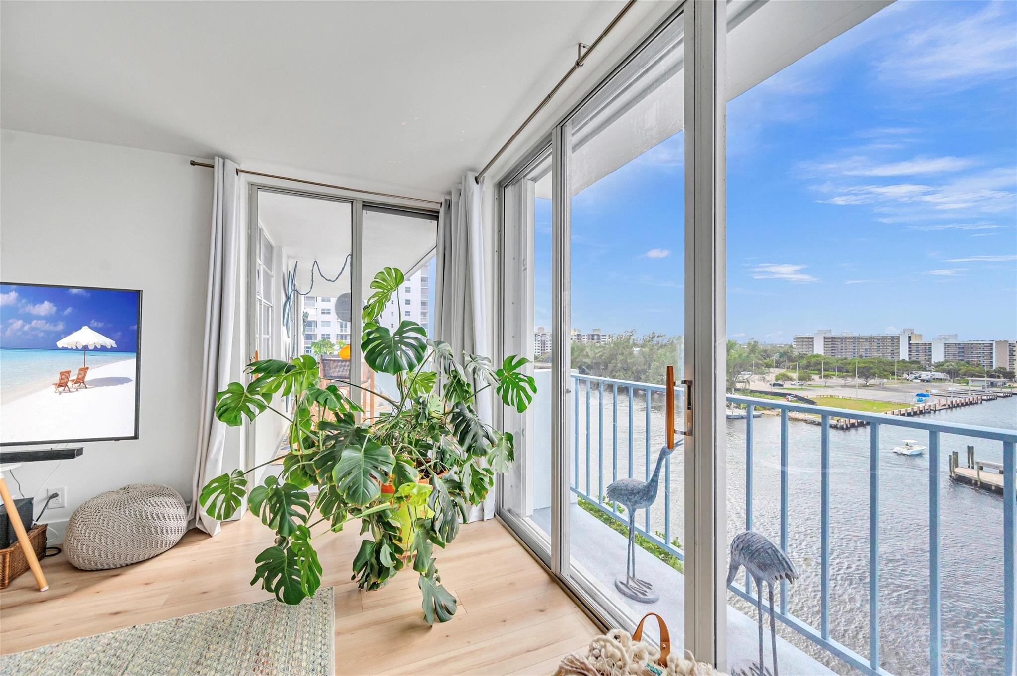 Completely remodeled corner unit offering panoramic direct Intracoastal views and captivating sunsets from its west- and south-facing balcony. This 2BD, 2BA boasts a sleek, modern kitchen with premium appliances, spacious open-plan living and dining areas, and elegant, stylish finishes throughout. The primary suite includes a luxurious bathroom and ample closet space, while the second bedroom offers flexibility as a guest room or office. Building amenities feature a pool overlooking the intracoastal, sauna, community room, BBQ/picnic area, and more. Ideally situated within walking distance of the beach, Pompano Beach Pier, Hillsboro Lighthouse, and fine dining. Conveniently close to golf courses, grocery stores, and shopping.