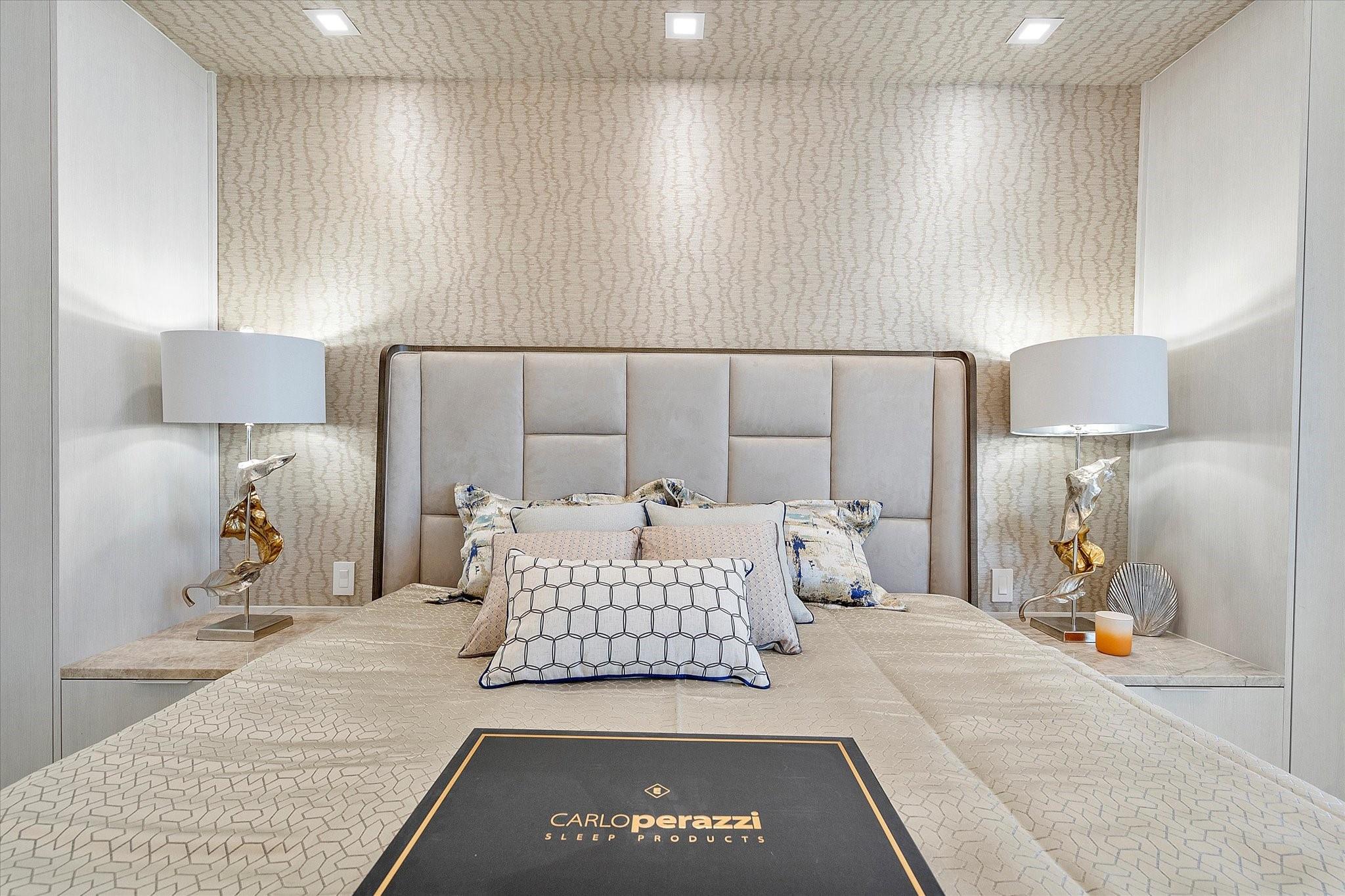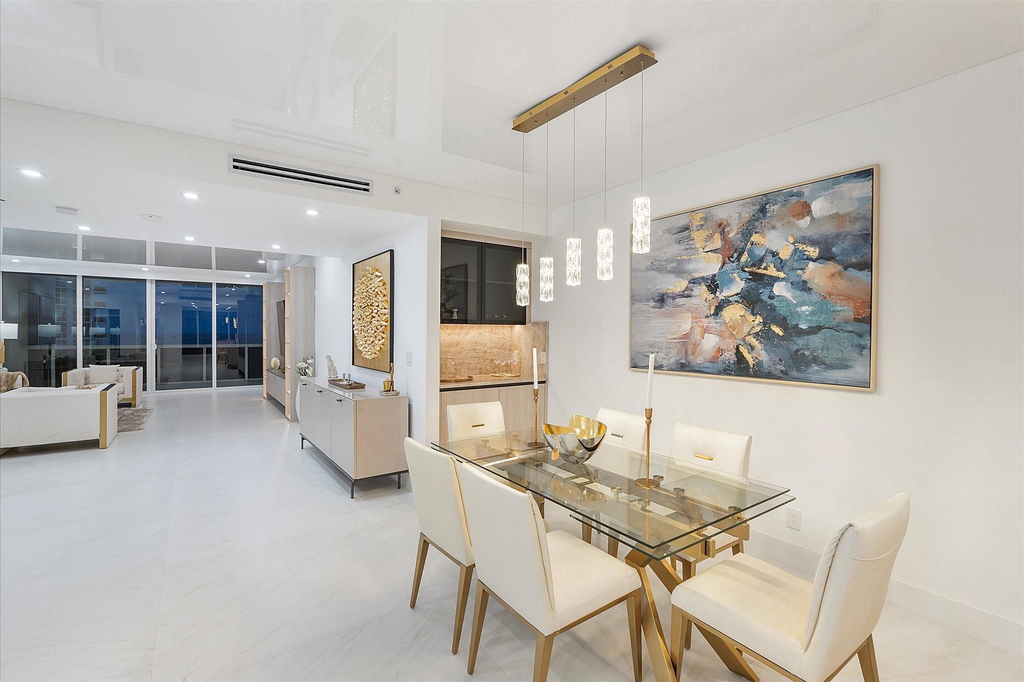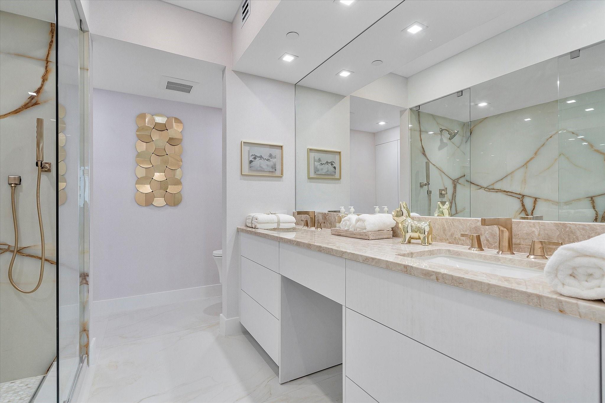 High Floor BRAND NEW Direct Ocean Fully Furnished Custom 3 Bedroom /3.5 Bath Home with ItalKraft cabinetry throughout: Open Flow Through with stretch ceilings. Custom Kitchen with Taj Mahal Slab countertops, 48" inch fridge w/4 freezer drawers, 36" induction range, steam oven, more. 4'x4' porcelain slab flooring inside and out. Primary Suite features large custom closet, New Bathroom featuring porcelain slab walls and custom vanities. 2nd & 3rd Suite features similar features. Extra powder room for guests. 2 balconies for sunrise & sunset, private elevators, glass front doors. L'Hermitage offers over 10 acres of Oceanfront/Beachfront property with tennis, fitness, fenced complex, attended beach, pool deck cafe, spas, saunas, steam rooms, massage rooms, amazing walkability & pet friendly.