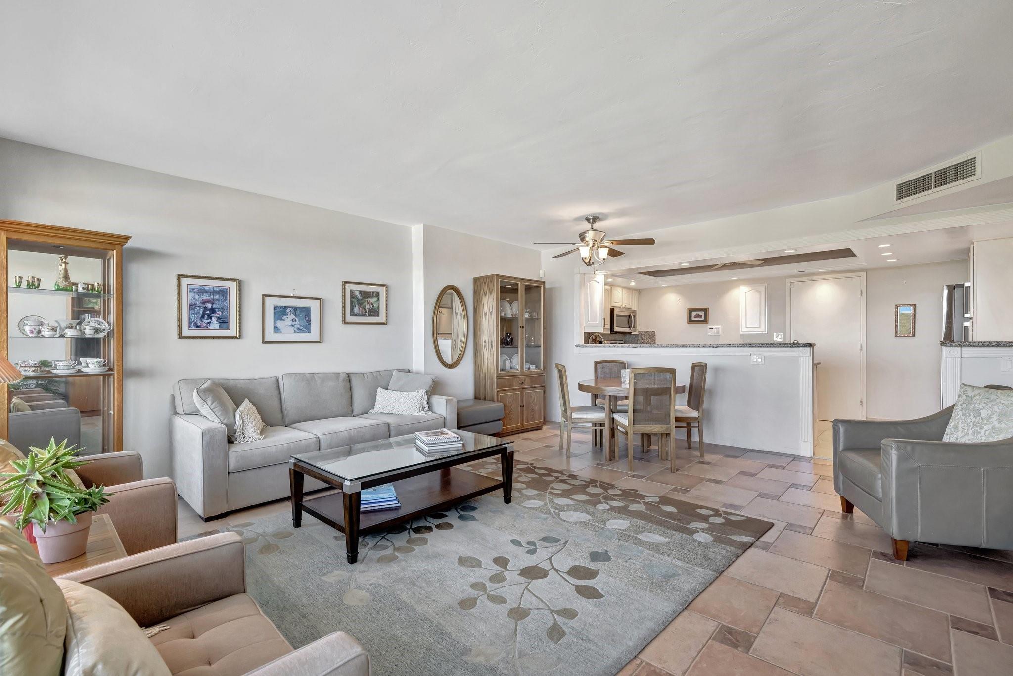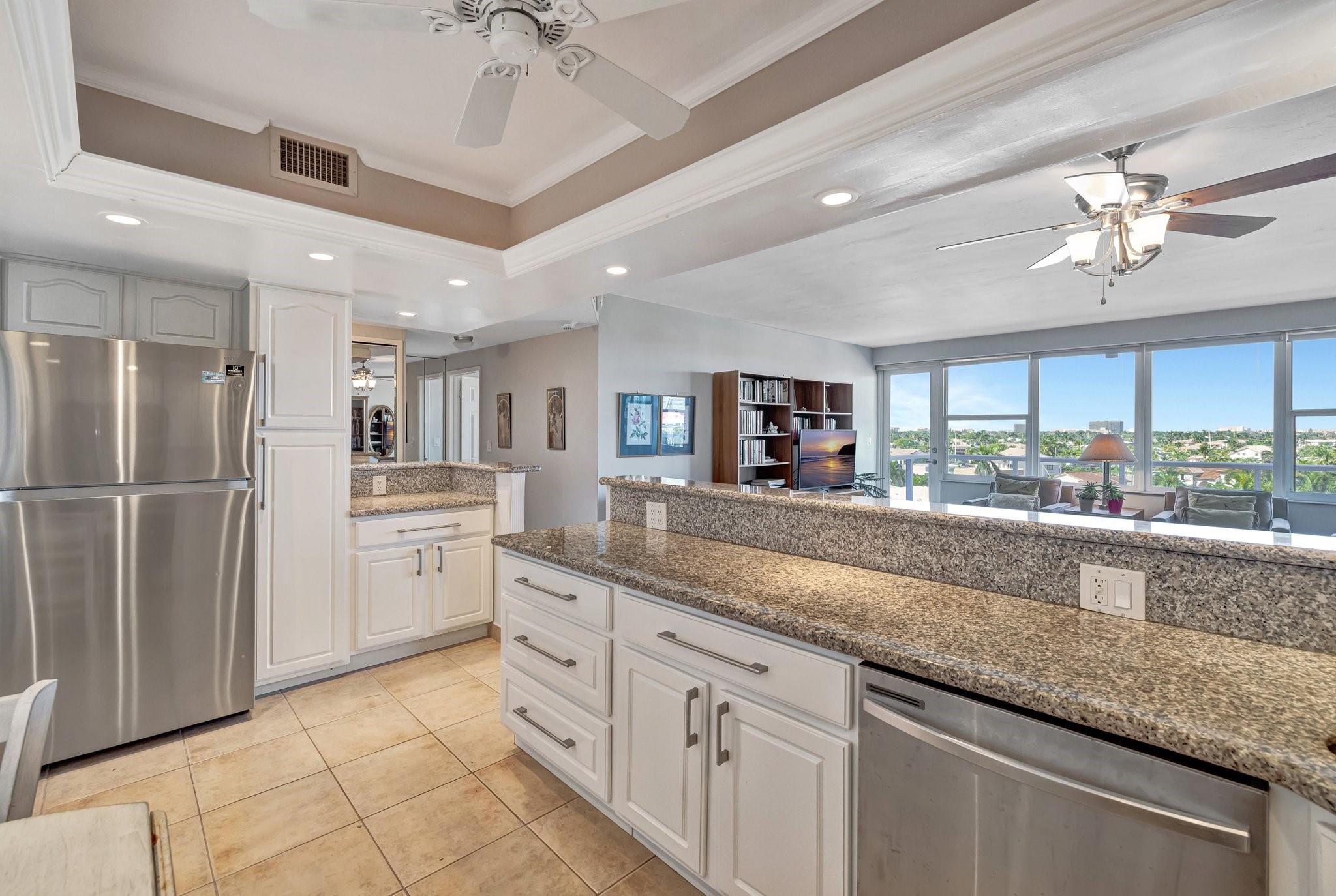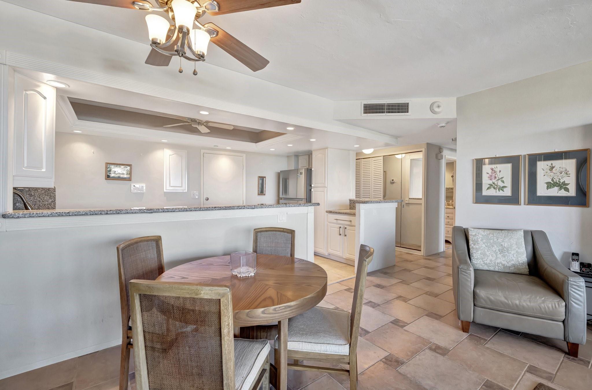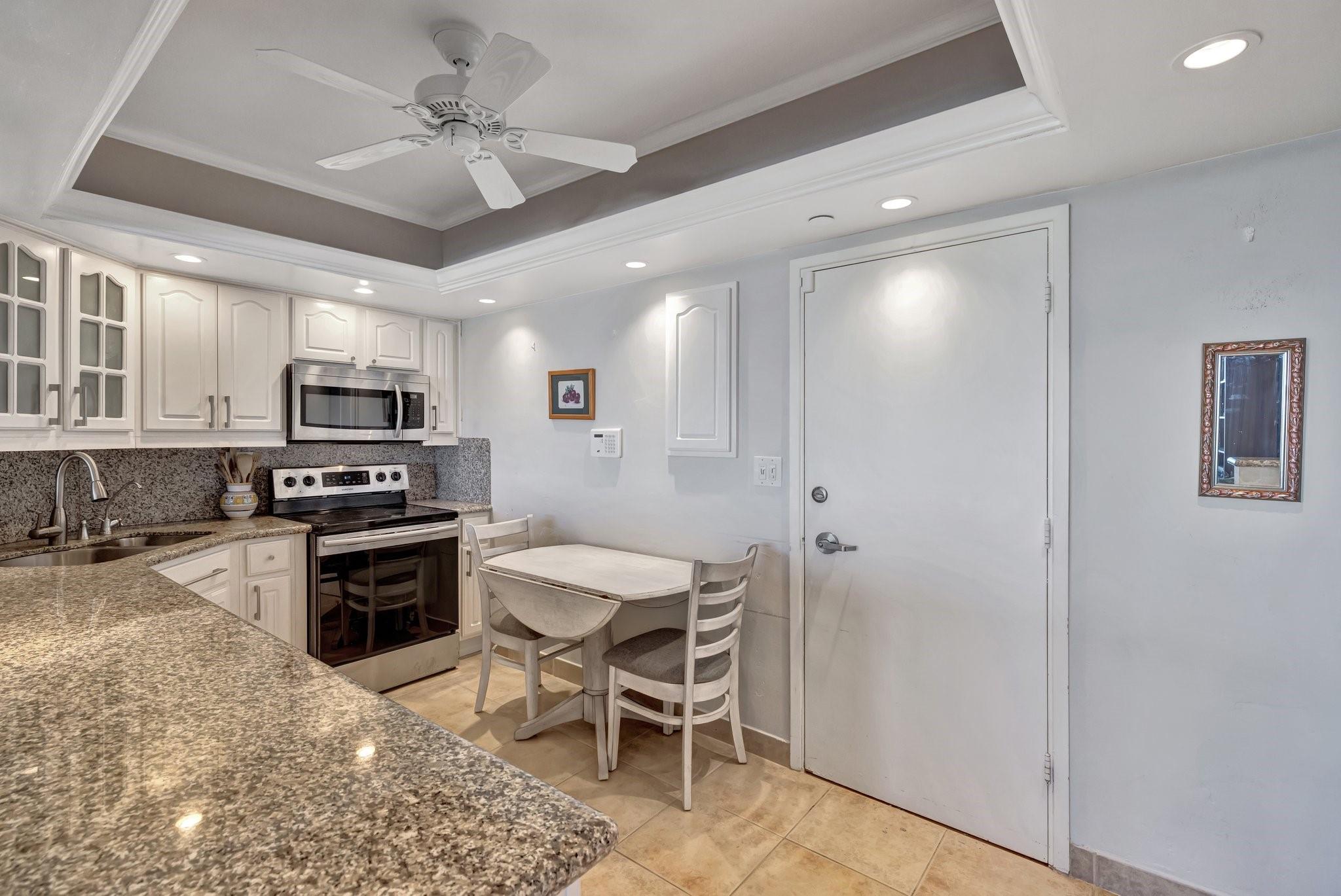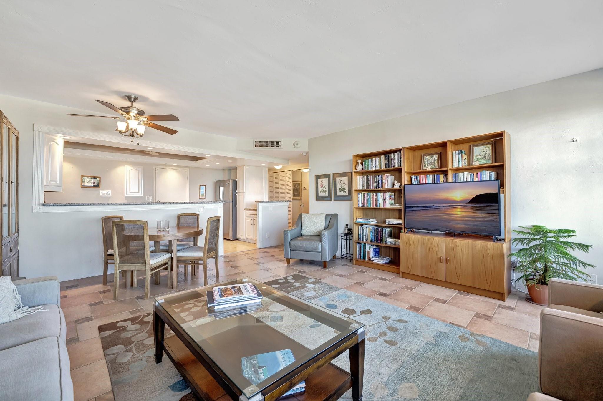 TOTALLY REMODELED, MOVE IN READY WITH GORGEOUS CHEF'S KITCHEN. This is a really lovely residence with a peaceful northern view over the tops of multi million dollar homes and lush landscaping. This building has so many updates that the insurance was actually lowered for 2025. FINANCIALLY SECURE WITH FULLY FUNDED RESERVES. NO UPCOMING ASSESSMENTS. 55+ community with numerous social activities, fitness center, HUGE heated pool and bocce ball court on tropical 5 acres. Next to the beach, numerous restaurants, retail, entertainment, golf and boating. IntraCoastal Clubhouse, on site management and 24/7 security. Water, sewer, trash, basic cable and internet included in maintenance.