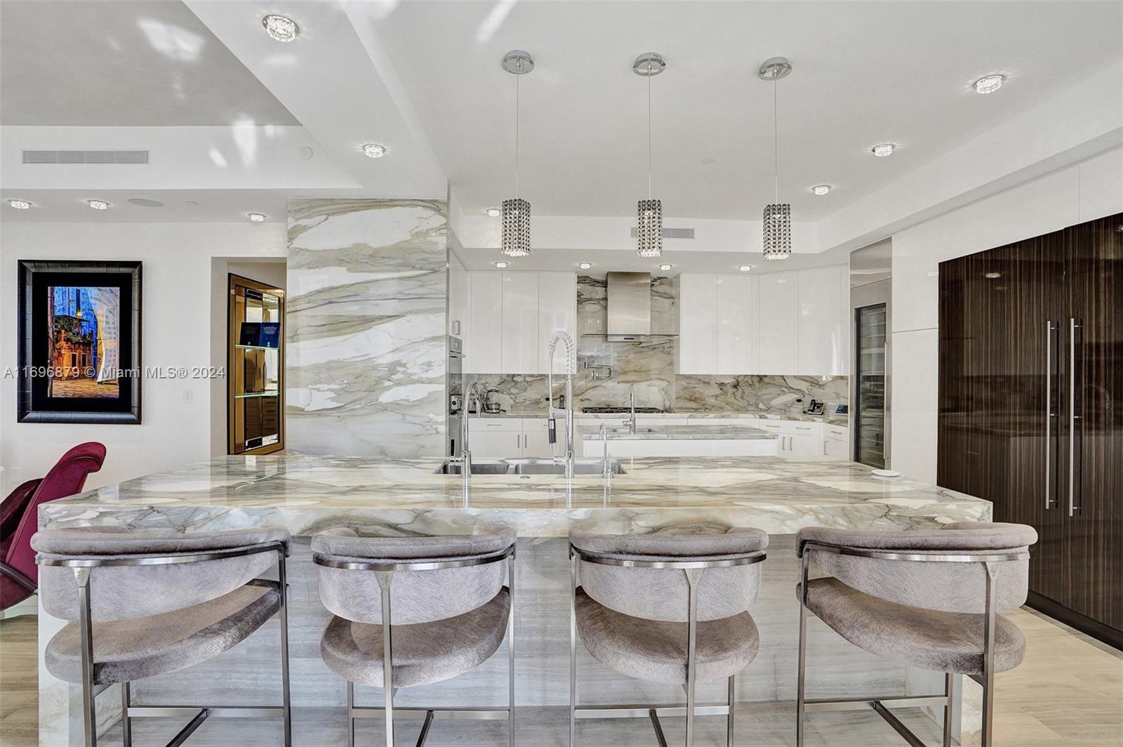 Magnificent and meticulously designed residence 3 bed/ 6.5 bath, 4,609 SQF offering breathtaking ocean and intercoastal views, refined finishes, and spacious layout. Can be easily converted to 4 beds. Professionally designed and decorated with most high end finishes, marble & wooden floors, Ornare leather designed closets, kitchen w/Miele appliances, custom cabinetry & large island, fireplace in Family room, Jacuzzi and summer kitchen on the second terrace. Residents enjoy exclusive access to a range of 5 star amenities, including: full beach service, spa, hammam, kid’s room, state-of-the-art gym, Rolls Royce inhouse car, cigar/wine lounge, theatre, golf simulator, daily breakfast & pool. Access to Acqualina 5star hotel services, ESPA, Il Mulino. Enjoy direct beach access to pristine sands