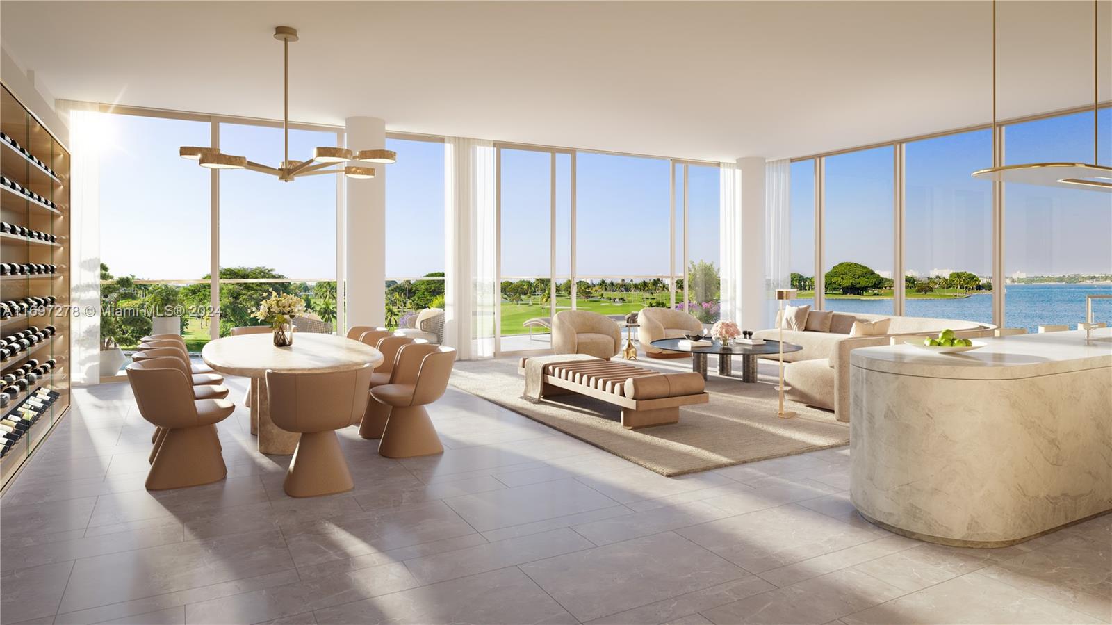 Discover luxury living in this half-floor unit at Bay Harbor Islands' most exclusive new development. This residence boasts 35 feet of unobstructed water and golf course views, with interiors graced by honed Patterned Vanilla Spider Marble flooring throughout. The kitchen is equipped with Gaggenau appliances and Taj Mahal countertops, ideal for gourmet enthusiasts. This residence offers 3 bedrooms, 3 bathrooms, a Family Room, and an elegant powder room, with every corner reflecting extreme attention to detail Including a wine wall. The bathrooms showcase exquisite finishes, from travertine floors and leather walls in the primary to Crema di Oro and Carrara marble in the secondary baths. Residents enjoy access to boat slips and a yacht concierge at the exclusive, residents-only yacht club