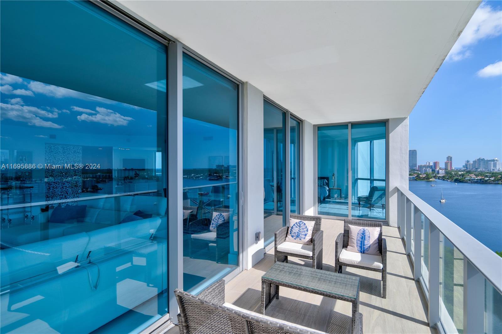 This exquisite 2 bedroom + den, 2.5 bathroom, fully furnished residence offers stunning panoramic views to the South and East, showcasing the bay, city skyline, and Intracoastal. Inside, you'll find elegant porcelain flooring, custom built-in closets, and high-end finishes throughout. The chef's kitchen is equipped with premium Sub-Zero appliances, while the bathrooms feature top-of-the-line fixtures. Residents of The Reserve at Marina Palms enjoy an impressive array of amenities, including a state-of-the-art fitness center, spa with sauna, kids’ room, teen room, Pilates and yoga studios, business center, clubroom, and much more.