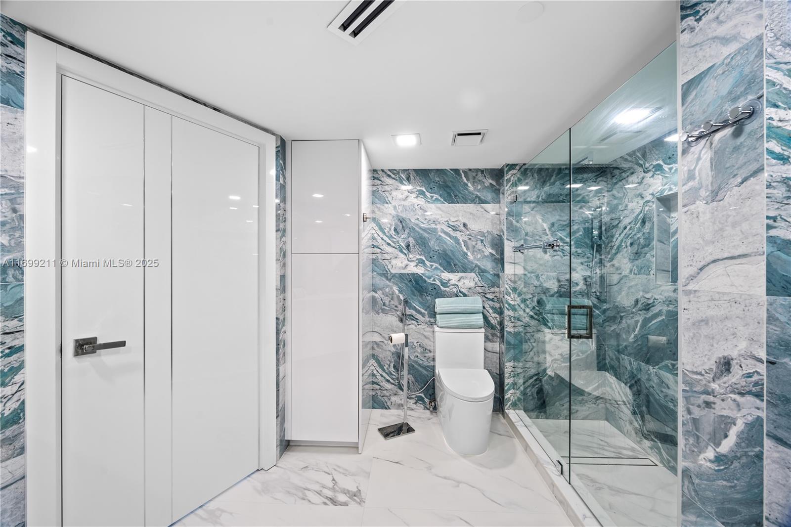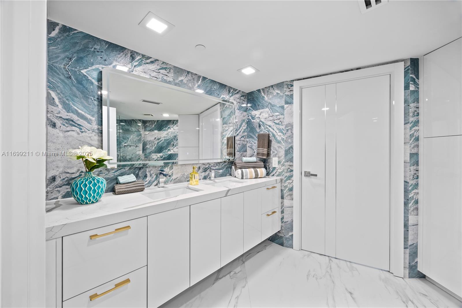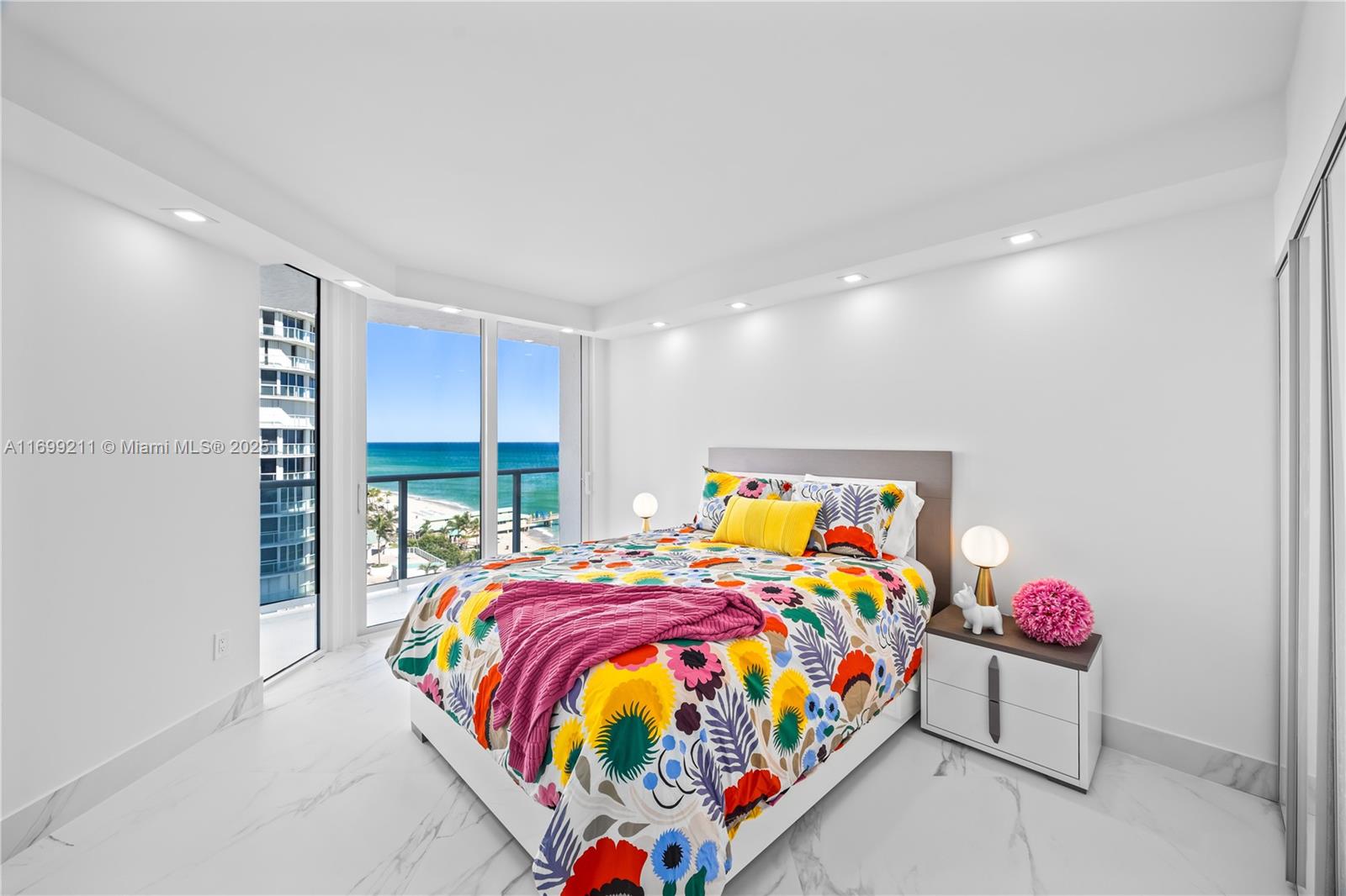 Bask in the direct ocean view from this completely remodeled 3 bedroom, 2.5 bath residence. Entertaining is a pleasure with this open concept floor plan, a large kitchen island, plentiful custom cabinets, quartz countertops, Bosch coffee station and stainless sink. Some of the designer finishes include 48"x48" white/grey matte porcelain tile, stretch ceiling, high gloss white cabinets with goldtone cabinet hardware, LED lighting and electric curtains and blackout shades. All windows and sliding doors are hurricane impact glass. New A/C ducts, vents and a powerful 4 ton HVAC. Unit is being offered turnkey. The Oceania community features an amazing health club & spa, full service private beach club, fitness classes, racquetball, 2 oceanfront dining rooms, tennis, marina and more!