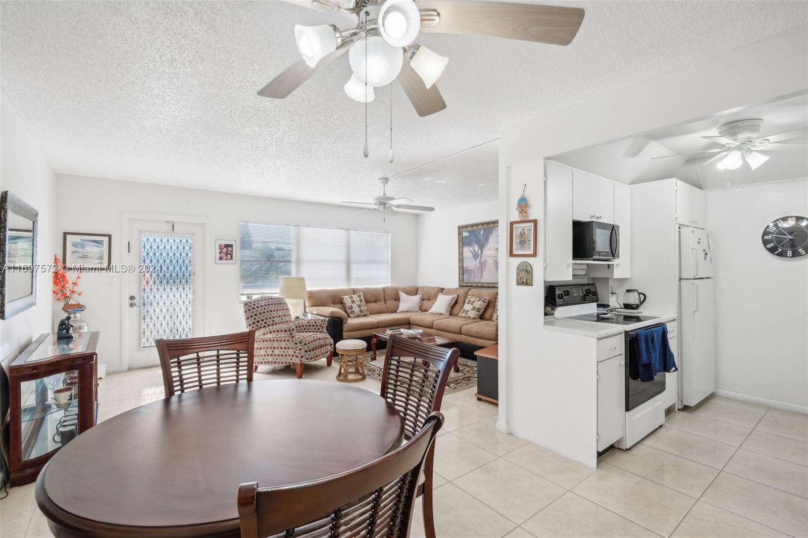 Stunning water views from this 1 bedroom, 1.5 bathroom condo nested on the 3rd floor. Enjoy the comfort of a fully furnished unit in a meticulously maintained condition. Tile flooring throughout, modern toilets and vanities, a few years old water heater, and a brand new 2024 A/C unit, ensuring a pleasant living experience. The free laundry room is adjacent to the unit, for easy access. Perfect sun exposure from the enclosed patio with windows for. Bldg. has reserves. Enjoy Century Village, an active 55+ resort-style living community that offers a variety of activities. Engage in fitness classes, social events, and recreational sports while enjoying beautiful surroundings and a vibrant lifestyle. Experience the perfect blend of relaxation and activity in this welcoming environment.