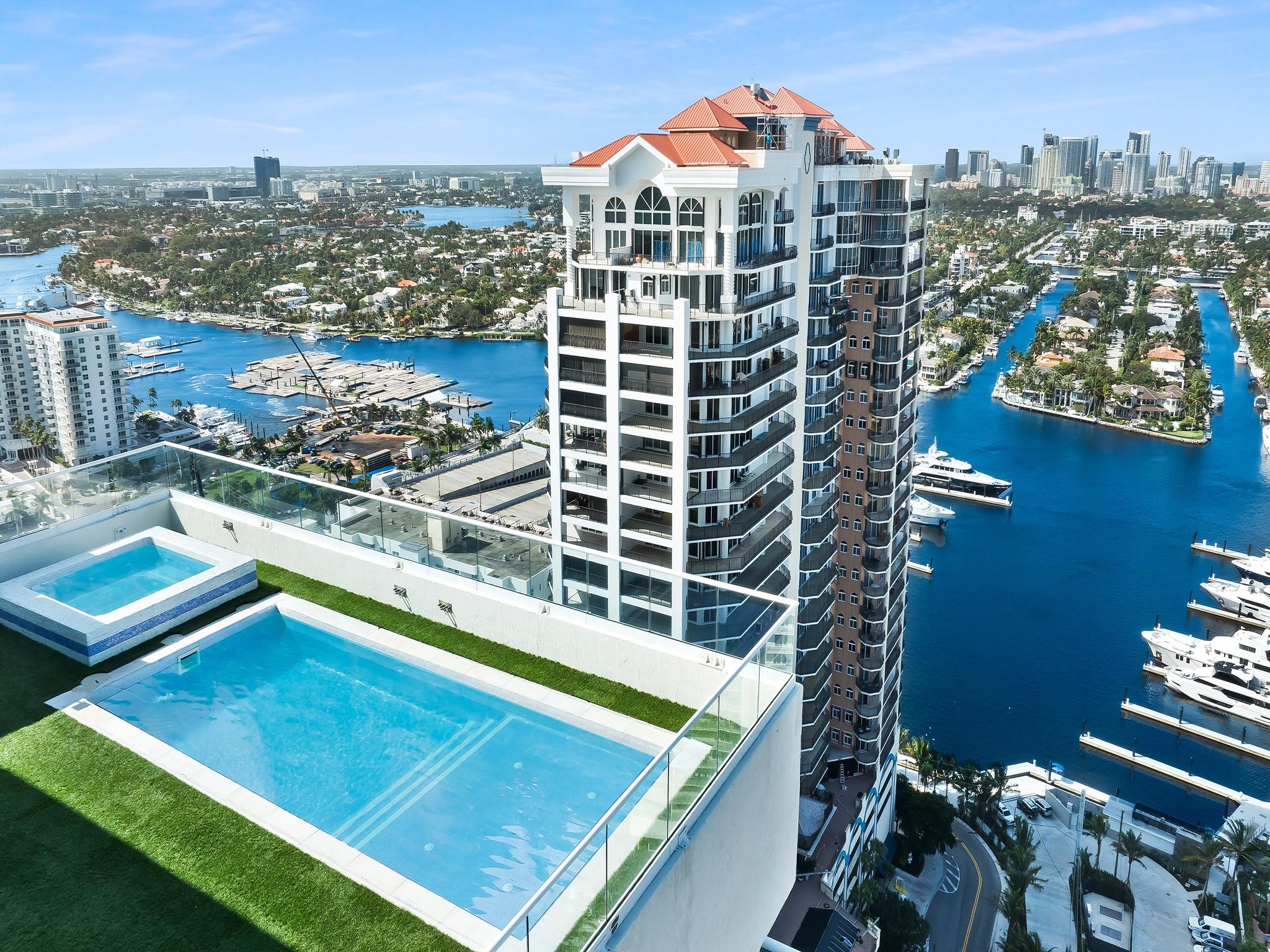 Rarely available distinctive two-story penthouse at desirable Las Olas Beach Club. This exceptional 5,695 sf unit has been completely renovated in 2021, with over 2,000 sf of balconies and private deeded rooftop pool and spa. Professional interior designer finishes, high end appliances throughout, complete automation, private elevator provides access to the pool, spa and lounge area. Expansive living room and dining room area, gourmet kitchen and family room offering plenty of space for entertainment and enjoyment. Experience magnificent views of the Atlantic ocean, intracoastal waterway, Port Everglades and downtown Fort Lauderdale. Just steps away from the beach, restaurants and newly built Las Olas Marina offering the best of Fort Lauderdale. Truly one of a kind residence in the sky.