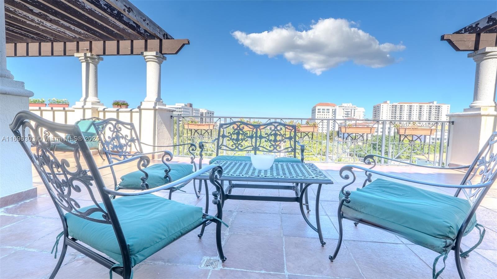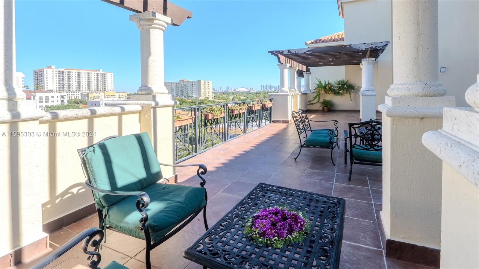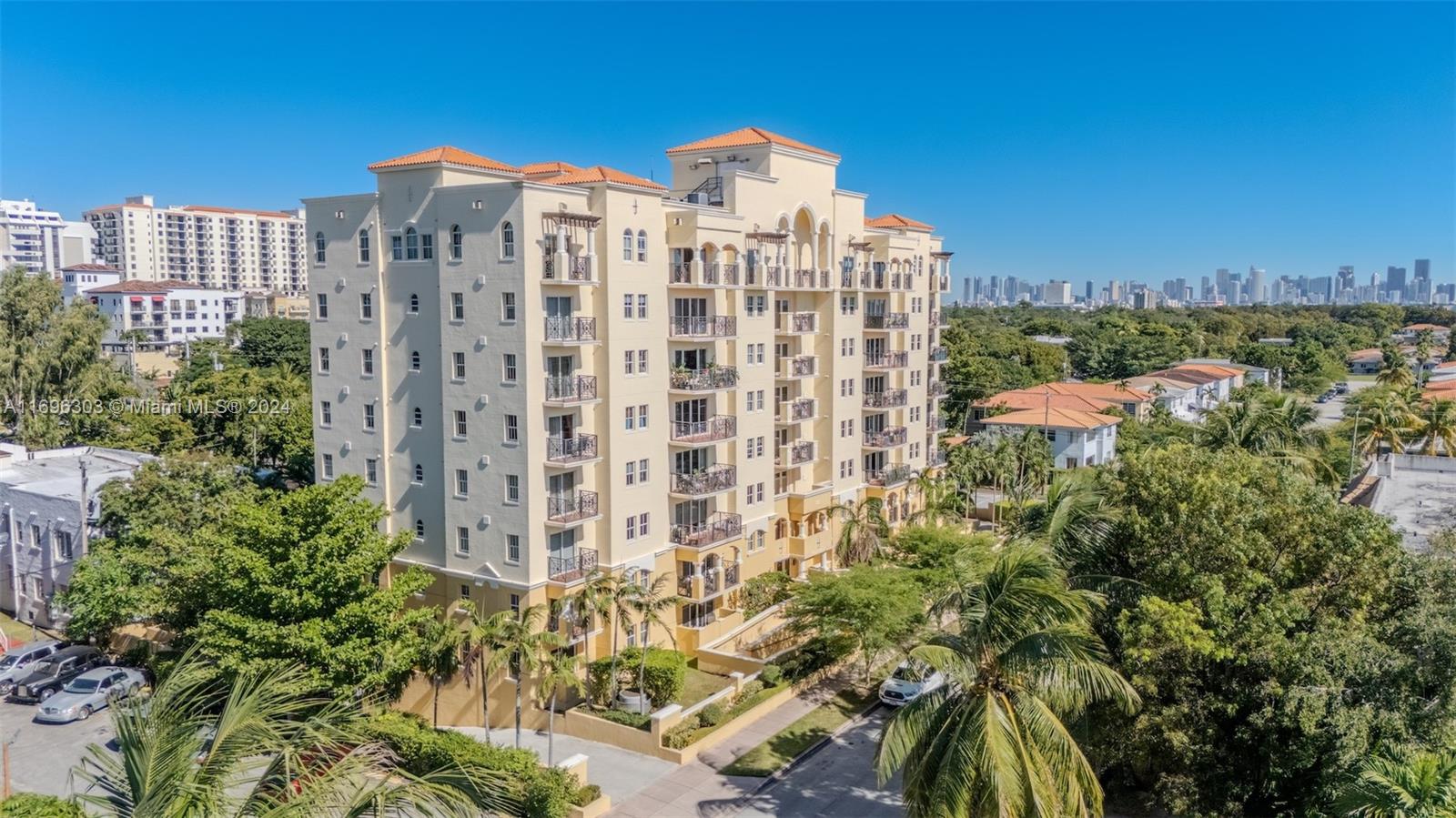 Enjoy living in this gorgeous Mediterranean style boutique building in the heart of Downtown Coral Gables. Rarely available, this spacious and very well-maintained condo with 2 beds, 2baths & 1,273 SF features lots of natural light, an open kitchen with granite tops & stainless-steel appliances, split floor plan, and gorgeous skyline views from its large balcony. Master bedroom has an ensuite bathroom with separate shower & jacuzzi tub & dual sinks, and a large walk-in closet. Unit has marble flooring and bedrooms carpet; blackouts in the bedrooms, 2 parking spots, Enjoy the relaxing views from the rooftop social terrace, workout in the gym, and walk to Miracle Mile for lots of dining, and entertainment options.