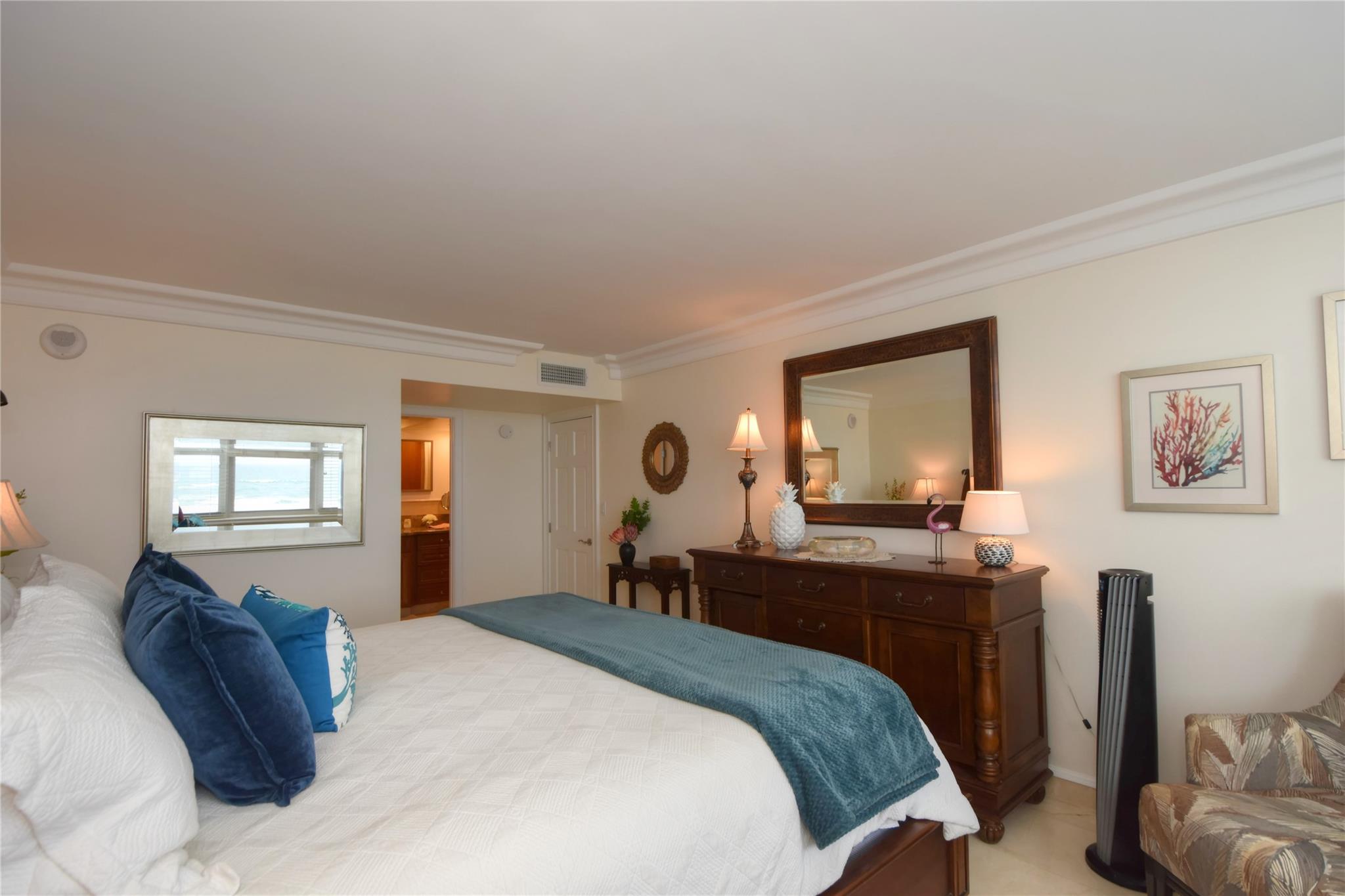 HUGE PRICE REDUCTION. CHECK THIS OUT. INVESTORS STOP & THINK. EXCELLENT OPPORTUNITY .Entering, you are amazed at the breath taking view. The view stretches from the lighthouse to the pier. encompassing direct ocean waves, coveted sand dunes & blue sky. The appointments are fabulous. There is no substitute for class. Chiefs Kitchen is opened using marble counter tops & stainless steel. No cost has been spared making this unit unique. Designer furniture featuring Tommy Bahama combines a blend of comfort & elegance. So many extras. Large bedrooms w/ walk in closets. Oversized balcony. Upgraded from the ordinary. Take advantage of buying the best unit in the best bldg. at a unprecedented price. It is totally turn key. Garage parking 24 hr. security. Generous balcony size.