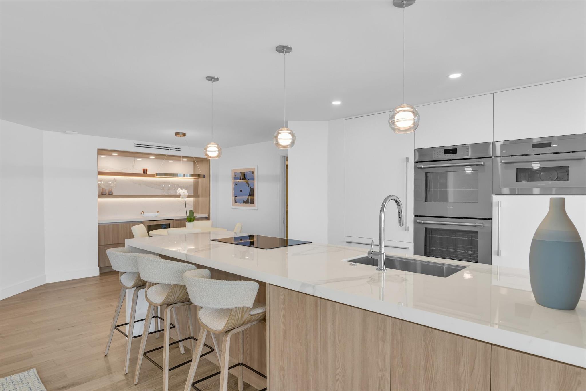 This just-renovated 16th-floor residence is professionally designed with impeccable taste and sophistication. Every room offers breathtaking direct ocean, city and Lake Boca views. Newly constructed, it features high-end Thermador appliances, custom cabinetry, and hardwood engineered oak floors, complemented by porcelain countertops with waterfall island. Split floor plan ensures privacy, spacious bathrooms with double sinks, built-in closets and custom bar with wine fridge, plus expansive oceanfront terrace. Positioned directly on the beach with private beach access and luxurious amenities such as an ocean-side swimming pool, a daily beach umbrella service, state-of-the-art fitness center, and two tennis courts. All comes with the lowest maintenance fees on the beach.