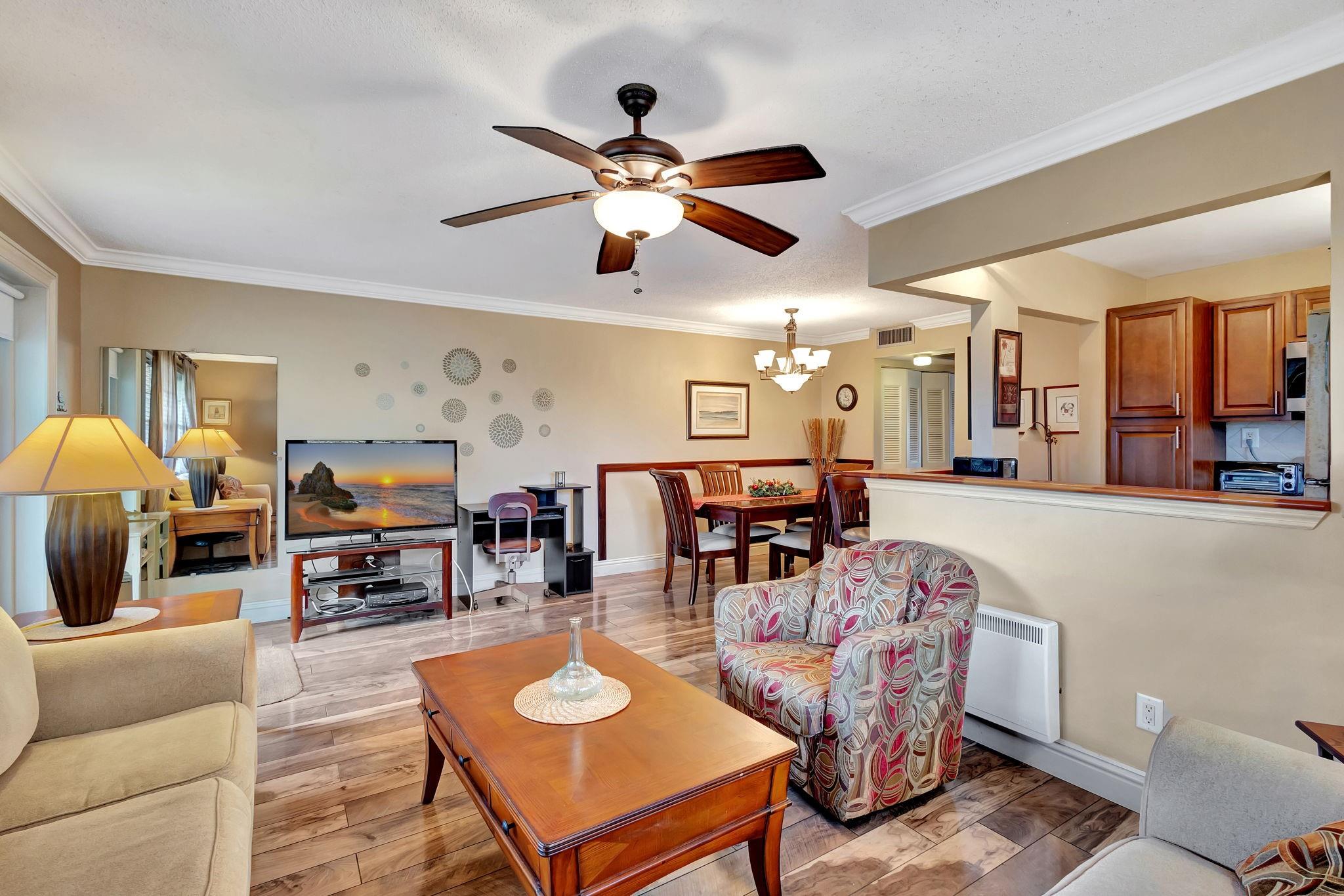 CHARMING 1 BED 1.5 BATH CORNER UNIT CONDO LOCATED AT THE SECOND FLOOR. VERY WELL MAINTAINED AND WARMLY DECORATED. LOTS OF NATURAL SUNLIGHT. HURRICANE SHUTTERS IN THE FLORIDA ROOM. NEWER CENTRAL AC, FULLY FURNISHED AND TURN KEY READY FOR PURCHASE. LOCATED STEPS TO THE POOL. CENTURY VILLAGE WEST PALM BEACH HAS A LOT OF AMENITIES. 55 PLUS COMMUNITY. ENJOY BUSES TO GO TO THE CLUBHOUSE, WATCH ENTERTAINMENT AT THE THEATER, CARD GAMES,, BILLARD ROOM, BINGO, MUSIC, LIBRARY, YOGA, PILATES, DANCE CLASSES, ALSO PRACTICE YOUR FAVORITE SPORTS, TENNIS, PICKLEBALL, BOCCE BALL, ETC. GATED COMMUNITY VERY SECURE. MUST SEE !!!
