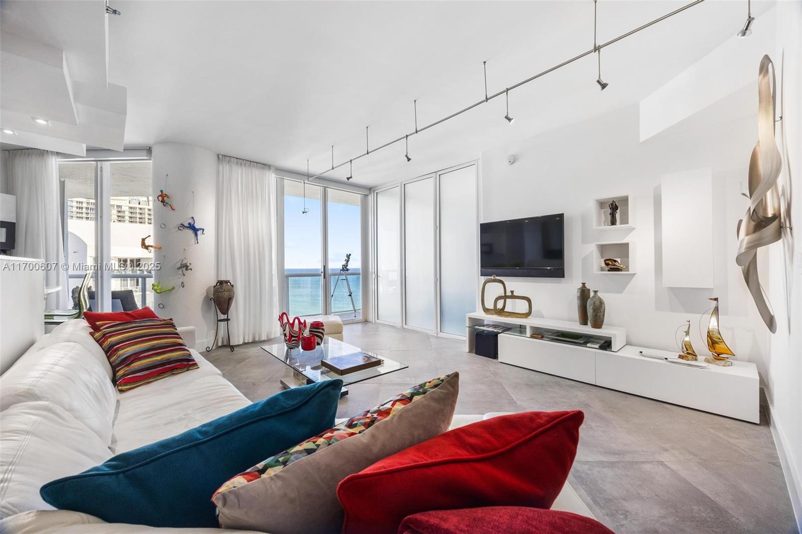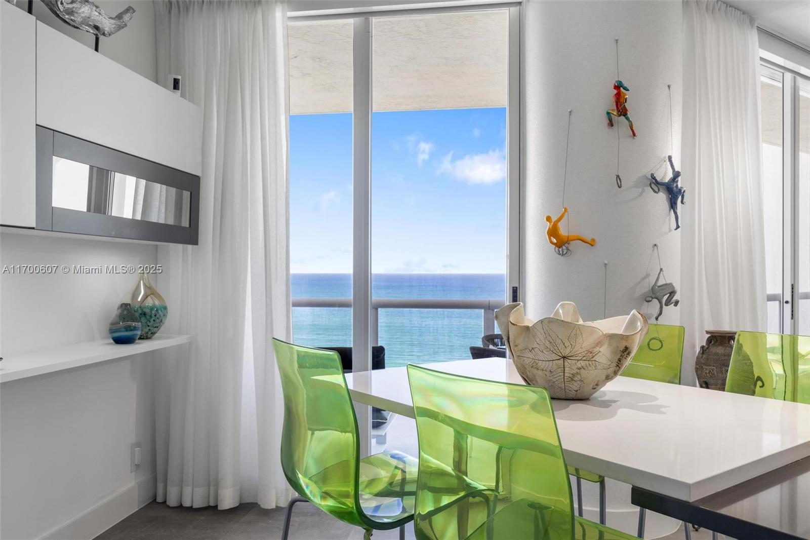 Step into luxury with this oceanfront fully furnished Ocean Suite (Top floor above the PH) where modern meets oceanfront living. This one story unit is offered fully furnished as is, including art. Top floor unit featuring 9-ft custom ceilings, this 2-bed/2-bath smart home is equipped with Control 4 system for automation of the entire unit. The custom Italian kitchen features an open-concept design, Thermador appliances, commercial grade icemaker, water filtration and hot & cold instant water dispenser. The master bathroom boasts a Japanese soaking tub, a separate shower, custom his and her walk-in closets. Terrace with clear glass railings allowing unobstructed views of the ocean providing access from all unit rooms. It comes with a private parking in the garage and free valet parking.